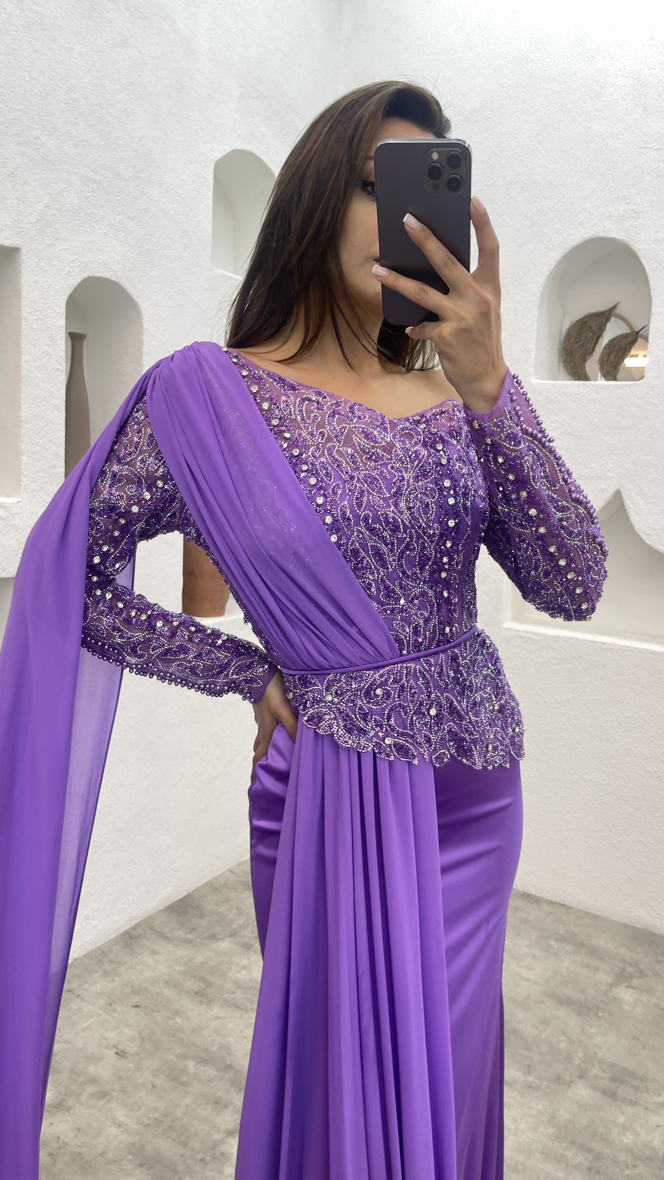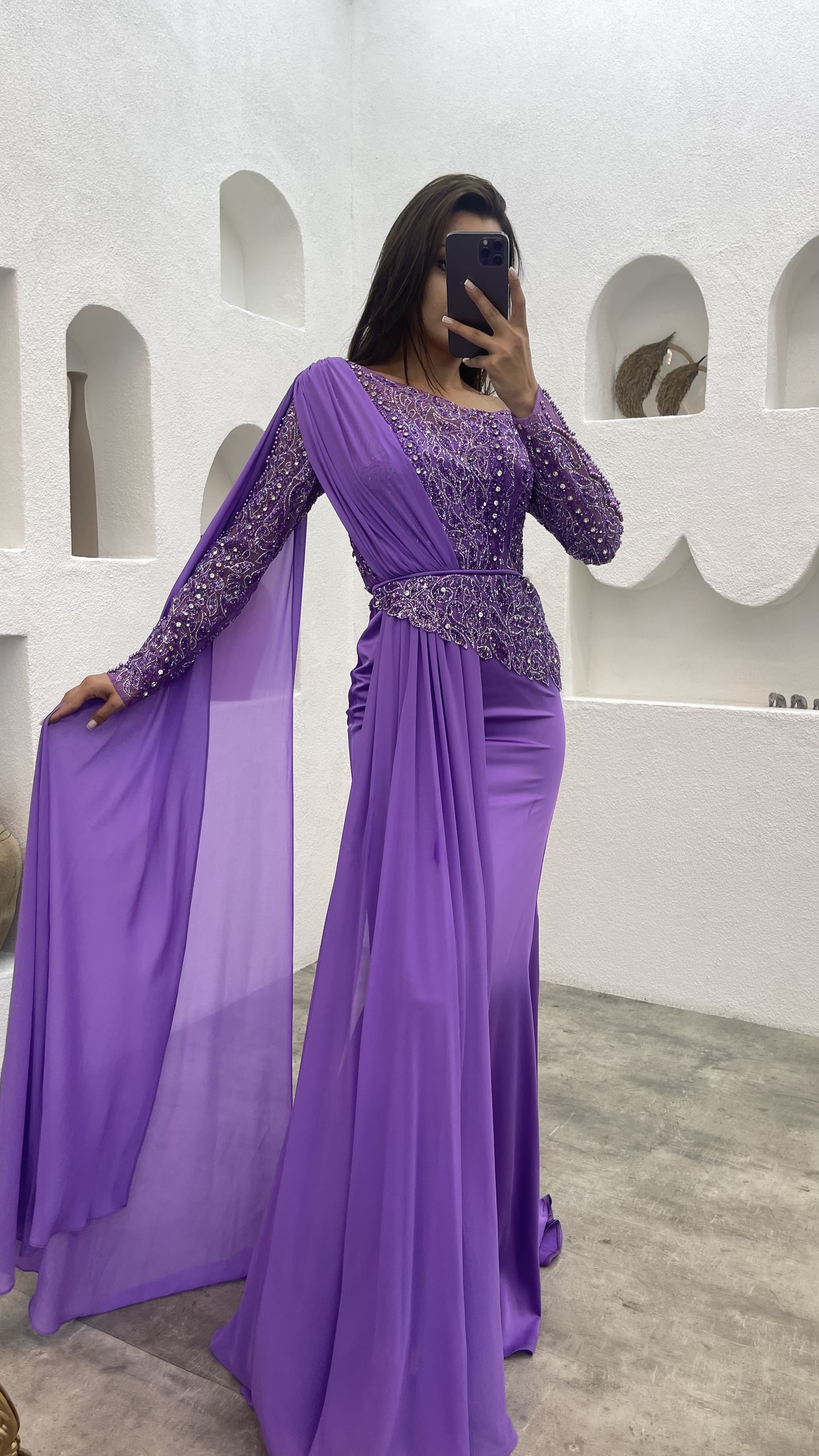 • Lacivert Göğsü İşlemeli Abiye Elbise