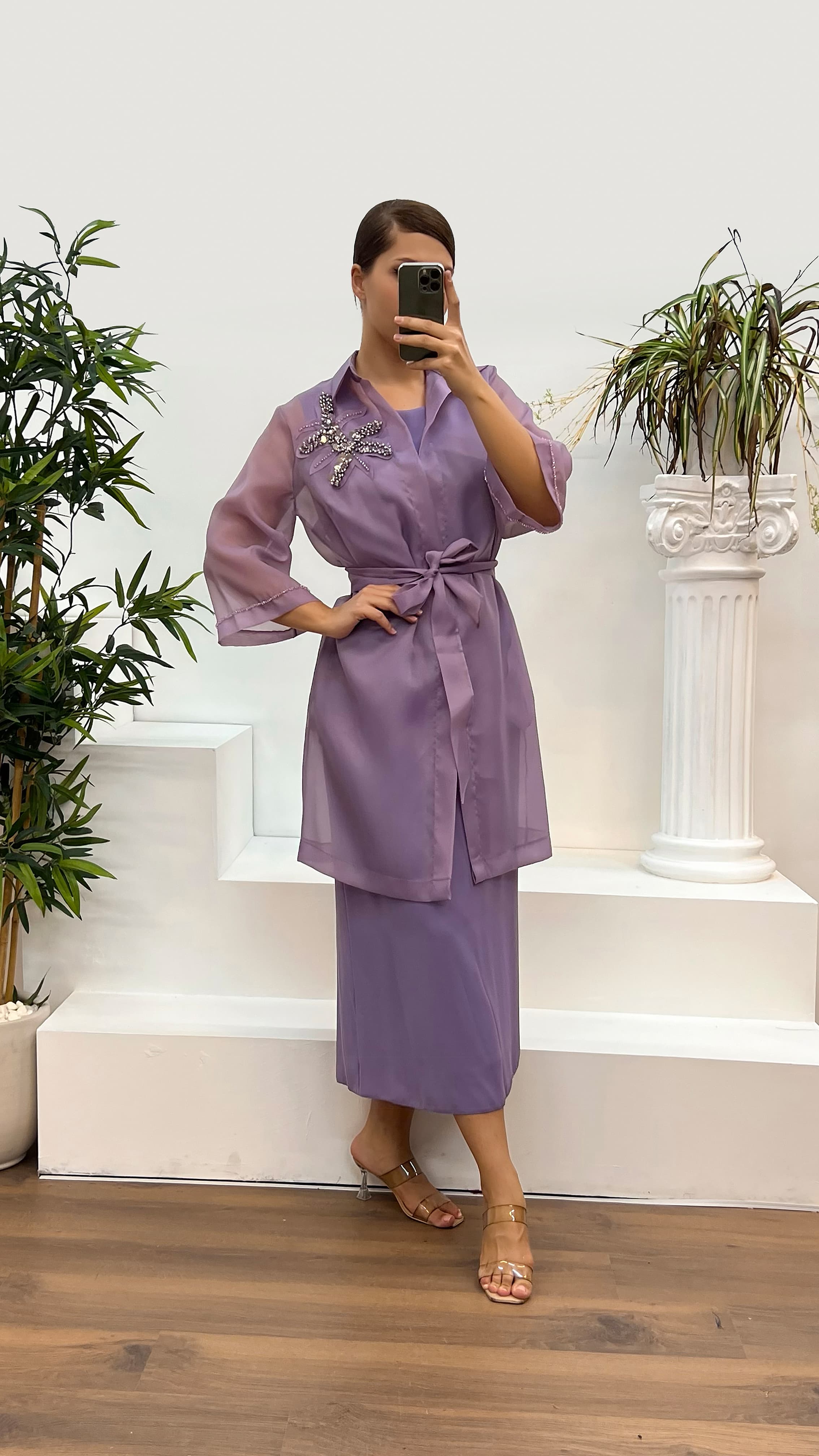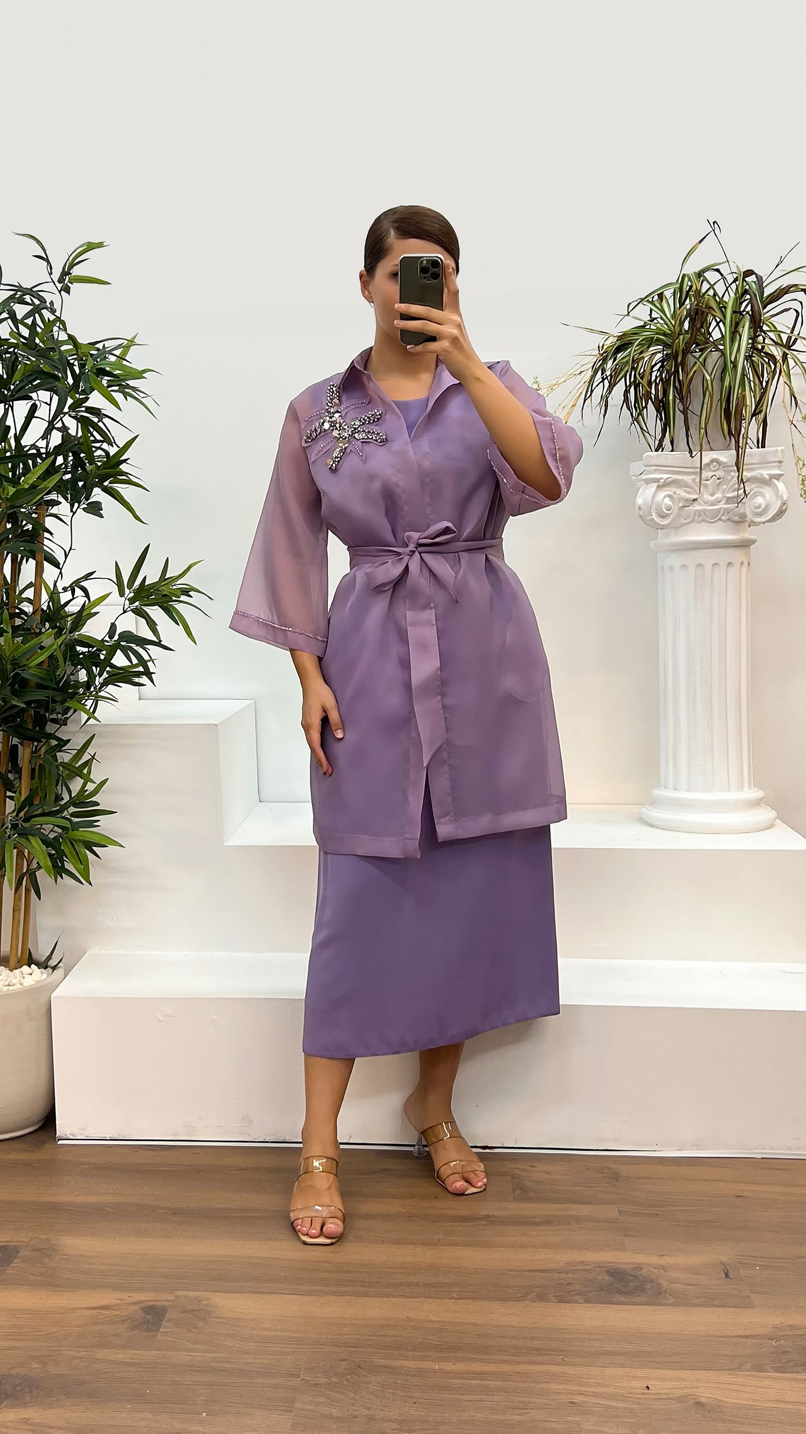 • Pudra Büyük Beden Saten Abiye Takım Elbise