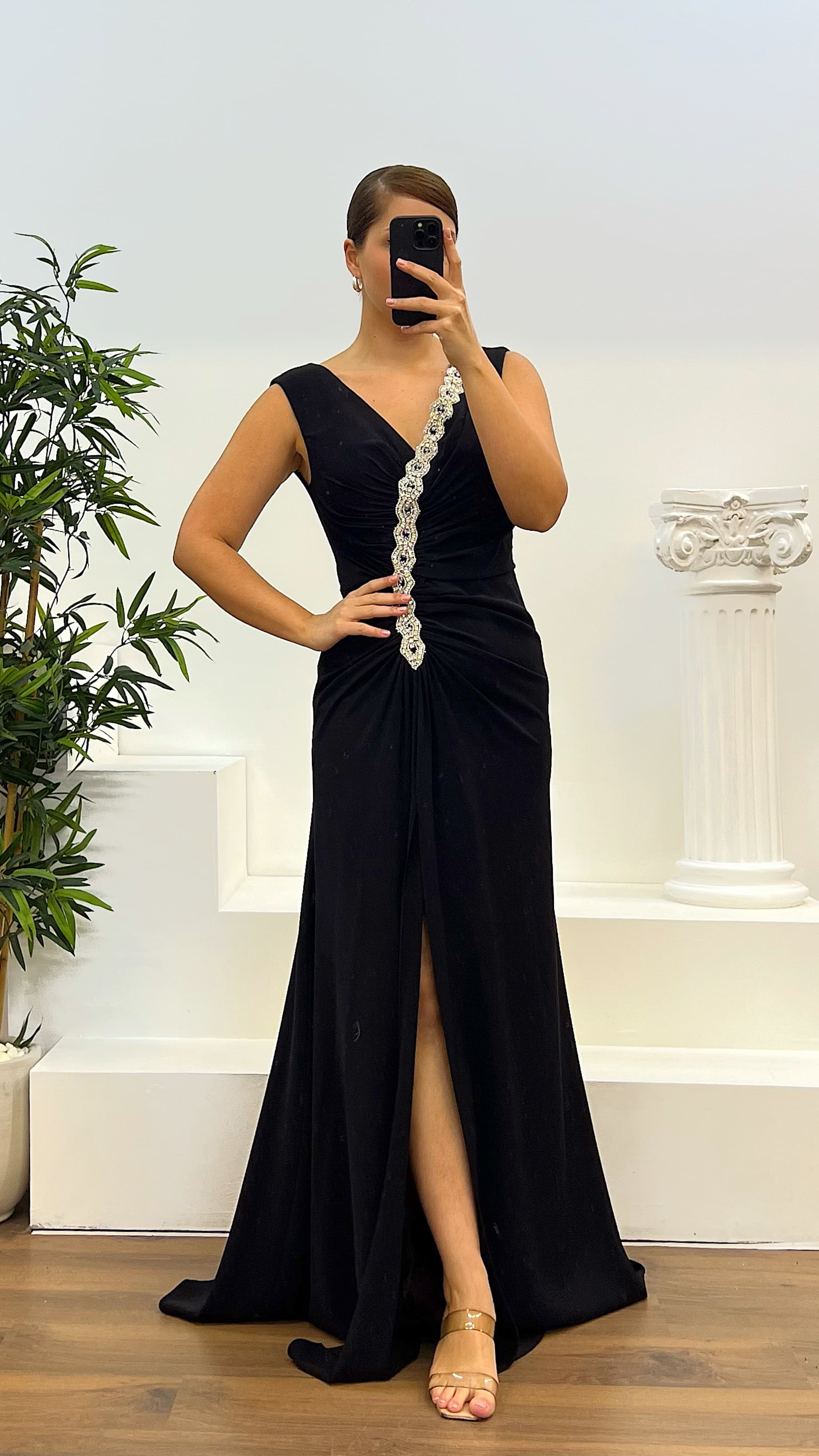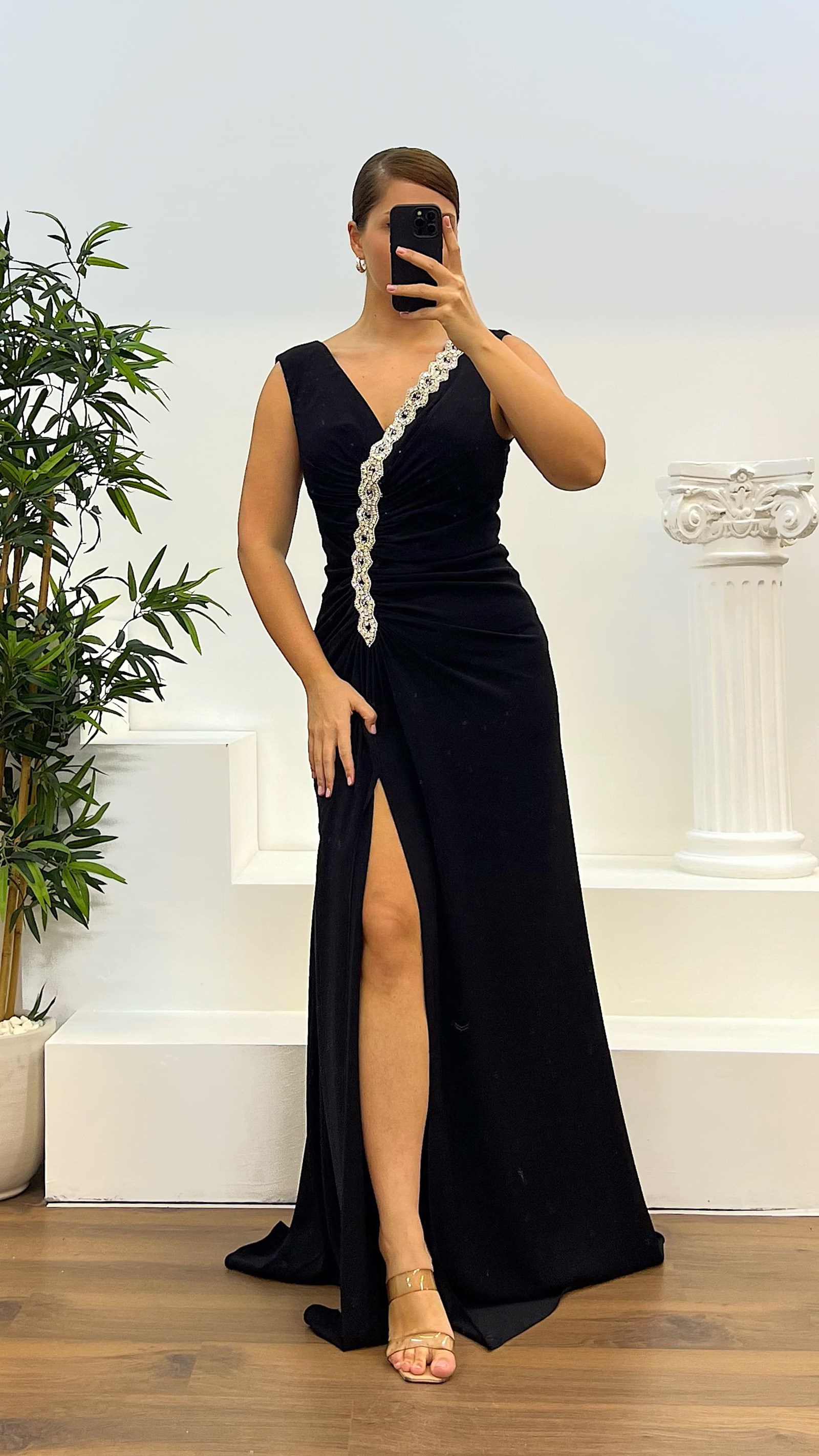 El producto es adecuado para tallas de la 44 a la 48, con almohadillas en el busto, forro, cierre de cremallera en la parte posterior, abertura, tirantes y detalles de bordado.