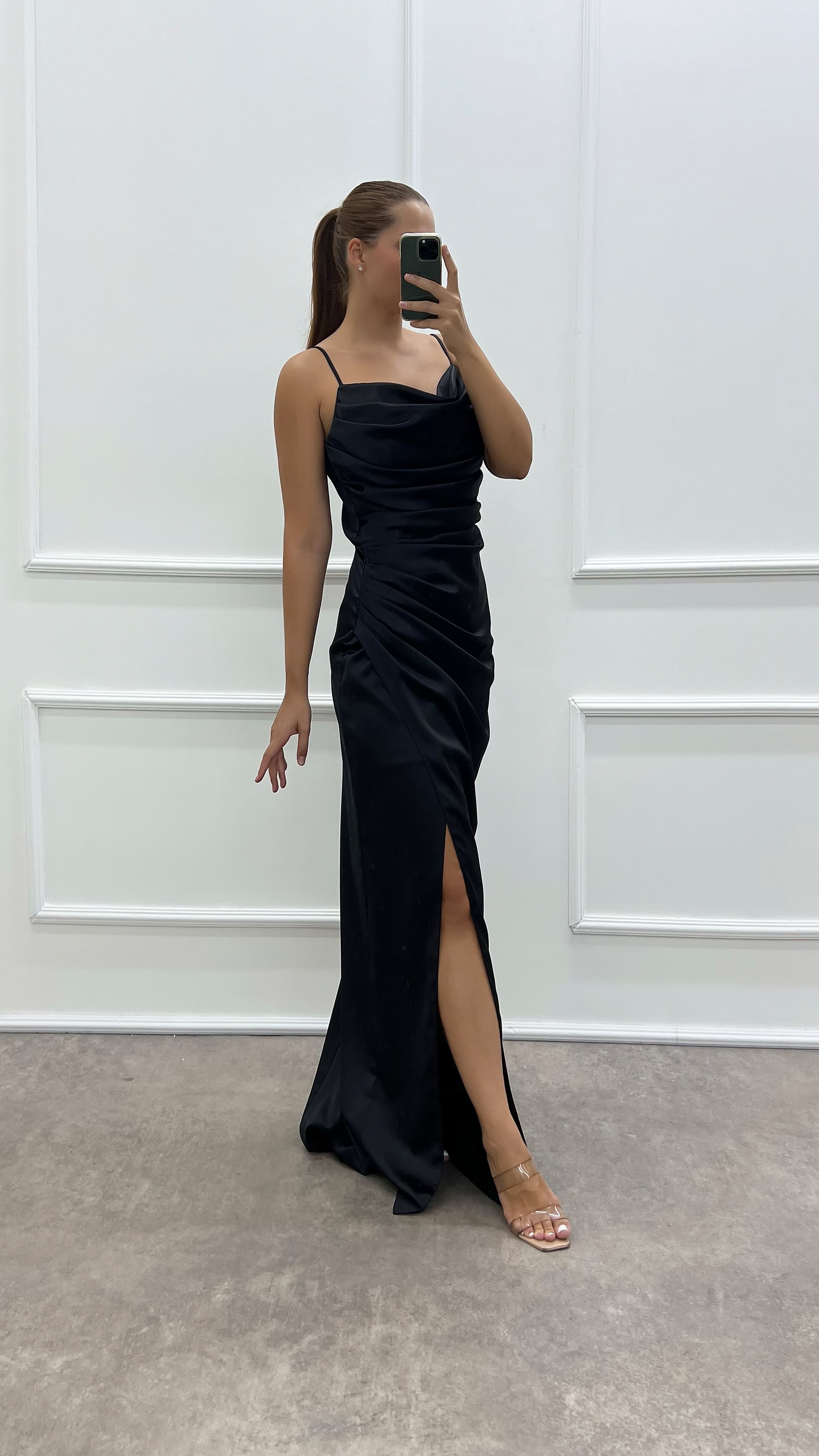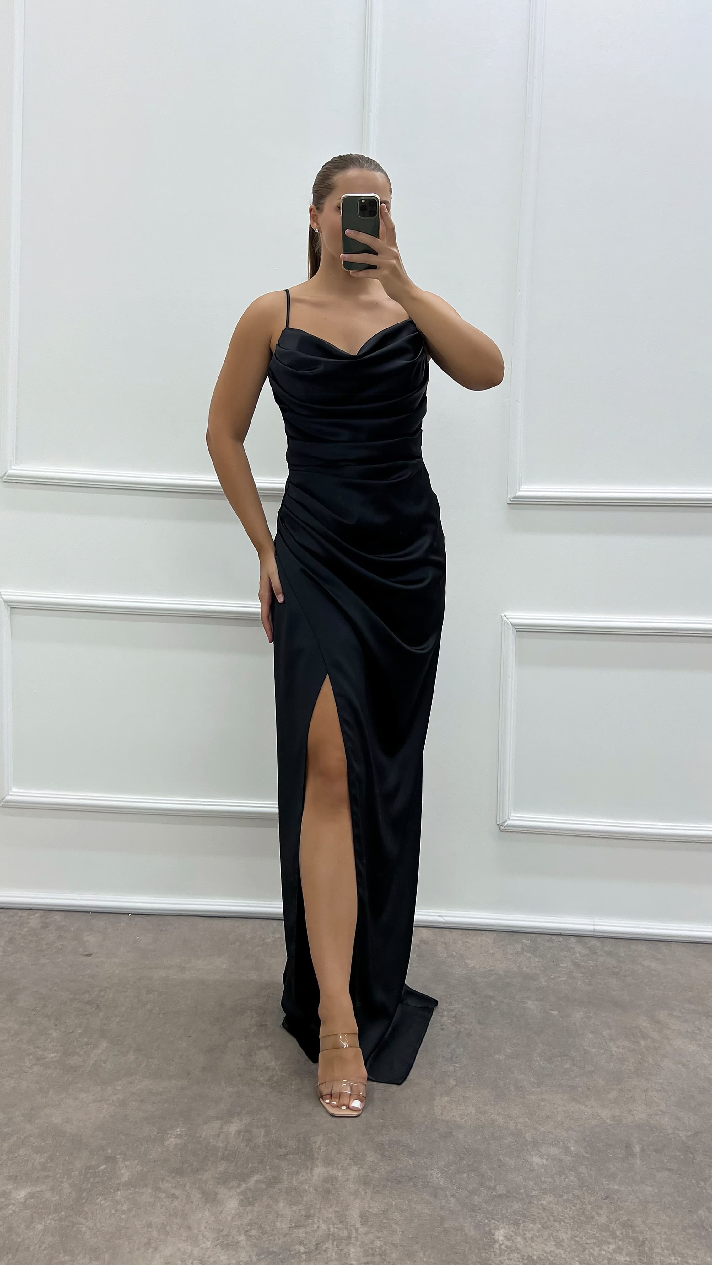 • Siyah İp Askılı Sırt Detay Büyük Beden Abiye Elbise