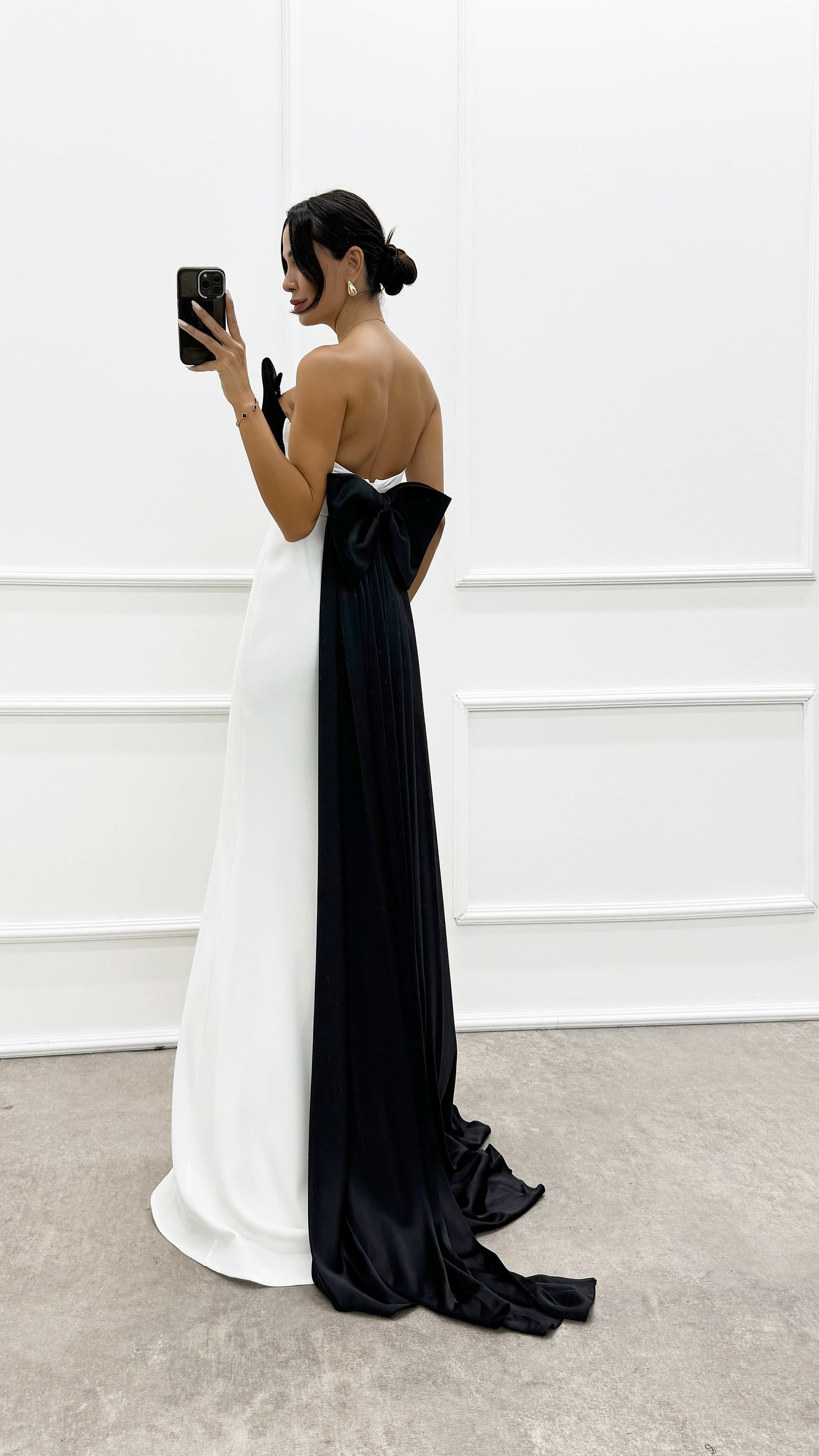 Siyah Straplez Göğsü Fiyonk Tasarım Elbise