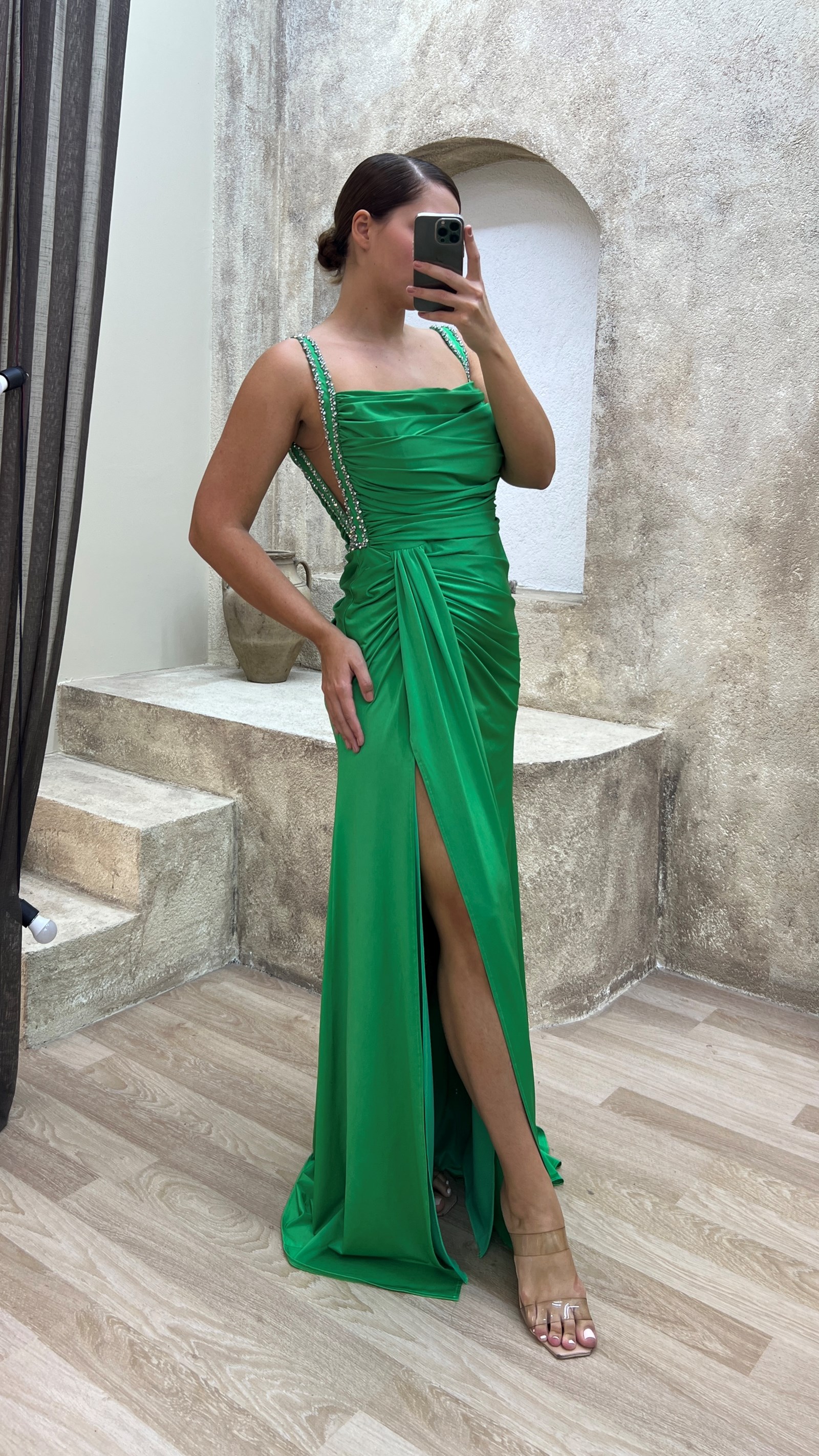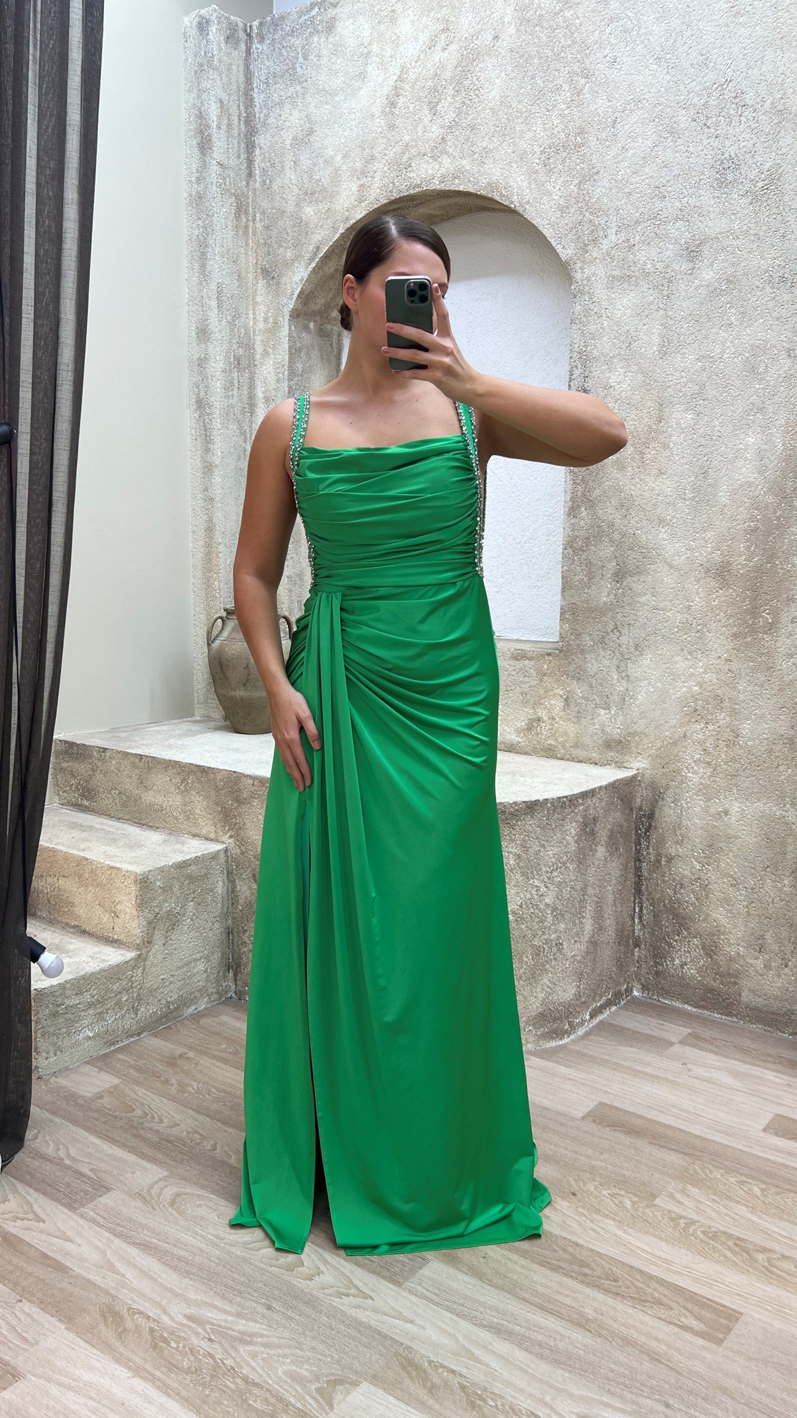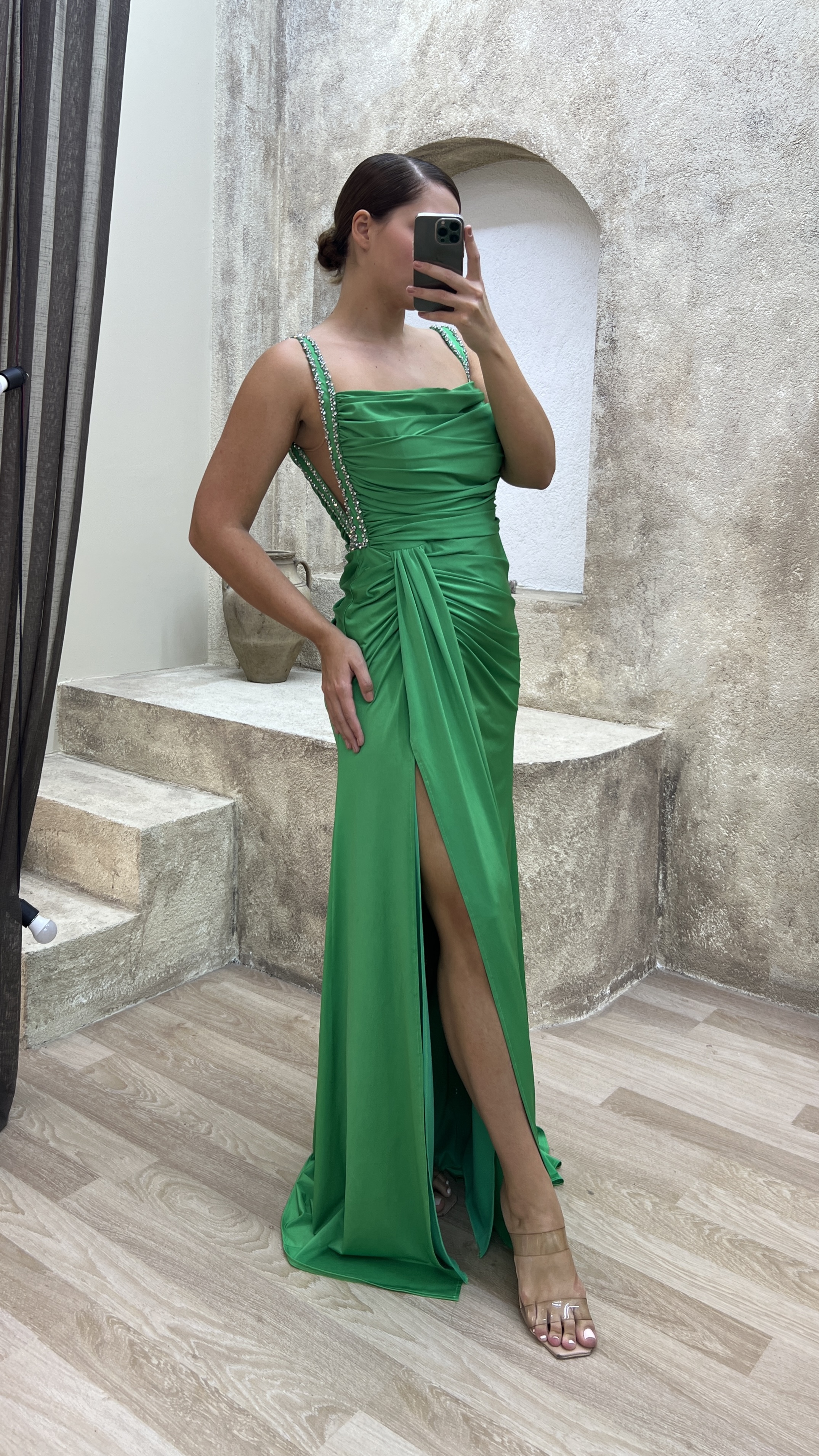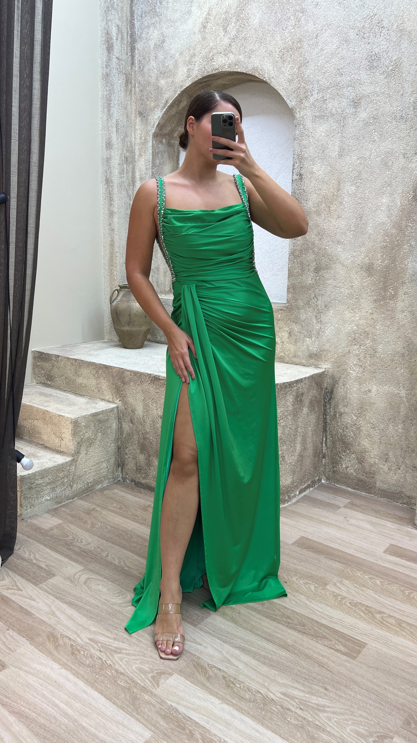 • Vestidos de noche bordados de tallas grandes con tirantes verdes