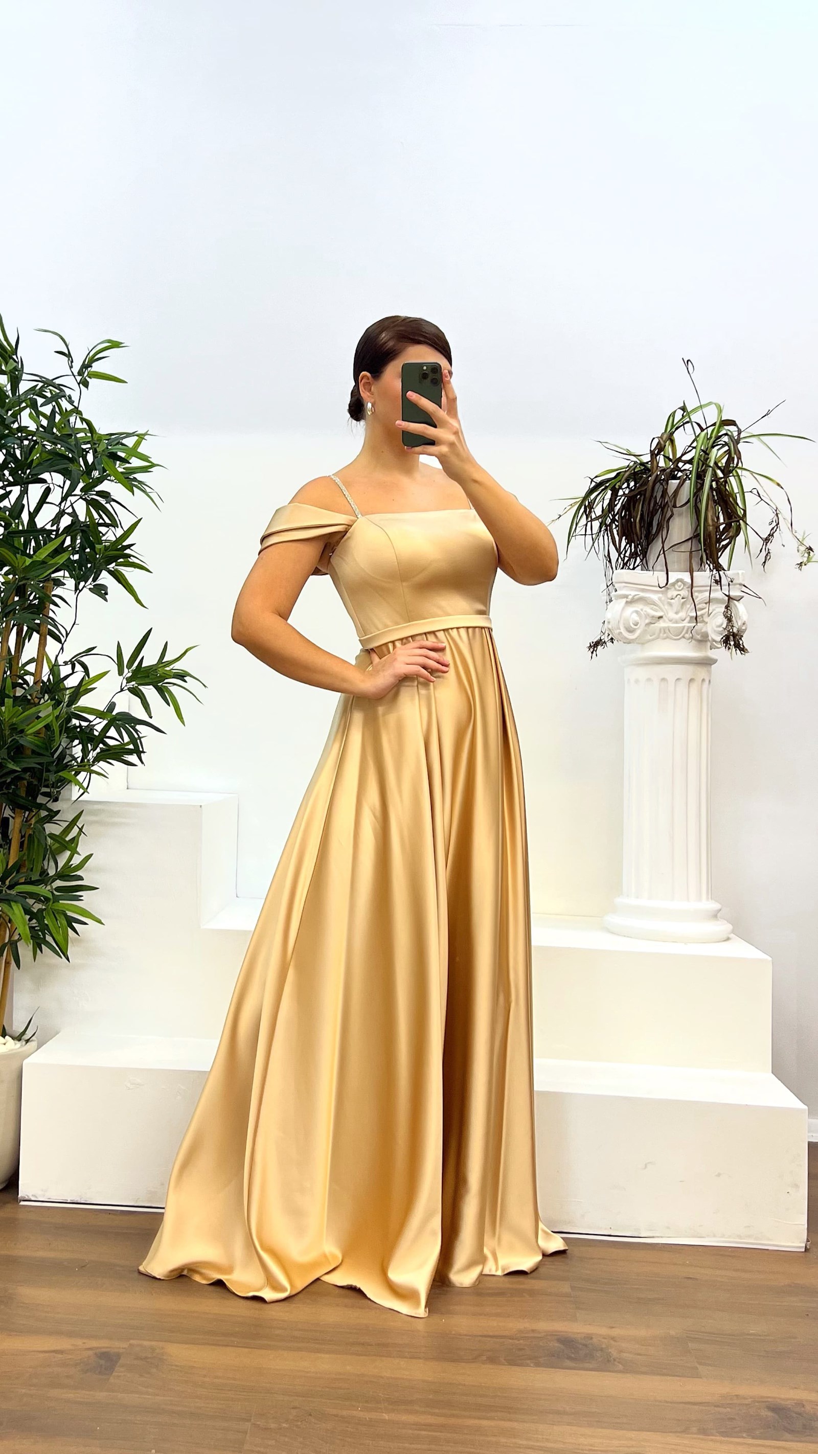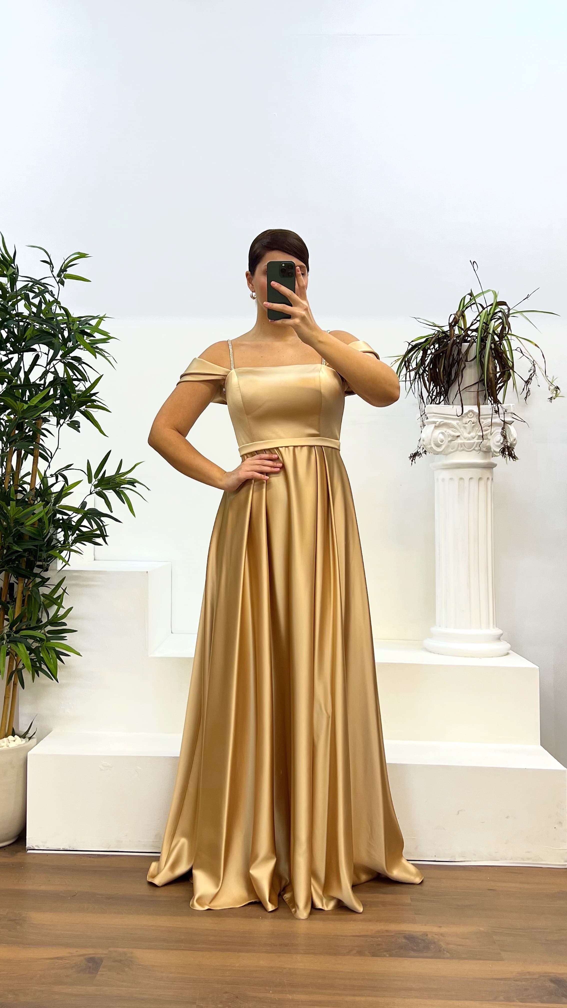 • Saks İp Askılı Saten Büyük Beden Abiye Elbise