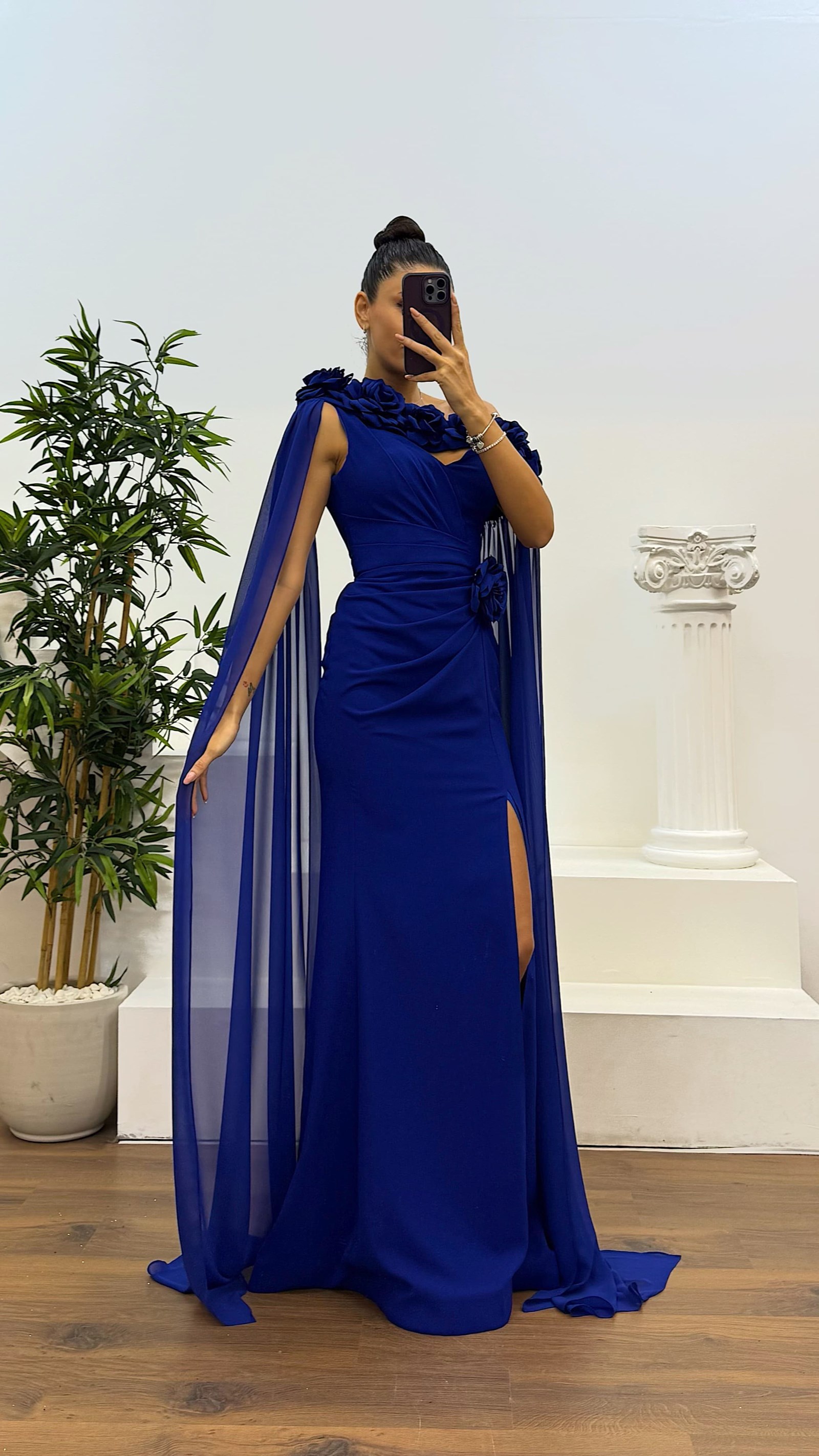 Vestido de noche con detalles de rosa en los hombros El producto es compatible con tallas de la 36 a la 44, cuenta con almohadilla para el busto, está forrado, tiene cierre de cremallera en la parte posterior, abertura lateral y está diseñado con detalles de rosa. La longitud del vestido puede variar entre 165-170 cm. Tipo de tela: 100% poliéster