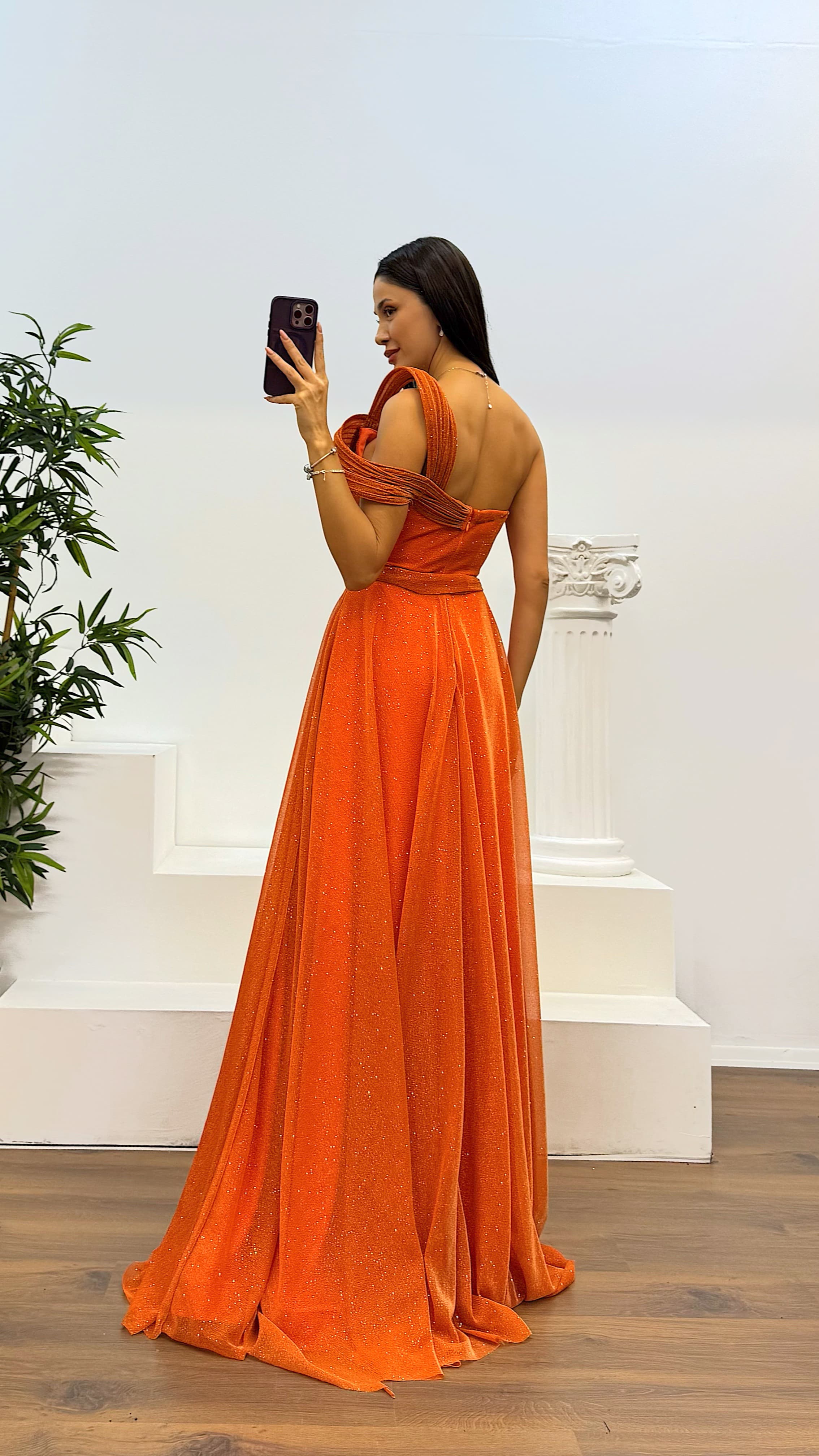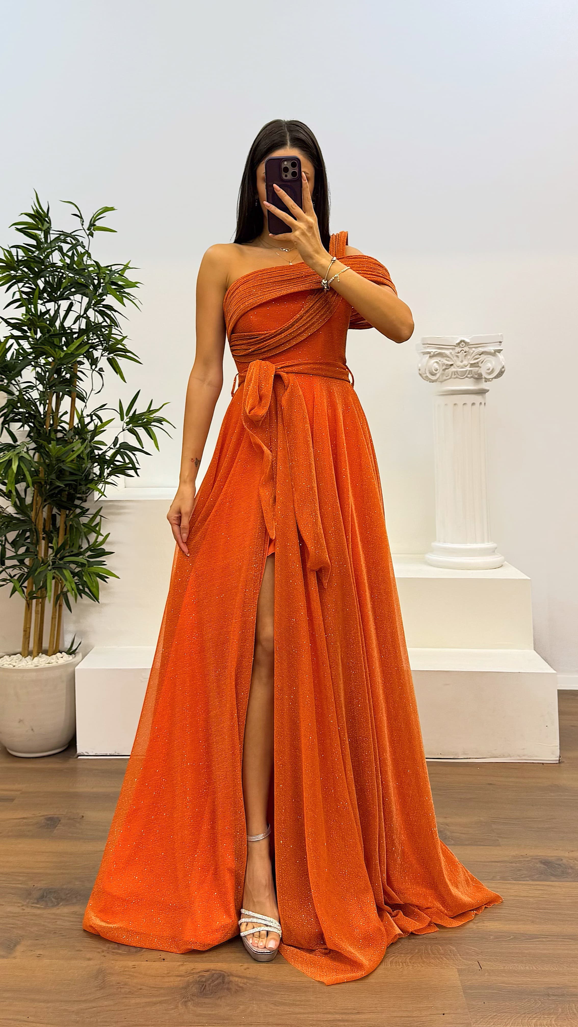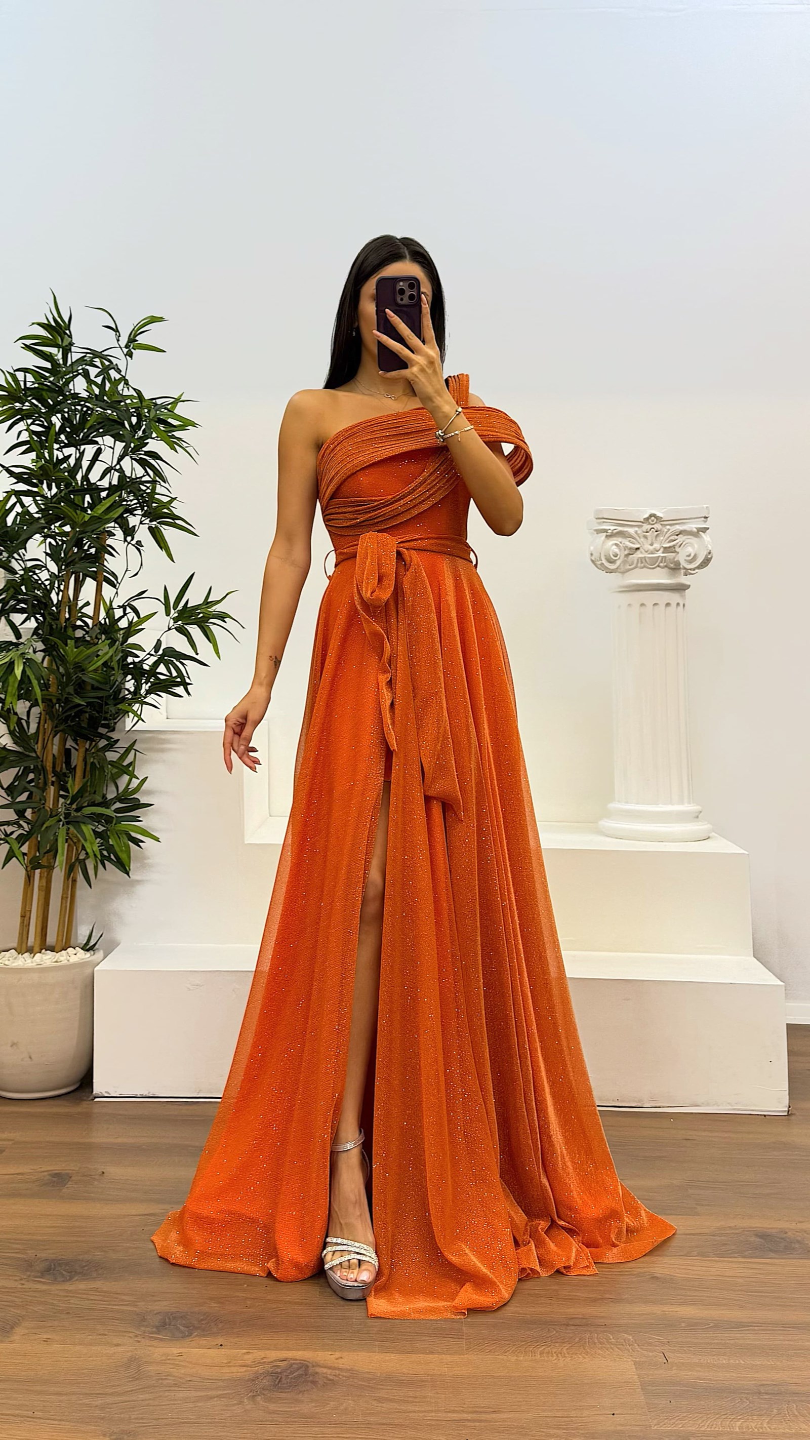 Vestido de noche voluminoso de un solo hombro El producto es compatible con tallas de 36 a 42, con almohadillas para el pecho, forrado, cierre con cremallera en la parte posterior, con abertura, y cinturón. Longitud del producto: puede variar entre 165-170 cm. Tipo de tela: tul brillante, 3% lycra, 97% poliéster.