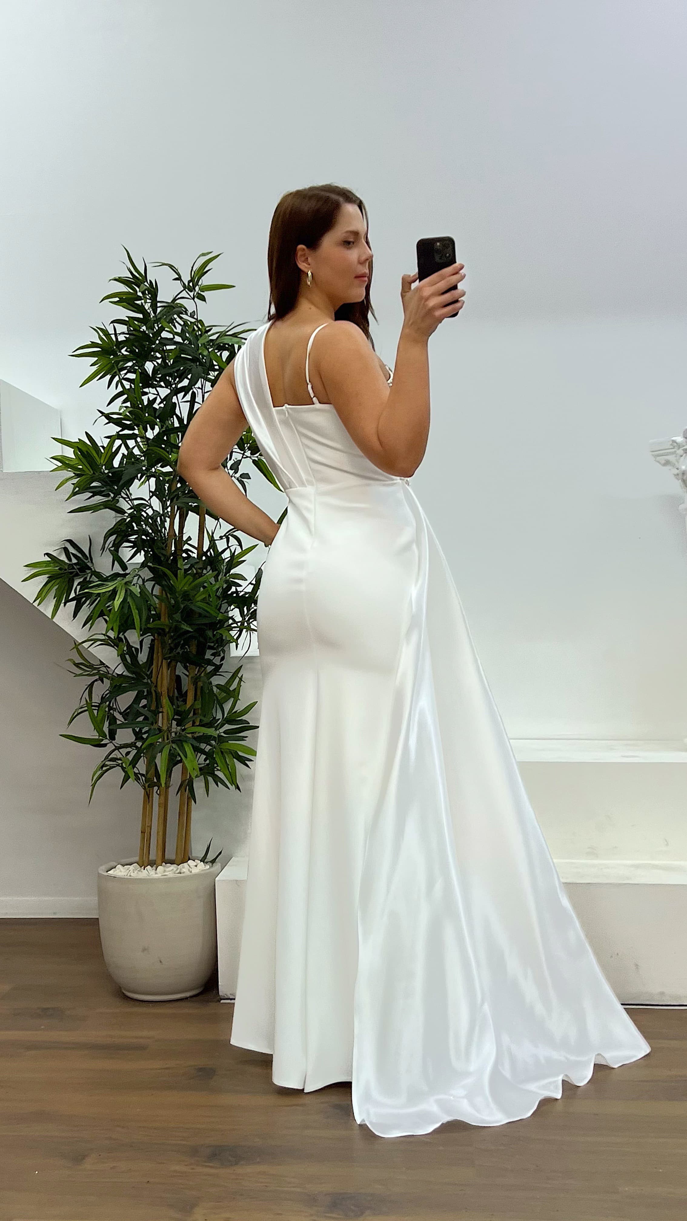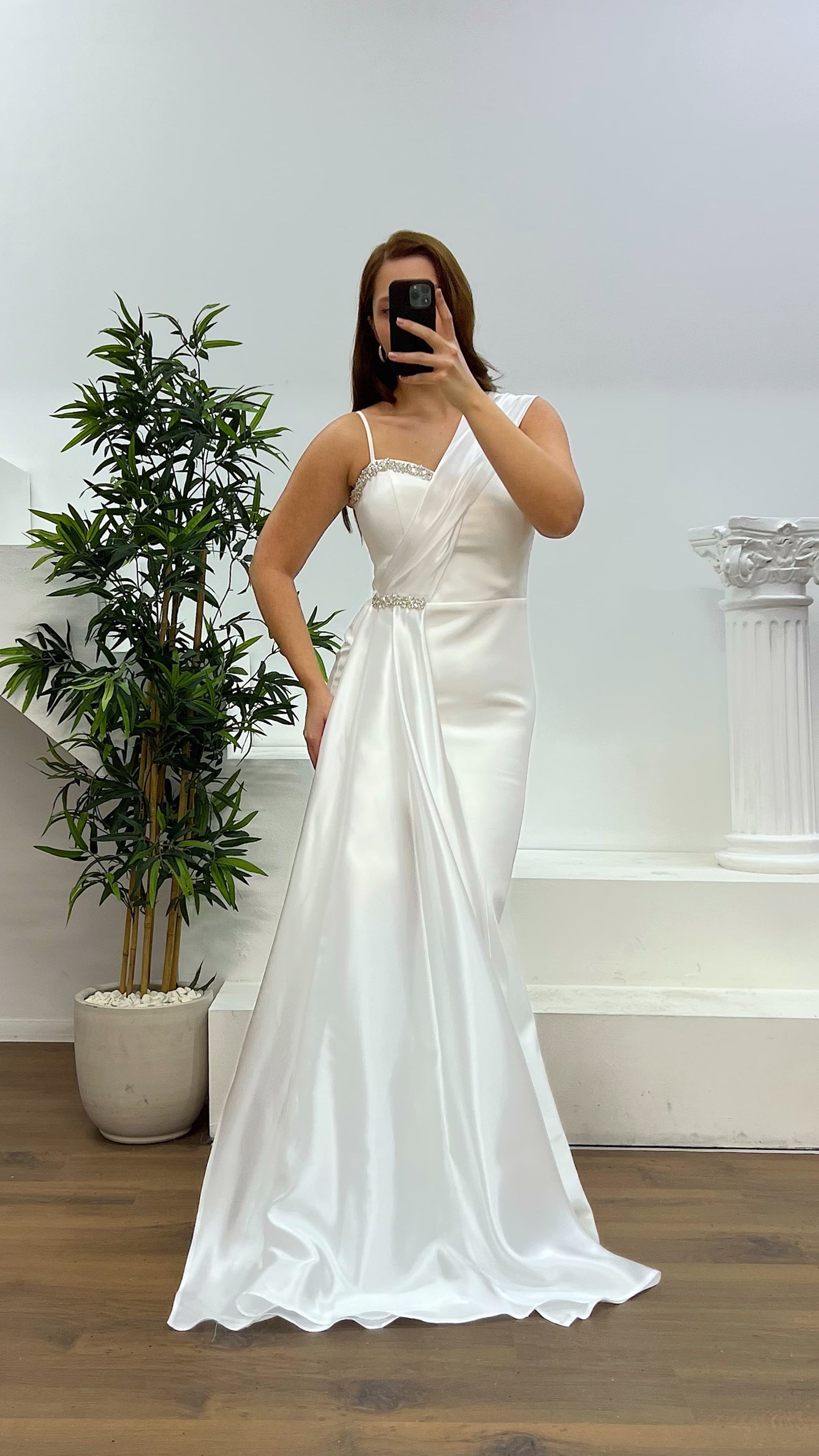 • Beyaz Taş Detay Askılı Büyük Beden Abiye Elbise