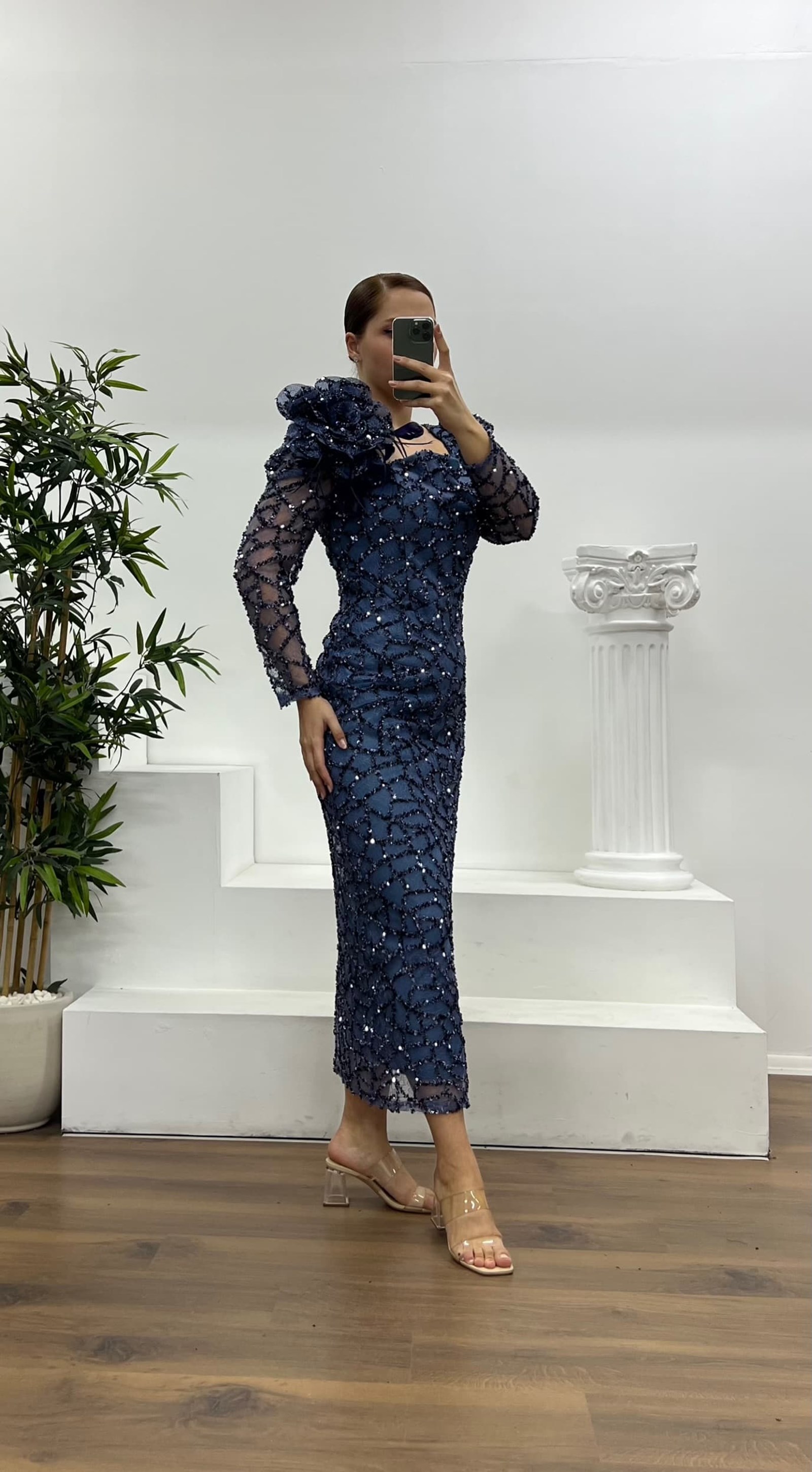 Vestido de noche bordado Adecuado para tallas 44–48, con copas acolchadas, forro interior, cierre trasero con cremallera, detalles florales y bordados. Largo: entre 165 y 170 cm (puede variar). Tipo de tela: lentejuelas, 100 % poliéster. Perfecto para bodas, compromisos, graduaciones o eventos especiales para destacar con elegancia.