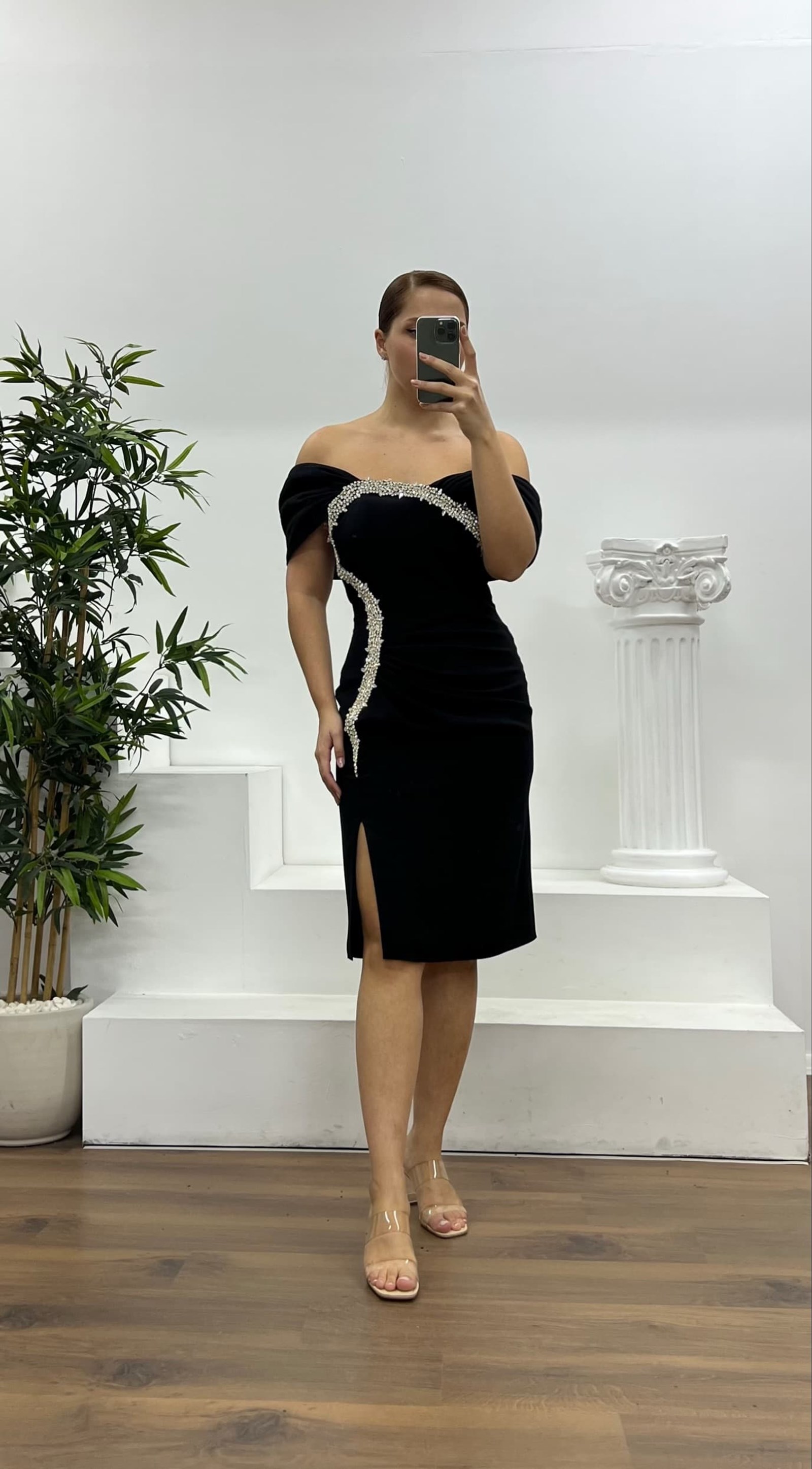 • Vestido de noche mini de talla grande con detalle de piedra negra