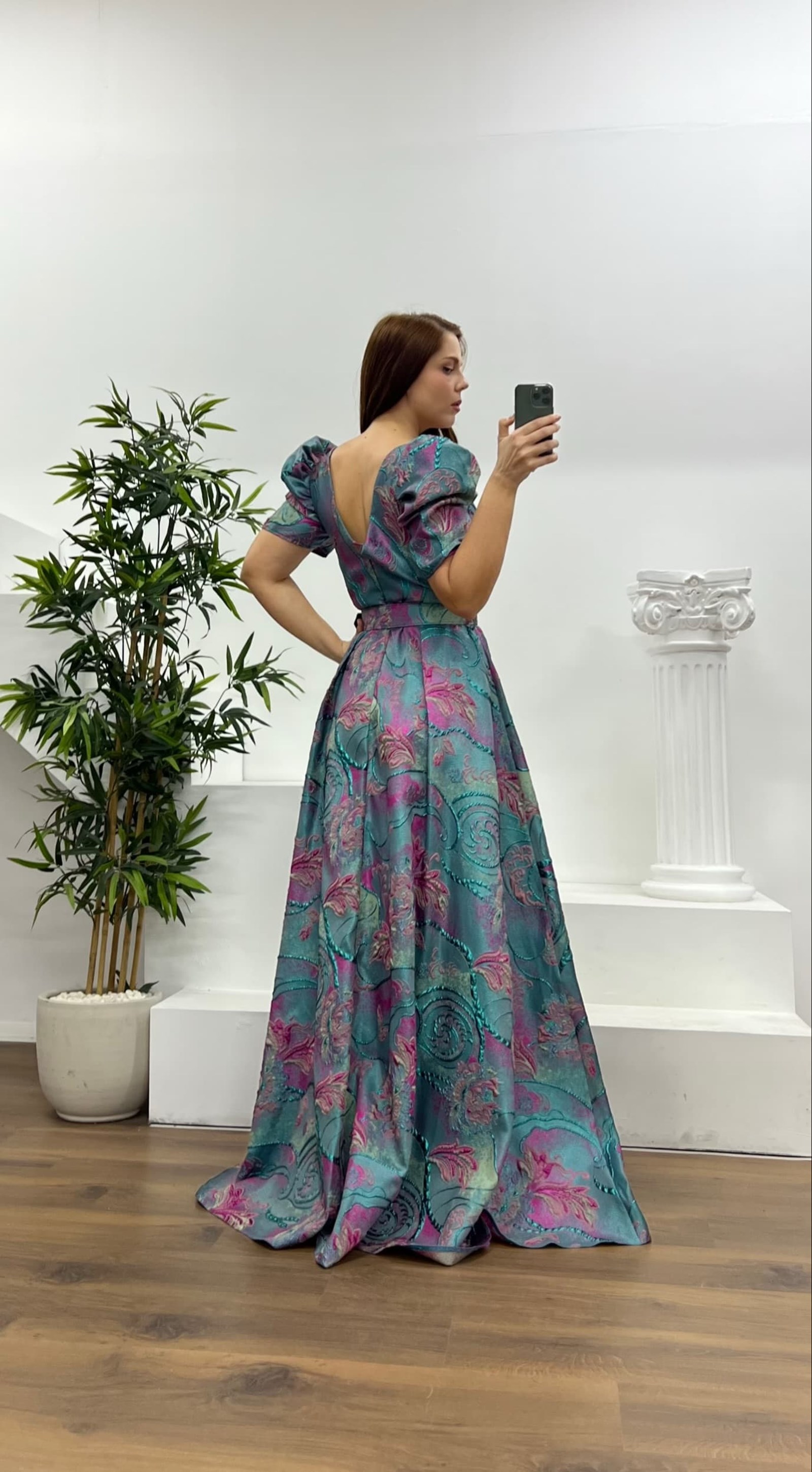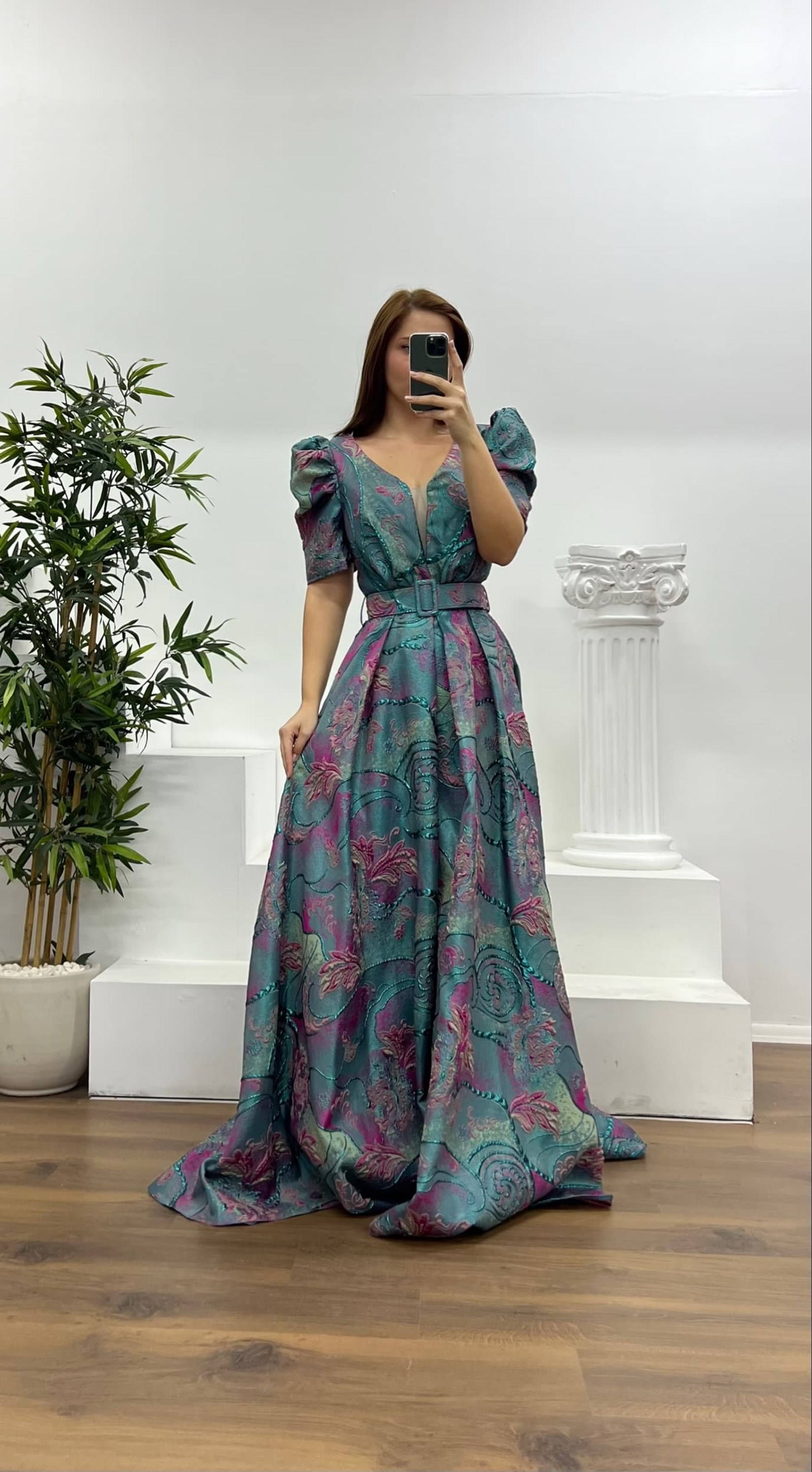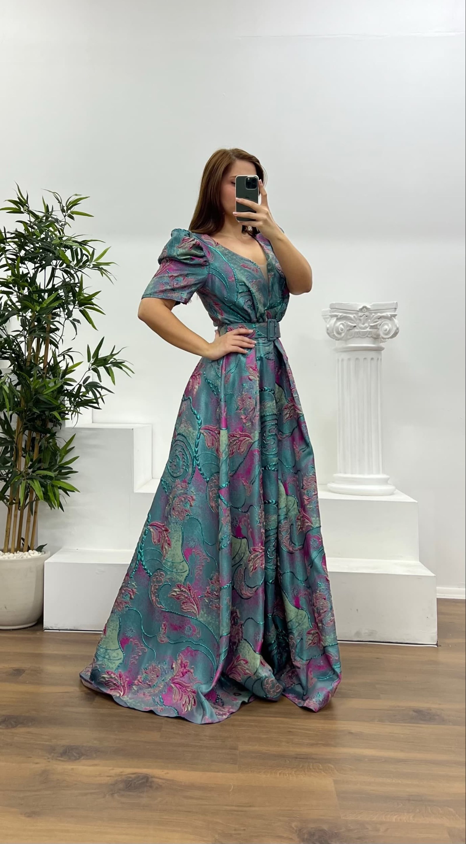 Vestido de noche con cinturón y diseño tejido El producto se adapta a tallas 44–48, con copas acolchadas, forro, cierre trasero con cremallera y cinturón. Largo: entre 170 y 175 cm Tipo de tela: satén, 100 % poliéster Una elección ideal para destacar con elegancia en bodas, compromisos, graduaciones o eventos especiales.