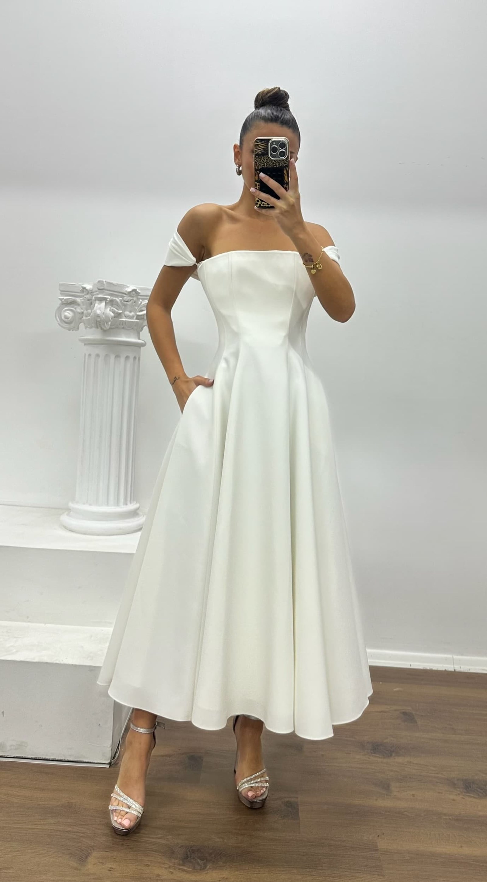 Vestido de fiesta con detalle en los hombros El producto es apto hasta la talla 36. Está diseñado como un vestido de fiesta con copas acolchadas, forro, cierre trasero con botones y bolsillos. Longitud del producto: 150 cm Tipo de tela: satén, 100 % poliéster Una opción ideal para destacar con elegancia en bodas, compromisos, graduaciones o eventos especiales.
