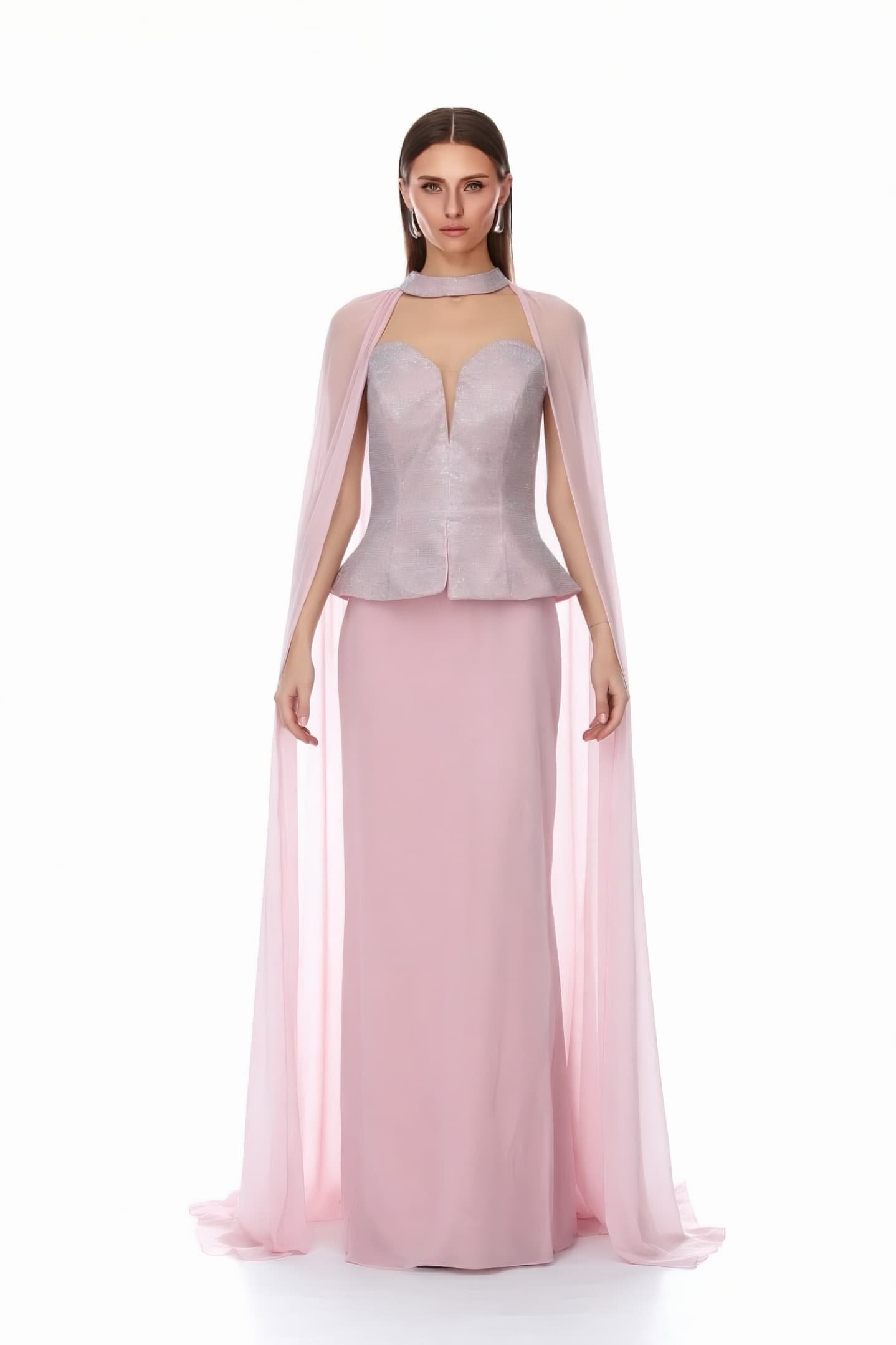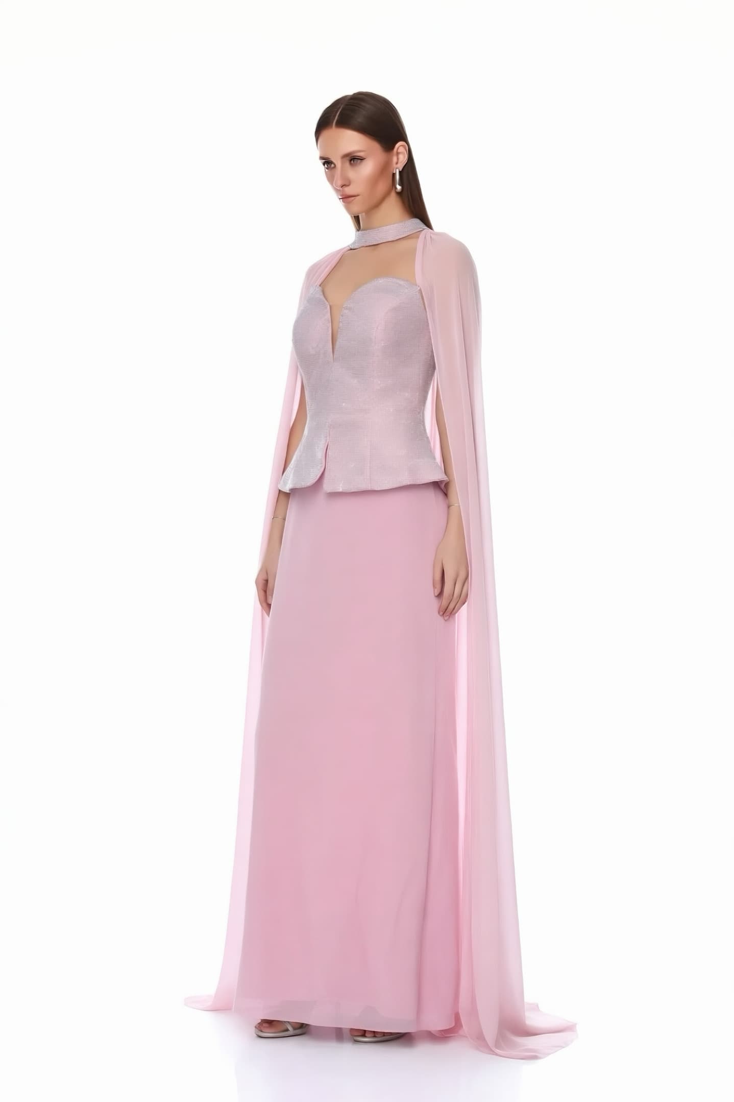 • Pembe Pelerinli ve Taşlı  Abiye Elbise