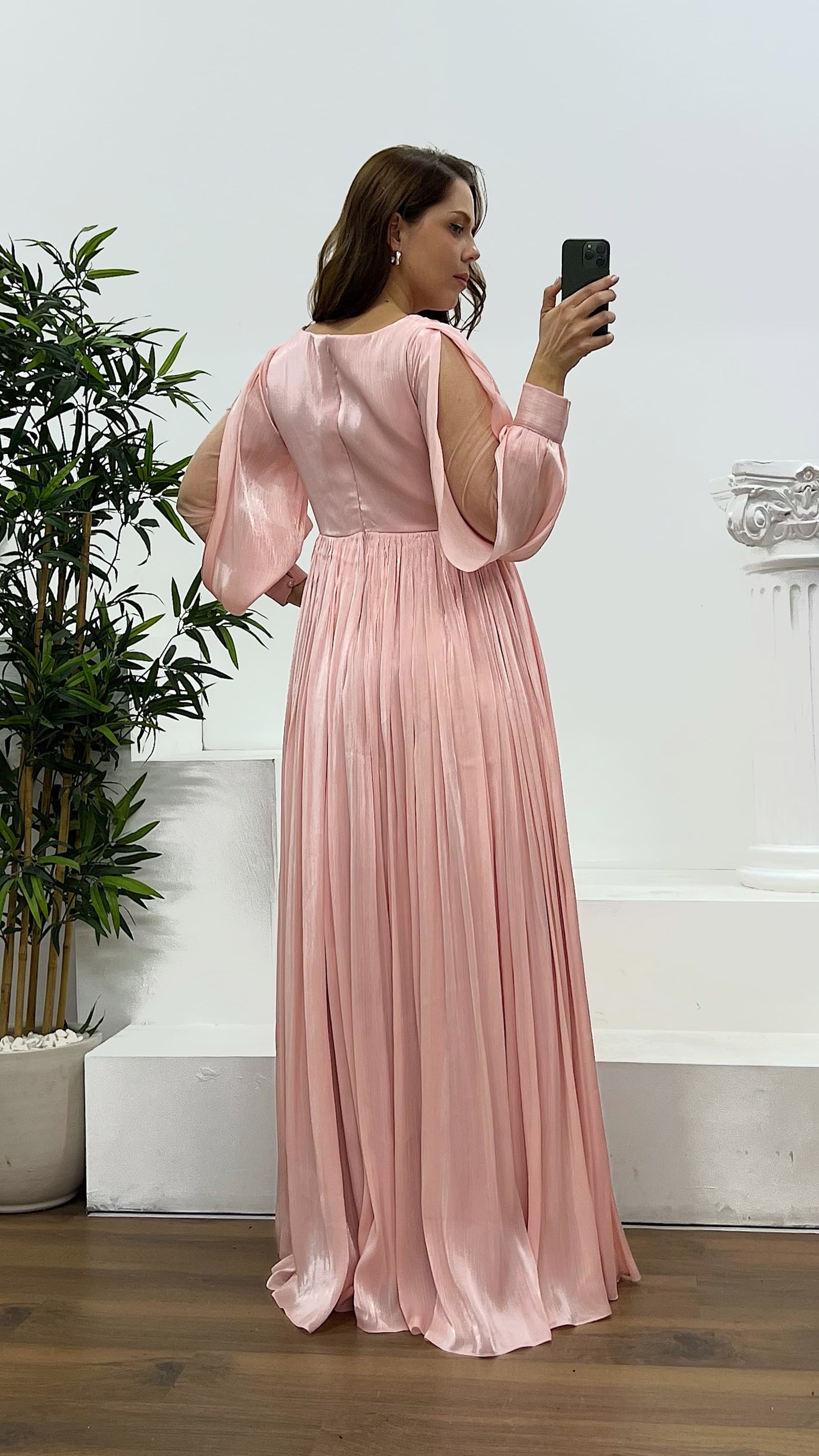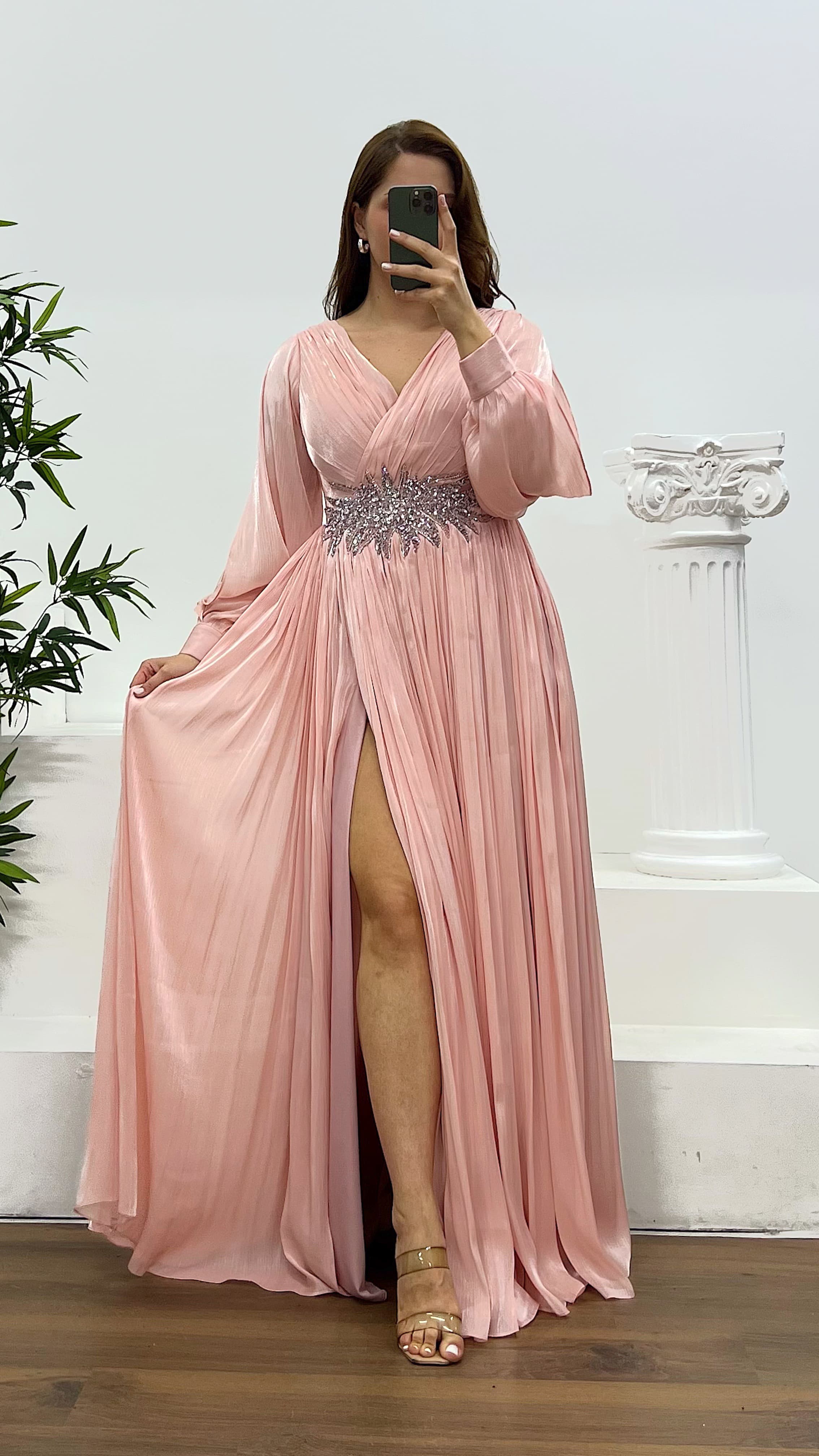 • Pudra Bel Detay Büyük Beden Abiye Elbise