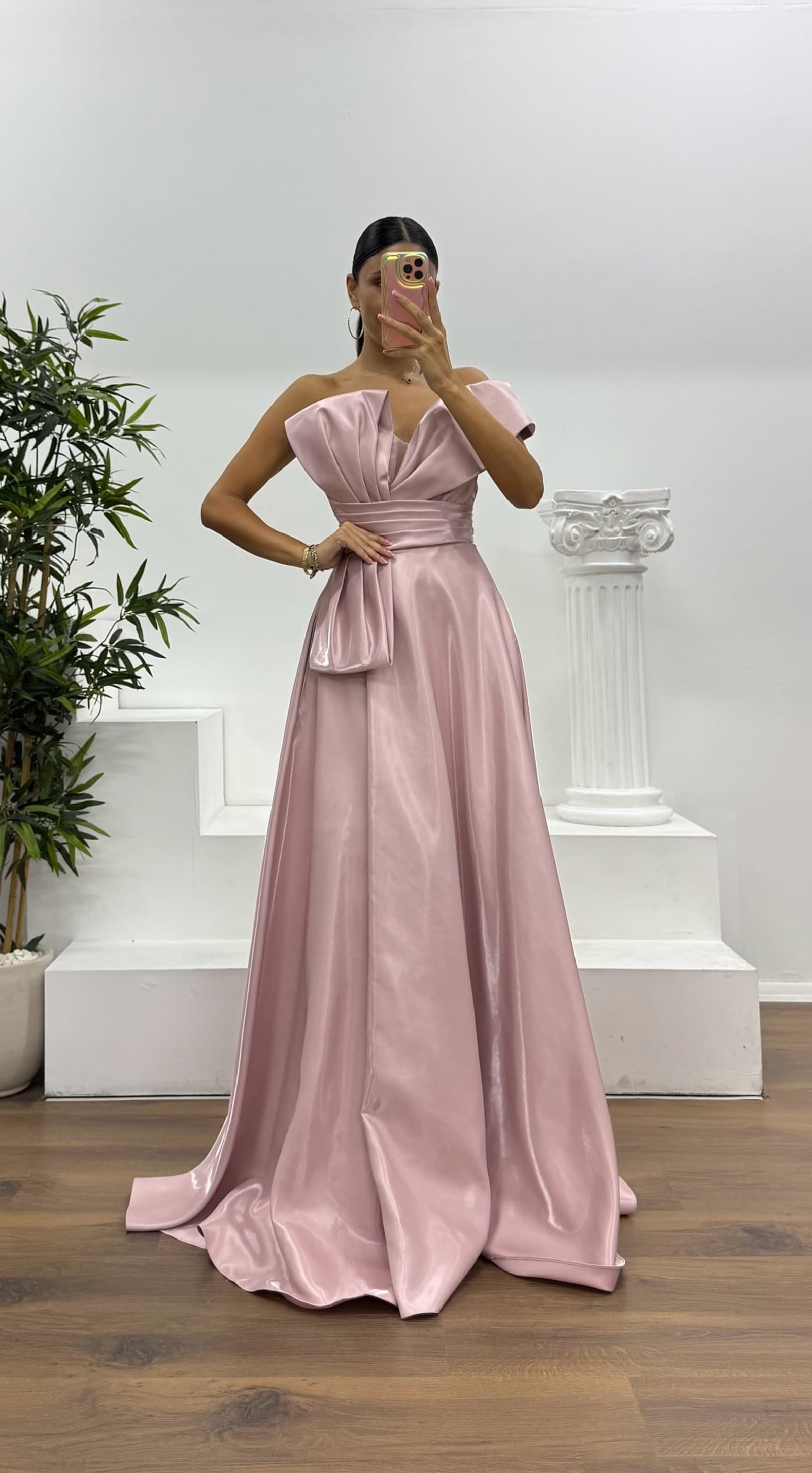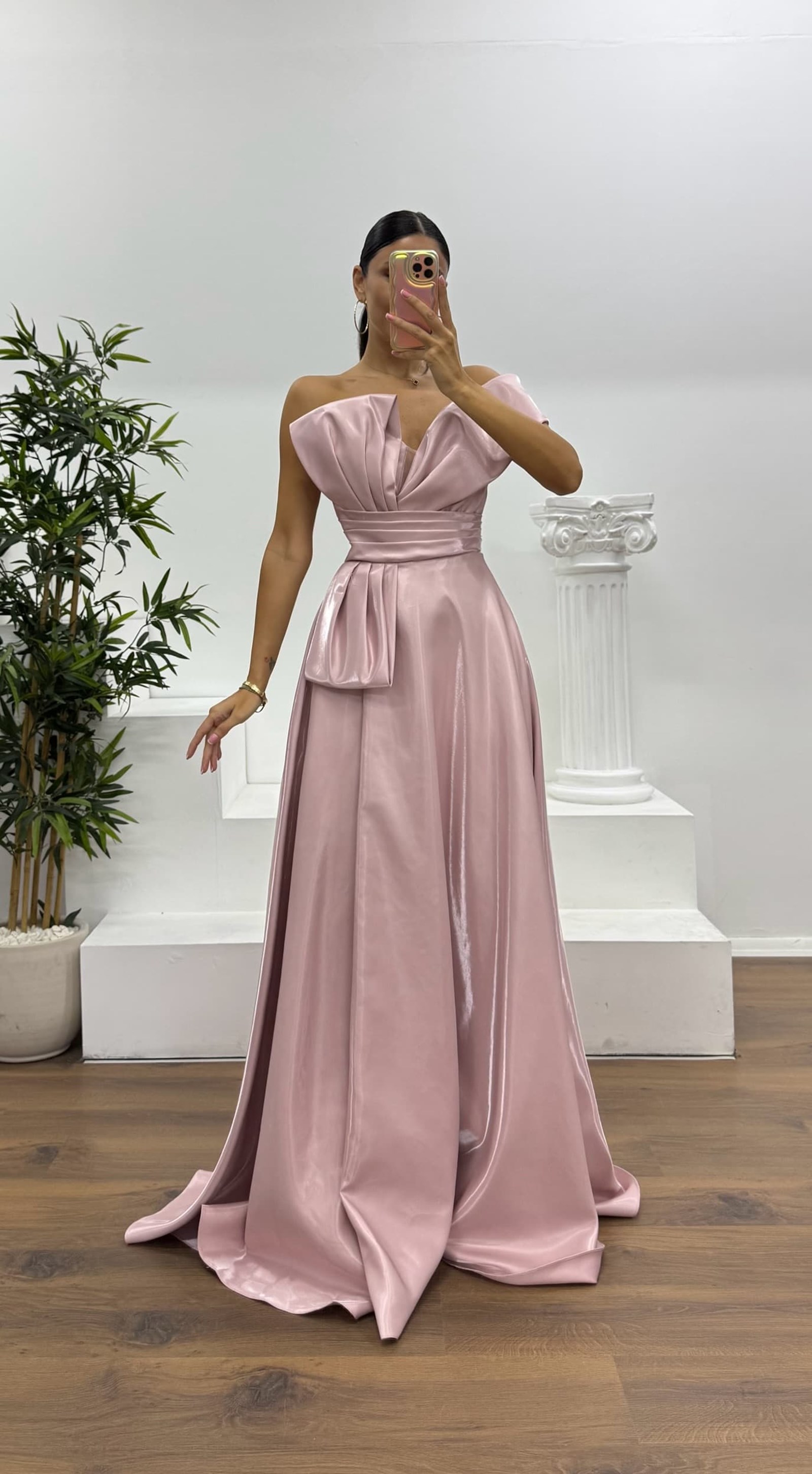 Robe de soirée à une épaule avec manche bouffante Le produit convient aux tailles 36 à 42, avec des bonnets rembourrés, une doublure, une fermeture éclair au dos et une fente. Longueur du produit : Peut varier entre 170 et 175 cm. Type de tissu : Satin polyester-viscose
