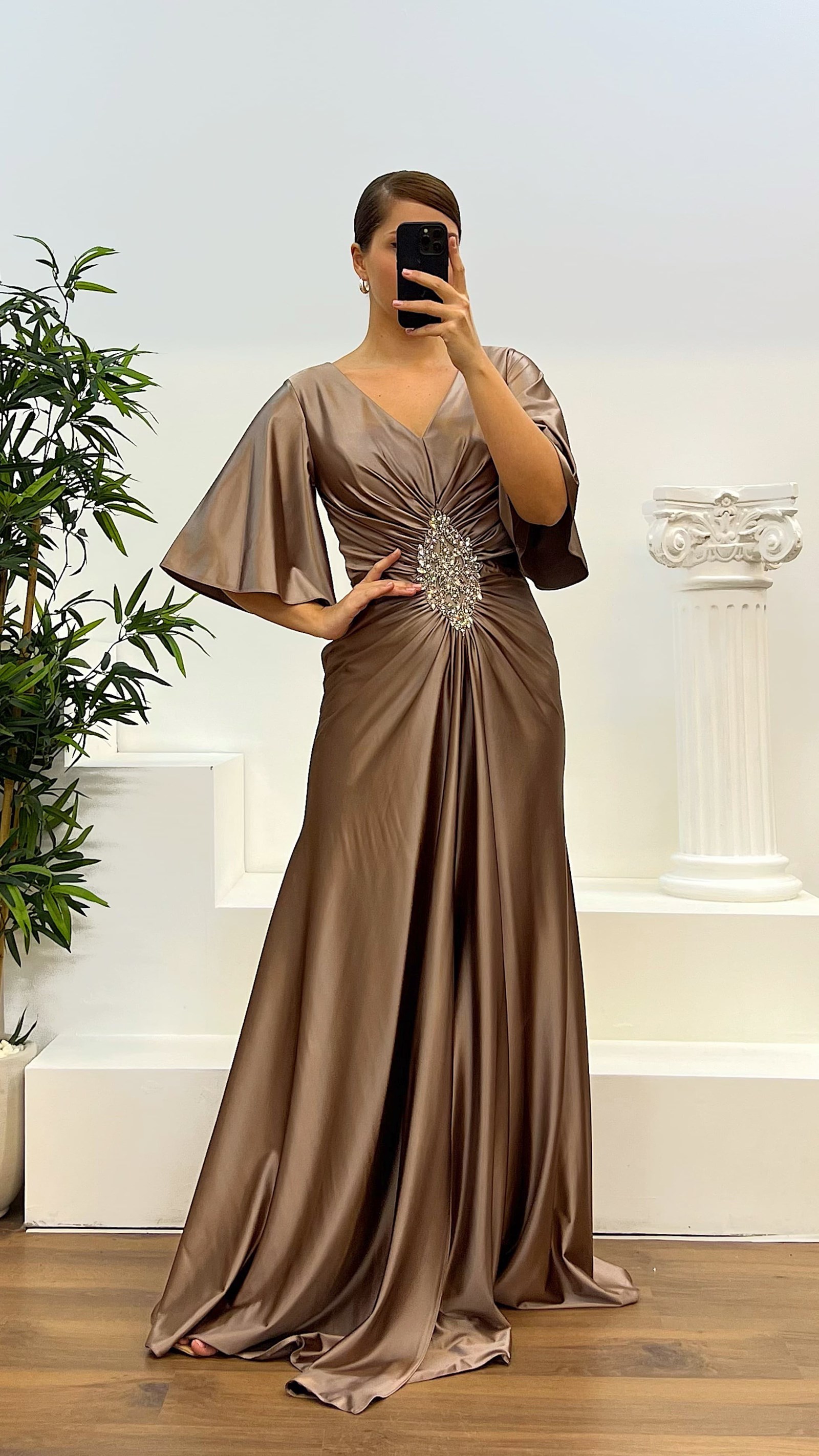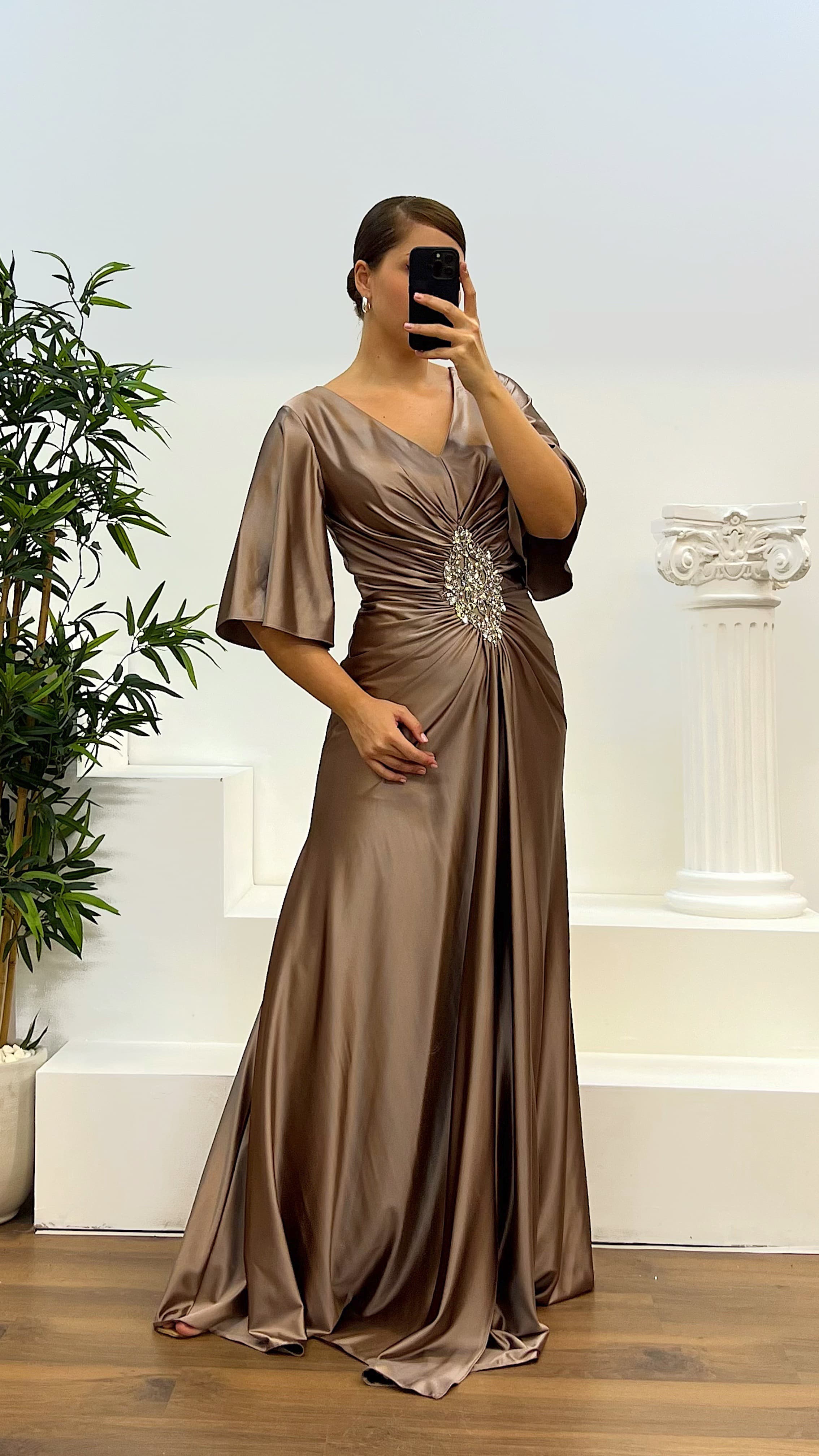 • Vizon Yarasa Kol Büyük Beden Abiye Elbise