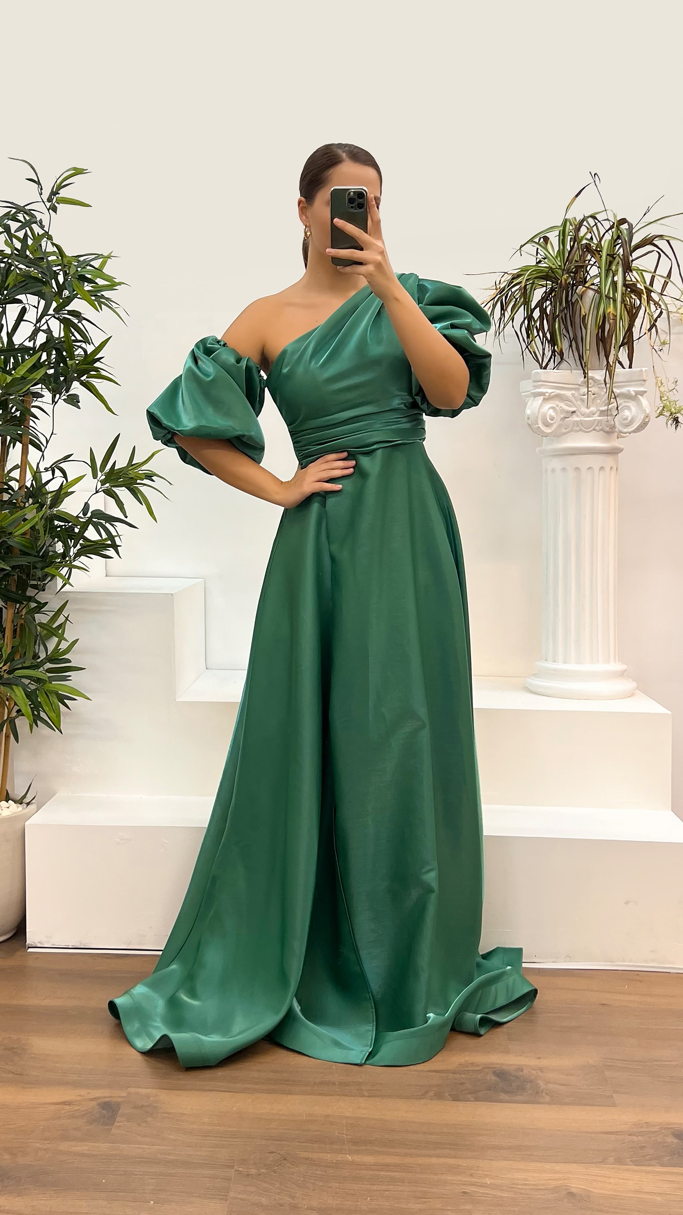 Robe de soirée verte à manches ballon grande taille