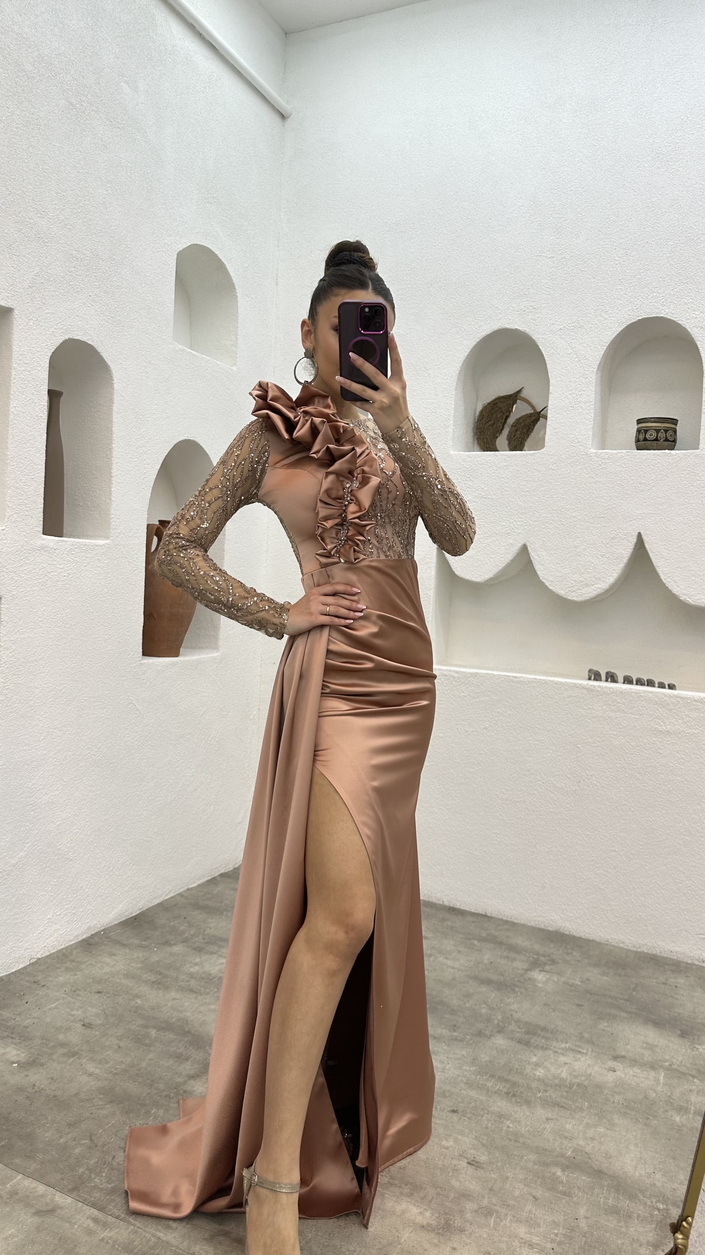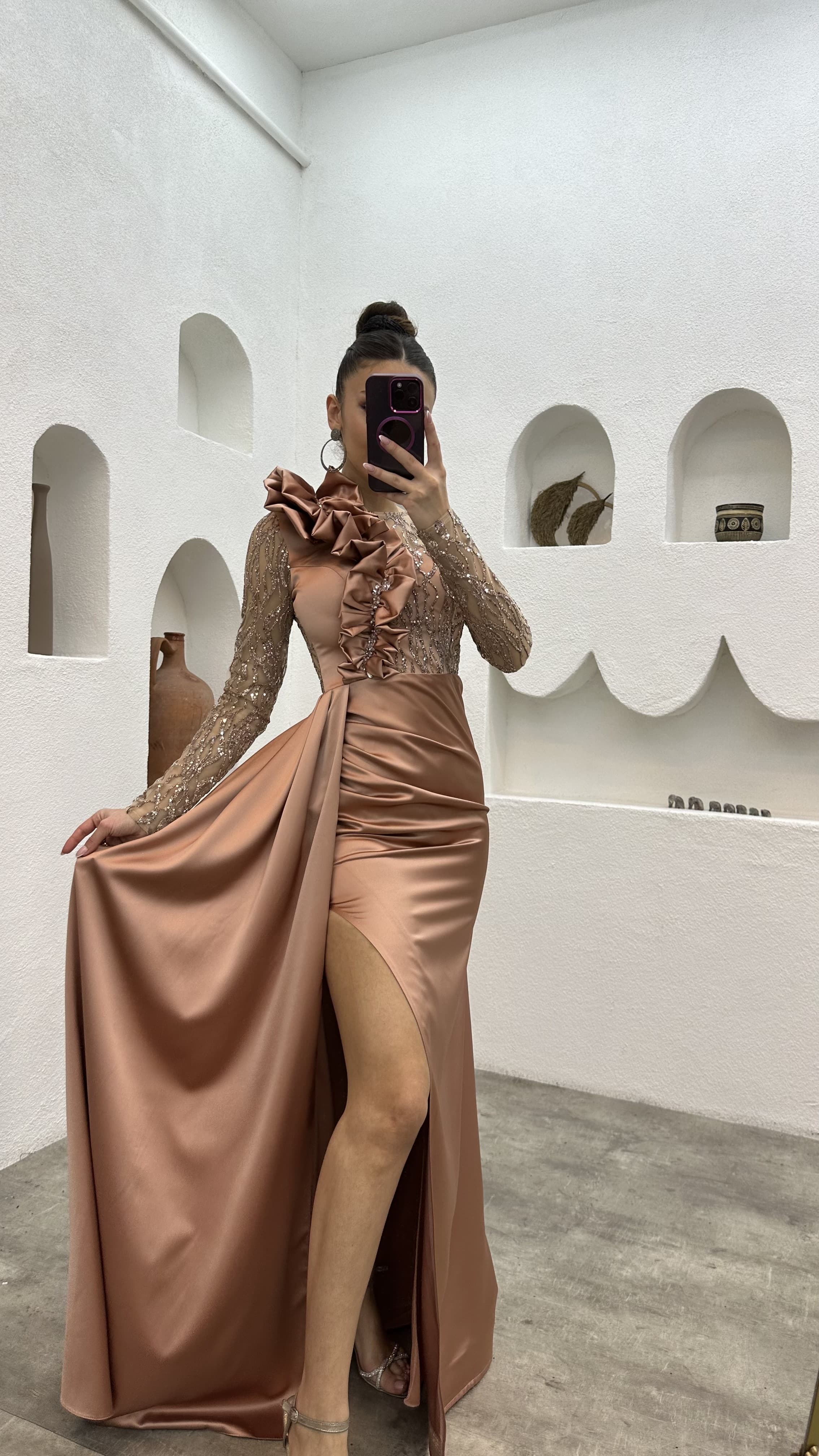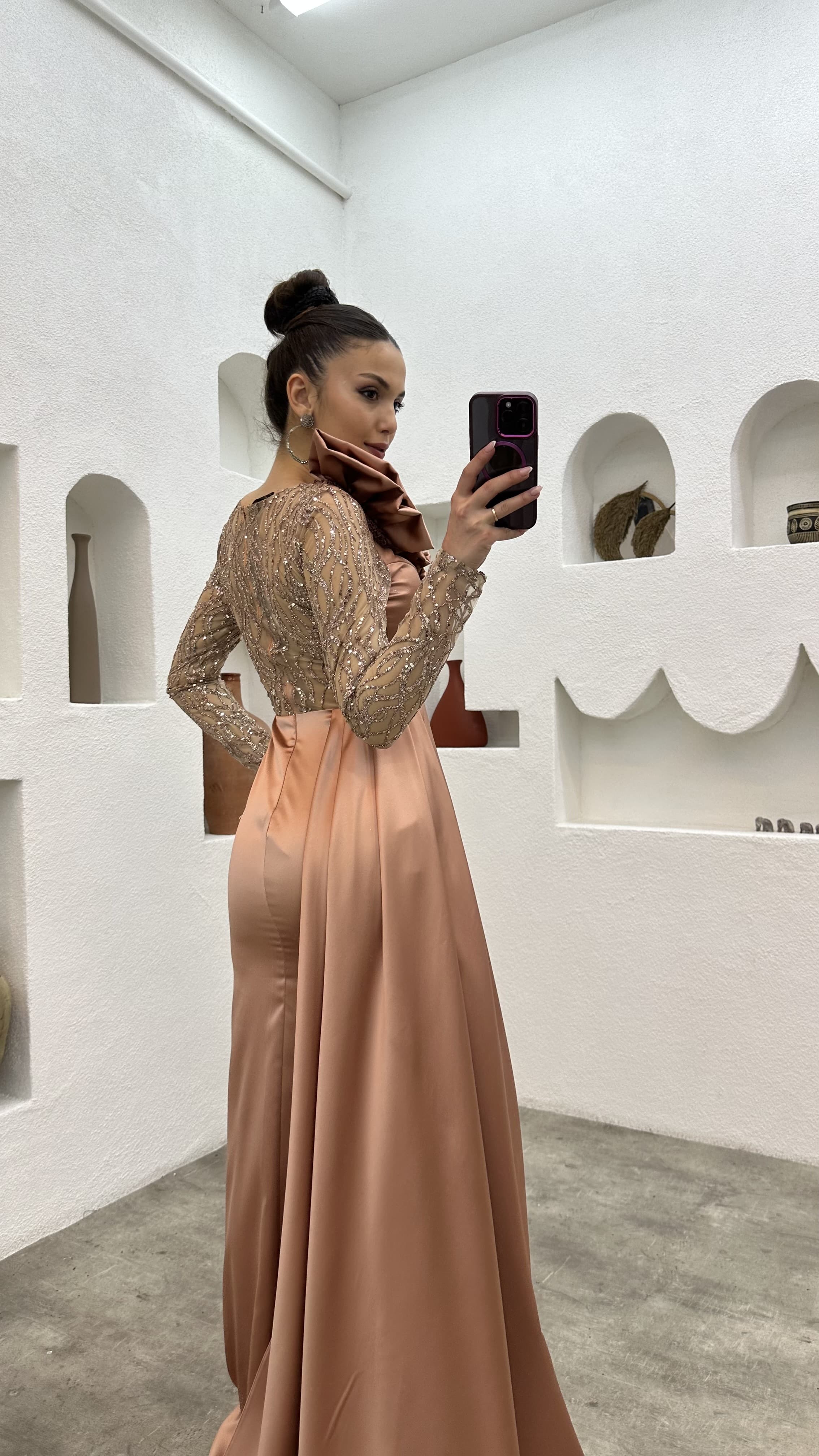 • Gül Kurusu İşlemeli Omuz Detay Abiye