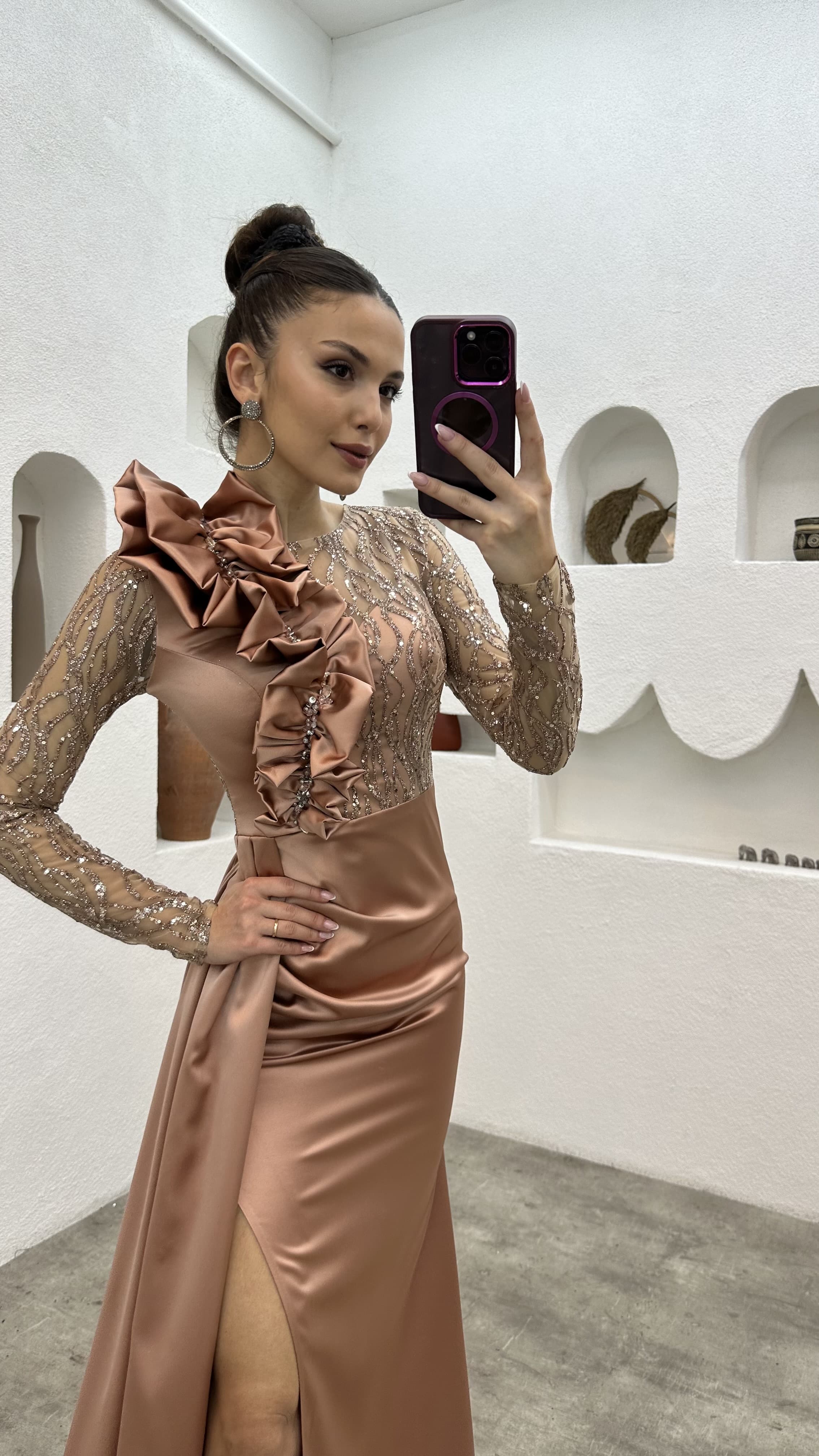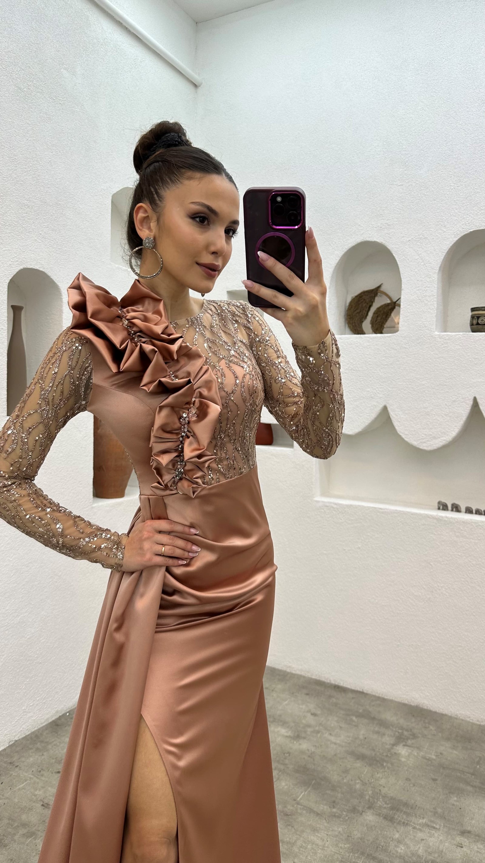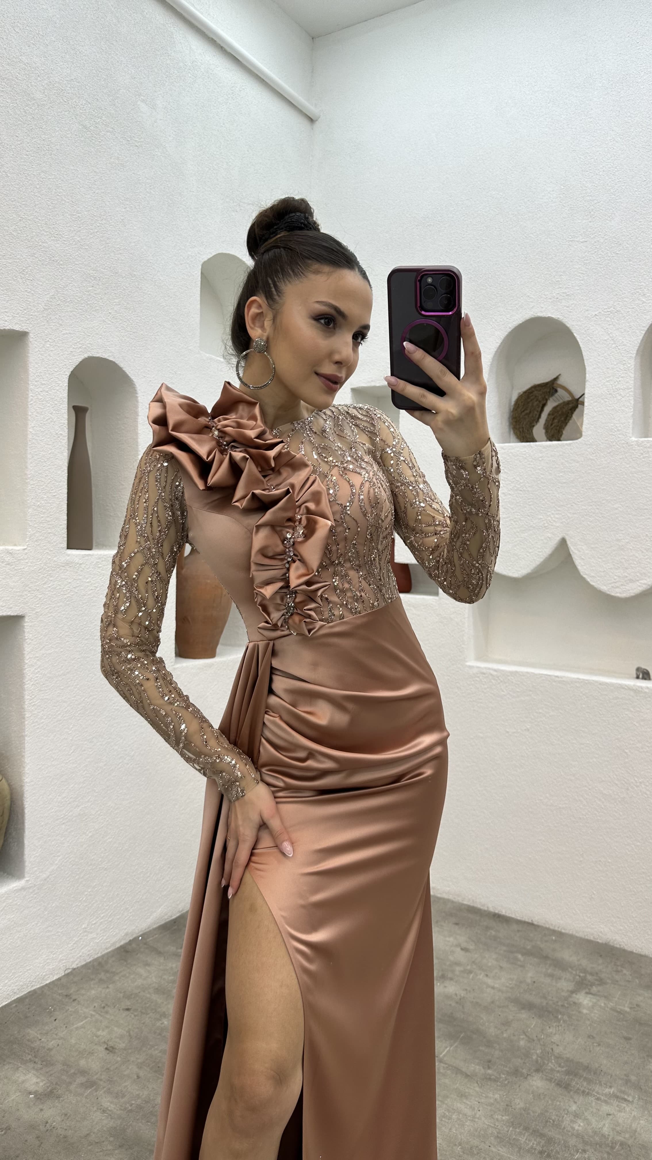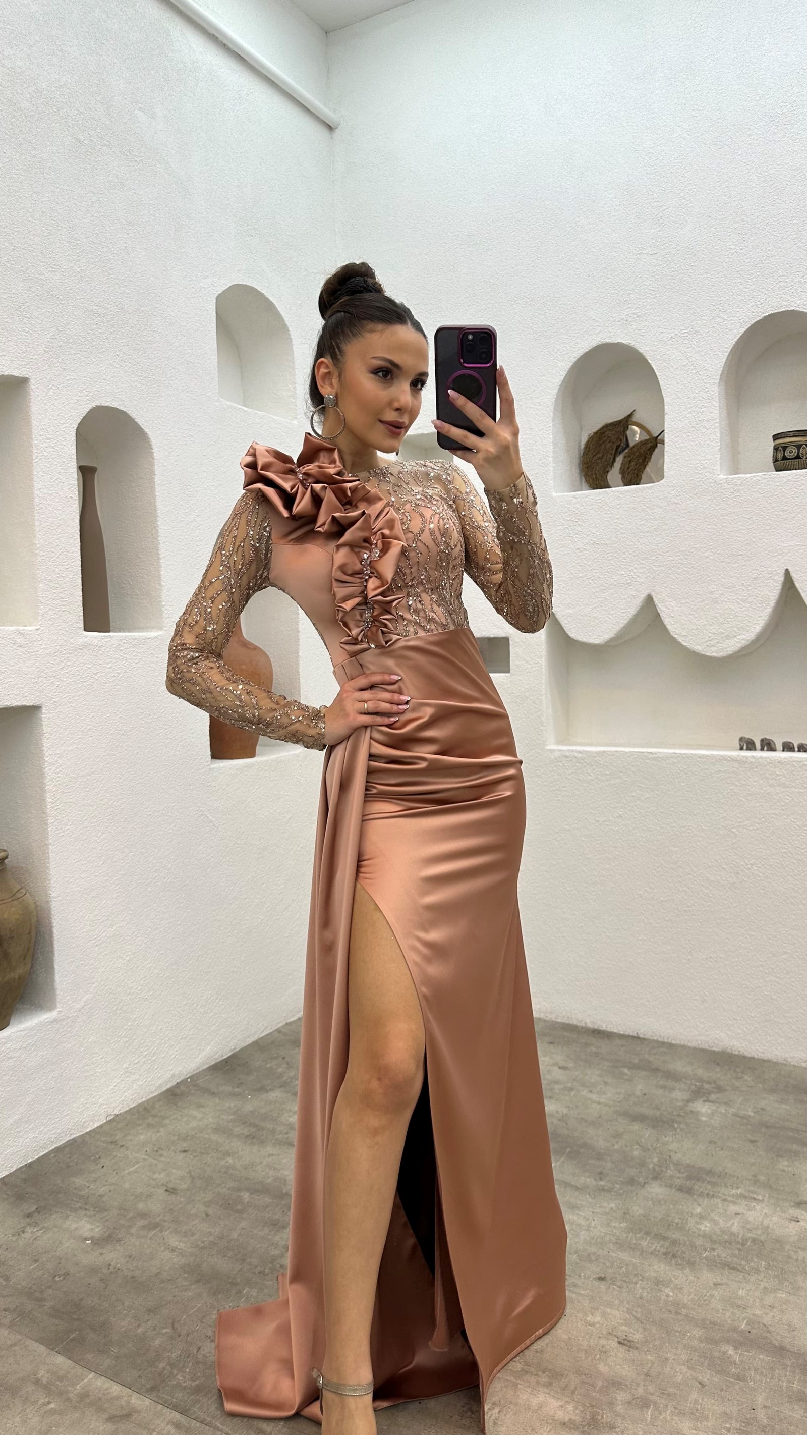 • Gül Kurusu İşlemeli Omuz Detay Abiye