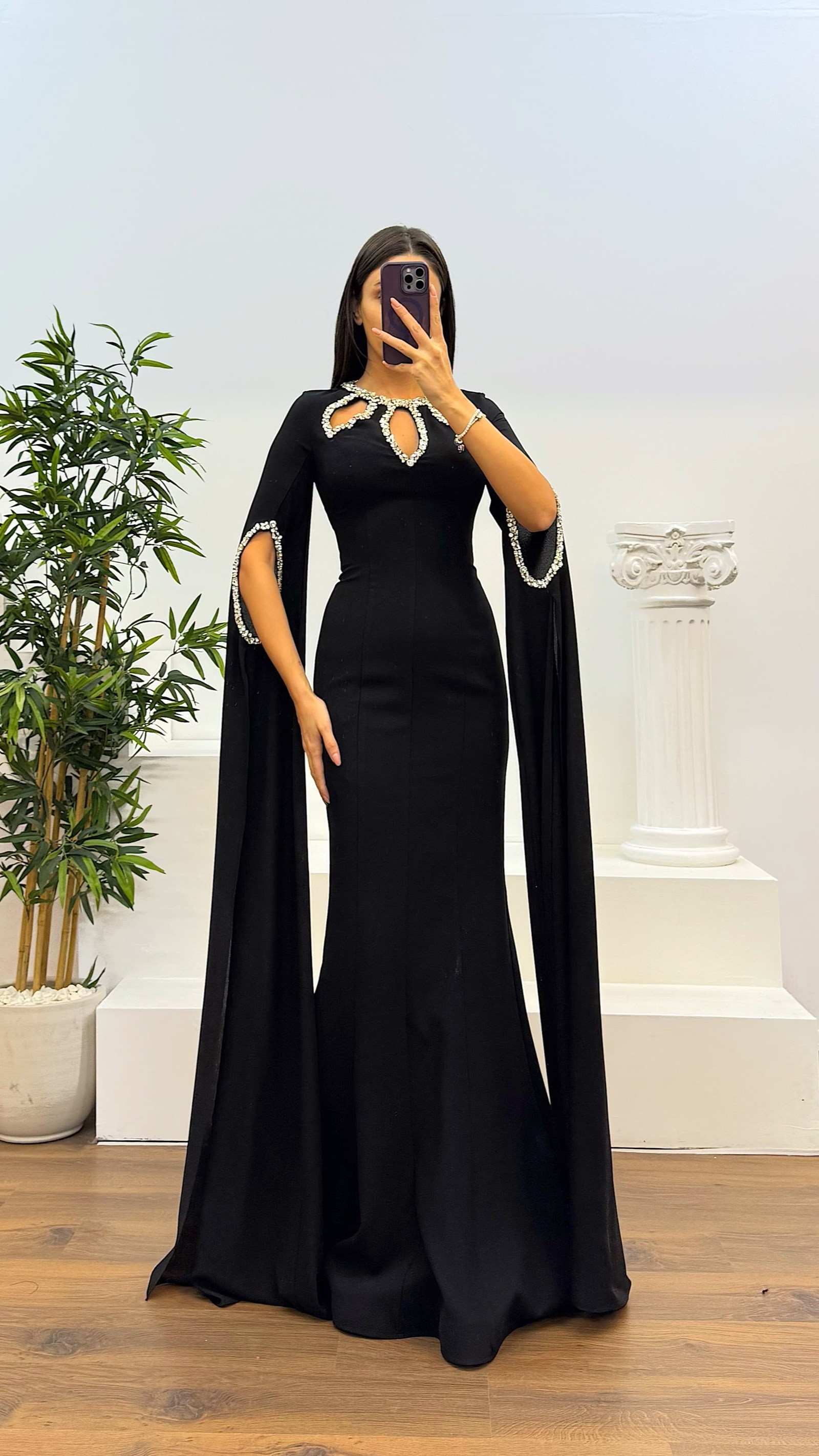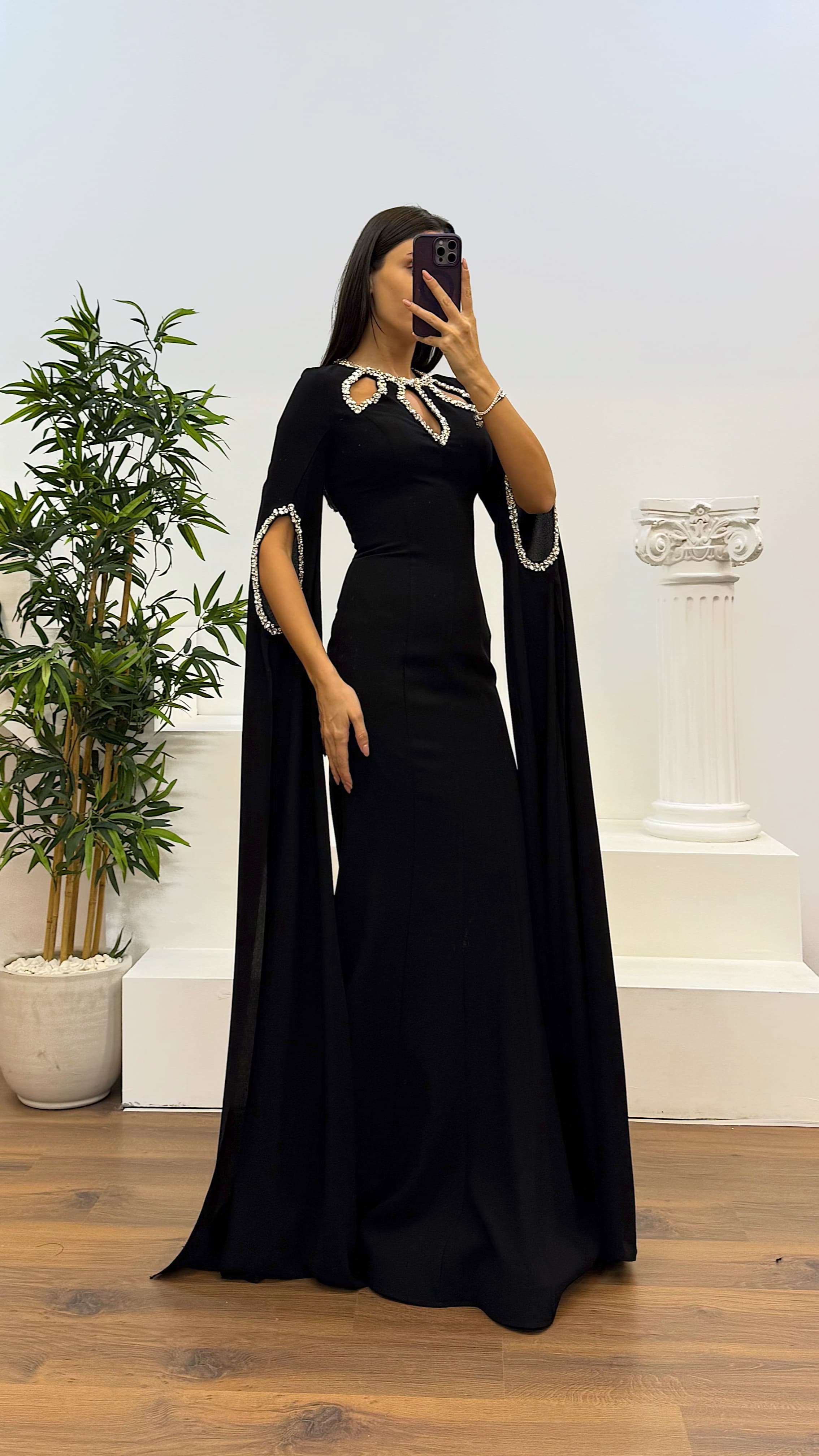 Robe de soirée avec détails en pierres Le produit est compatible avec les tailles 36 à 42, avec des coussinets intégrés, doublé, fermeture à glissière dans le dos, conçu comme une robe de soirée avec des détails en pierres. Longueur du produit : peut varier entre 165 et 170 cm. Type de tissu : 100% polyester.