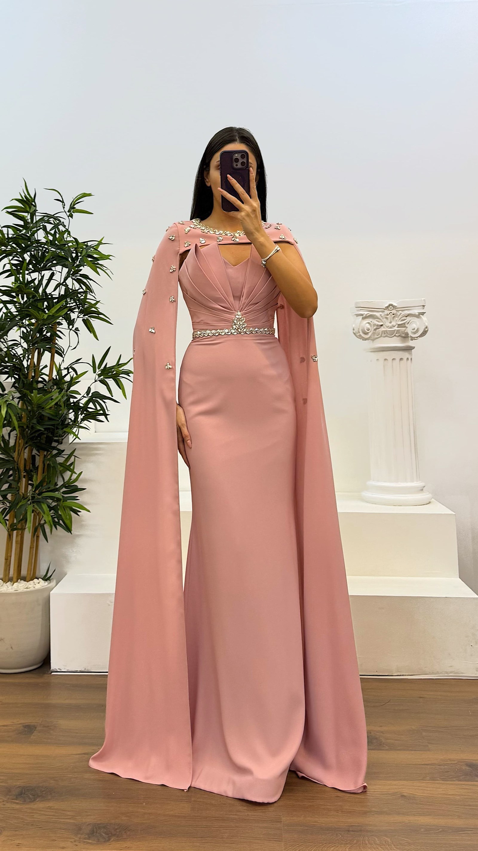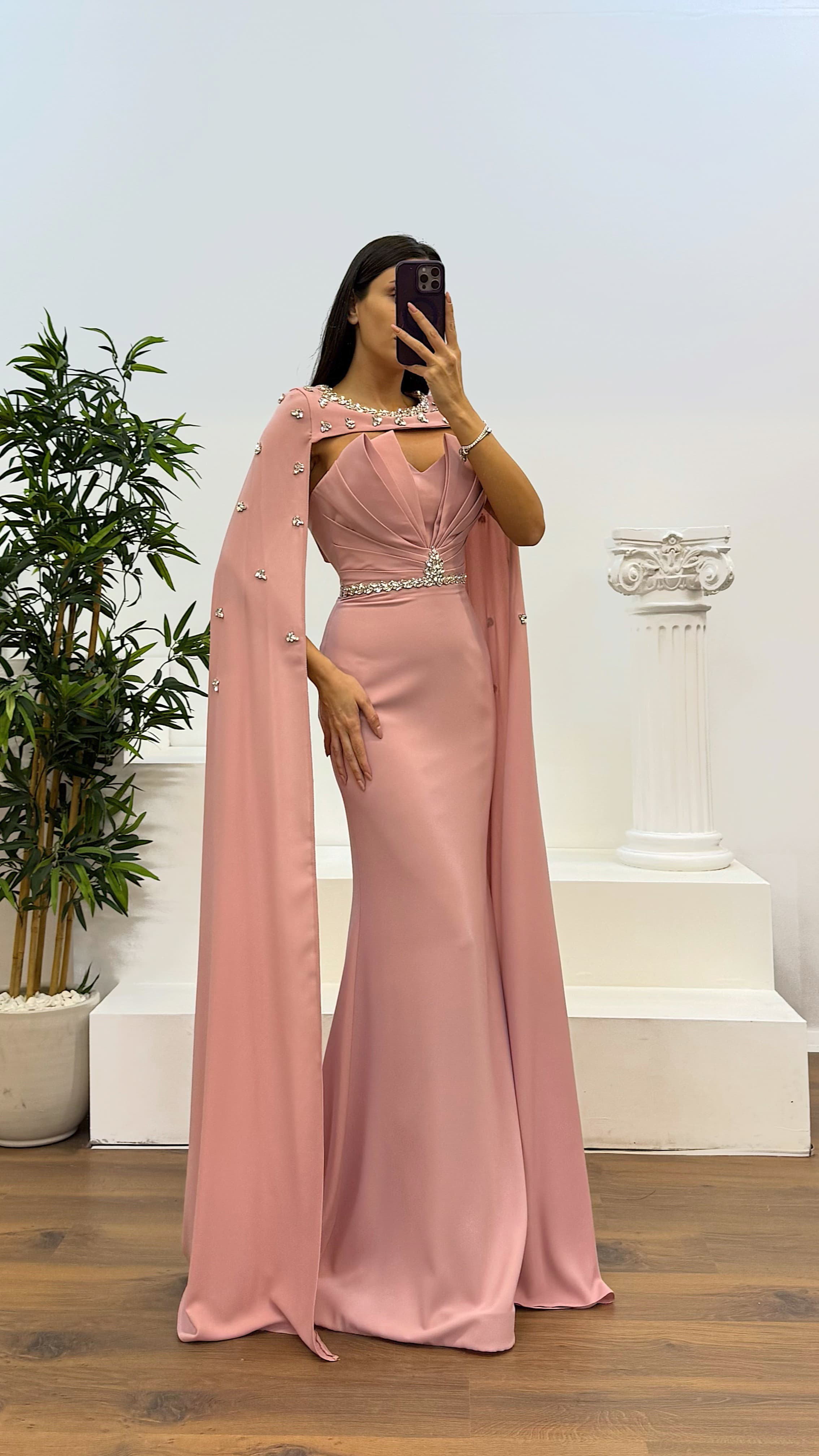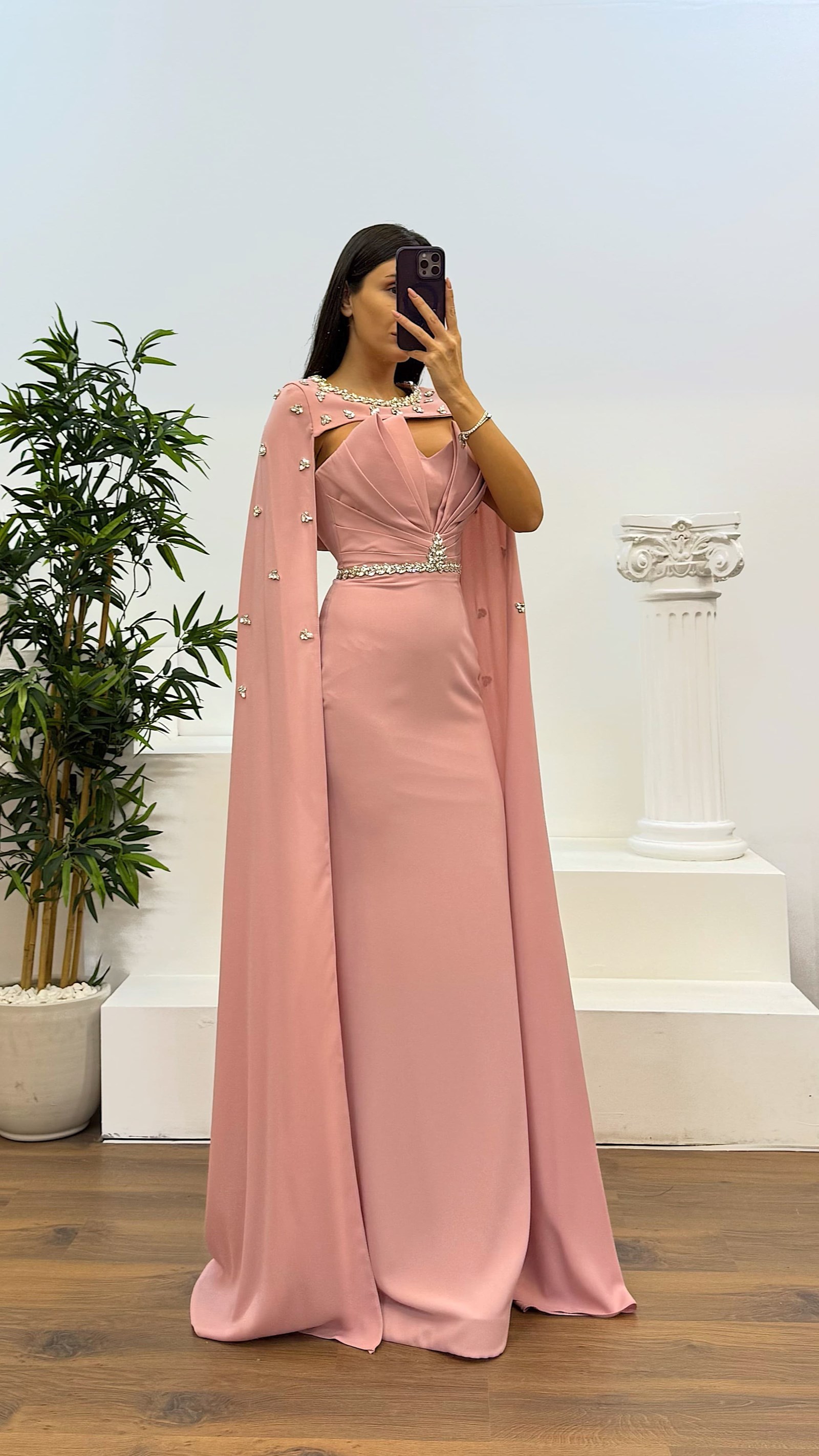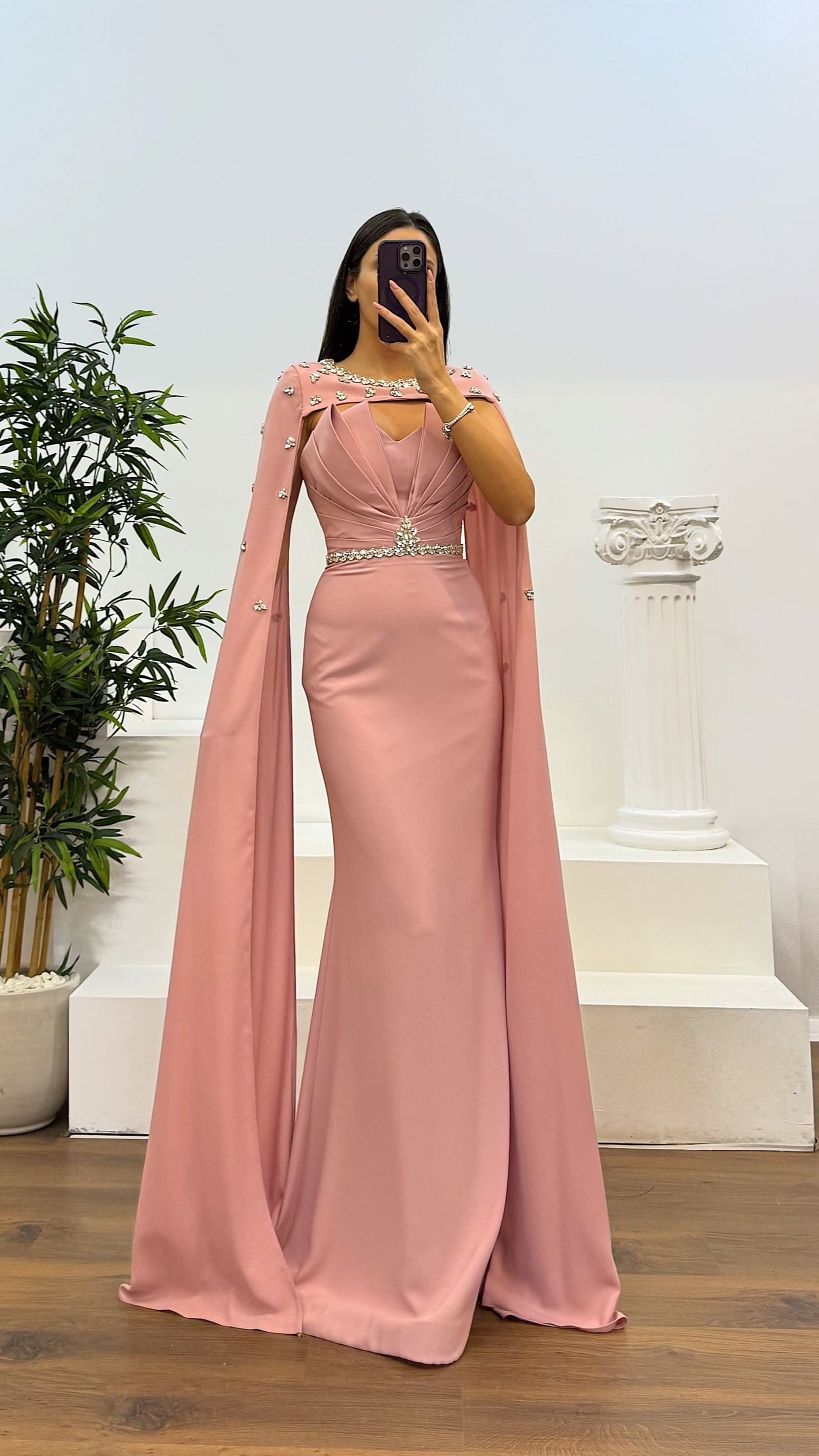 Robe de soirée avec cape et détails en pierres Le produit est compatible avec les tailles de 36 à 44, avec des coussinets de soutien-gorge, doublé, fermeture éclair à l'arrière, cape avec fermeture à bouton et conçu comme une robe de soirée avec des détails en pierres. La longueur du produit est de 160 cm. Type de tissu : 100 % polyester.