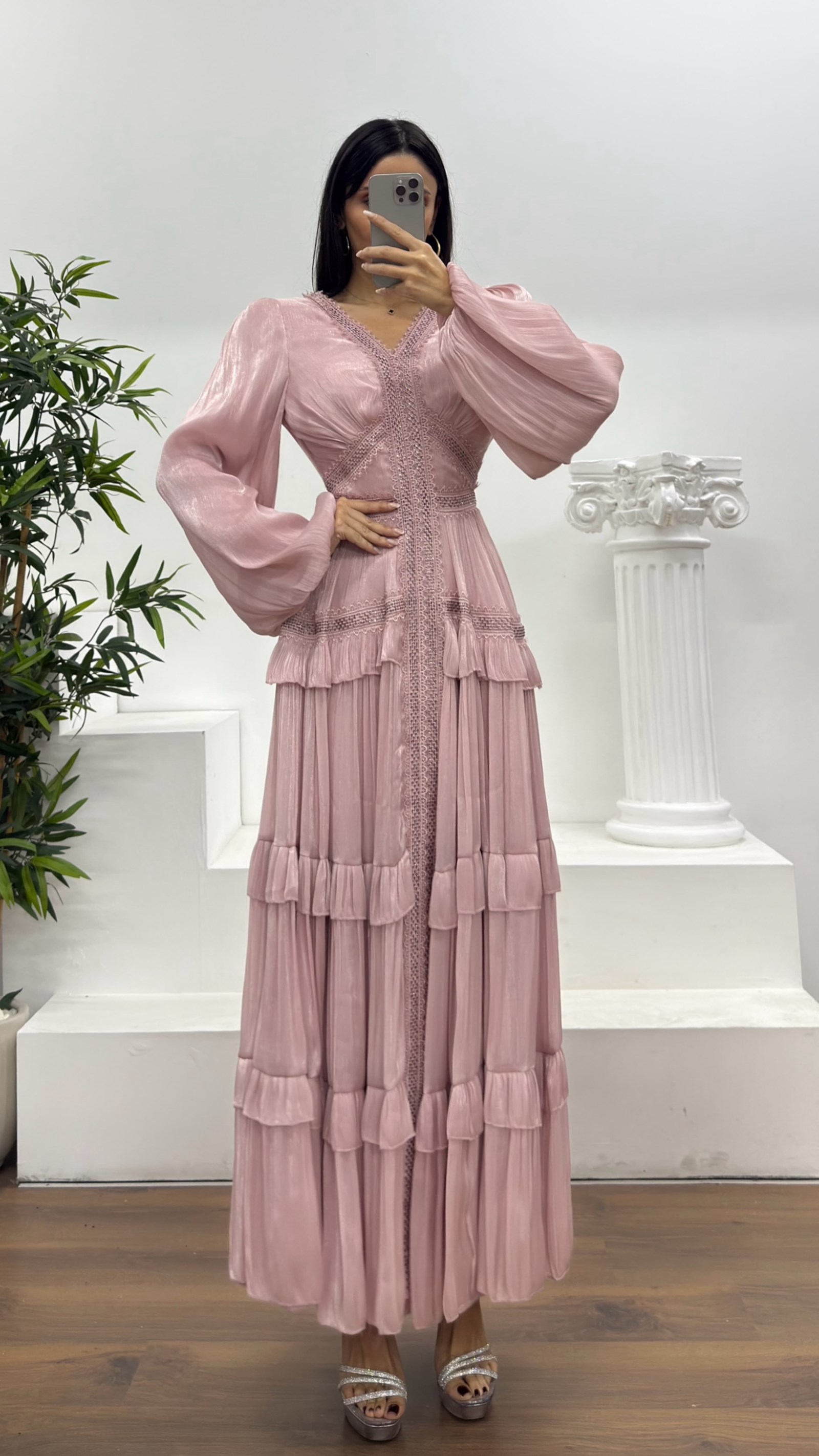 • Kiremit Kat Kat Şifon Abiye Elbise
