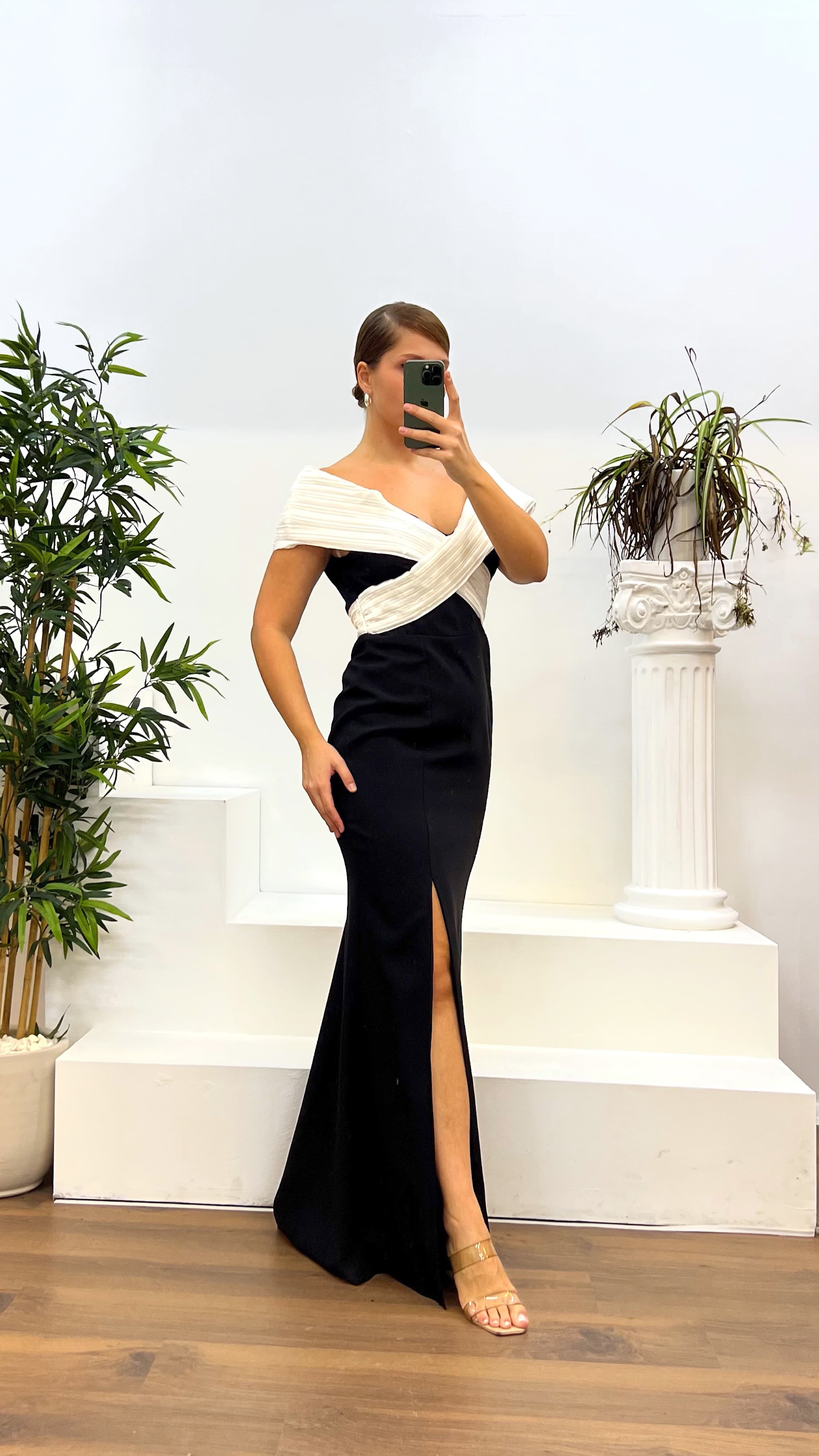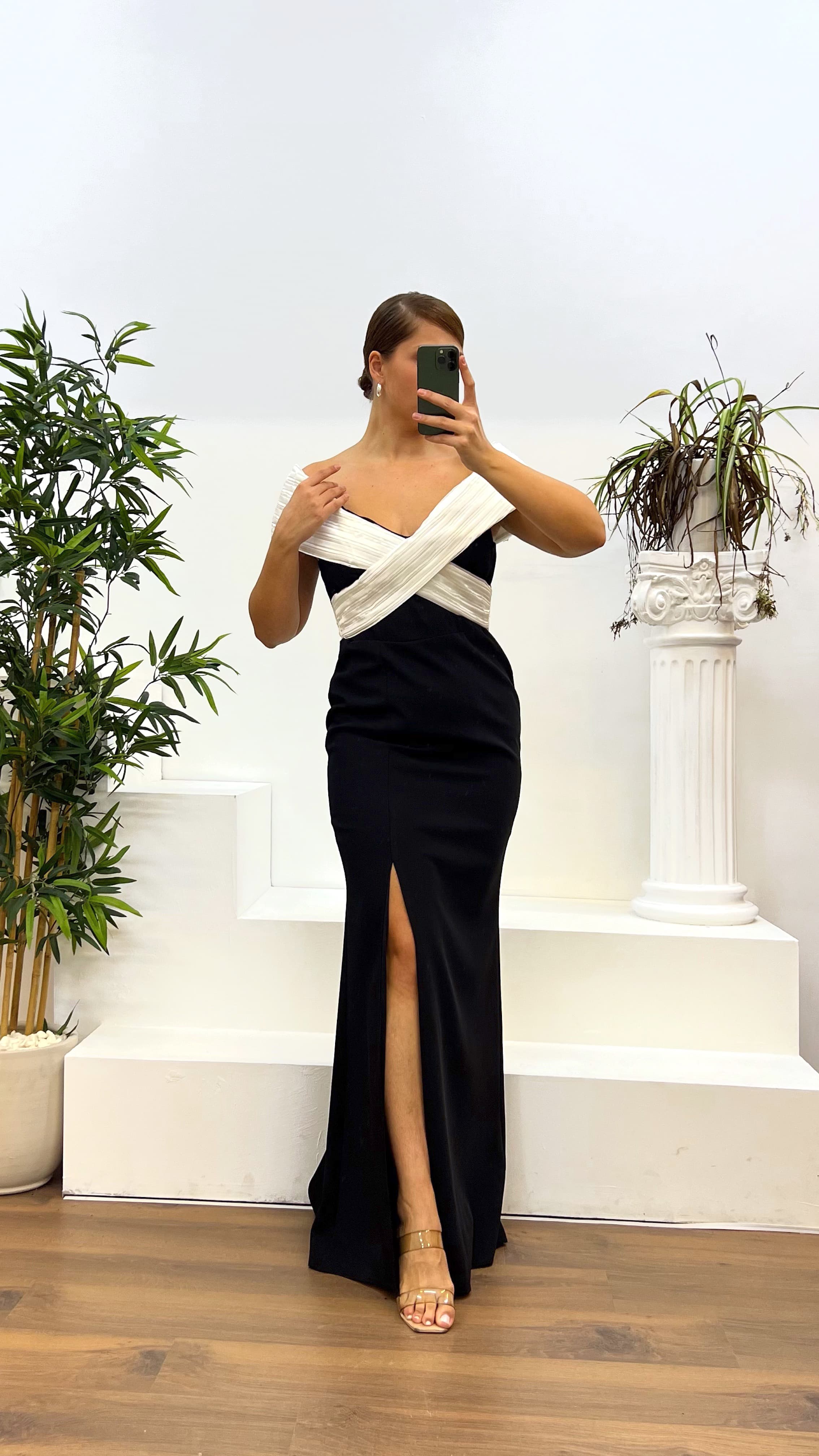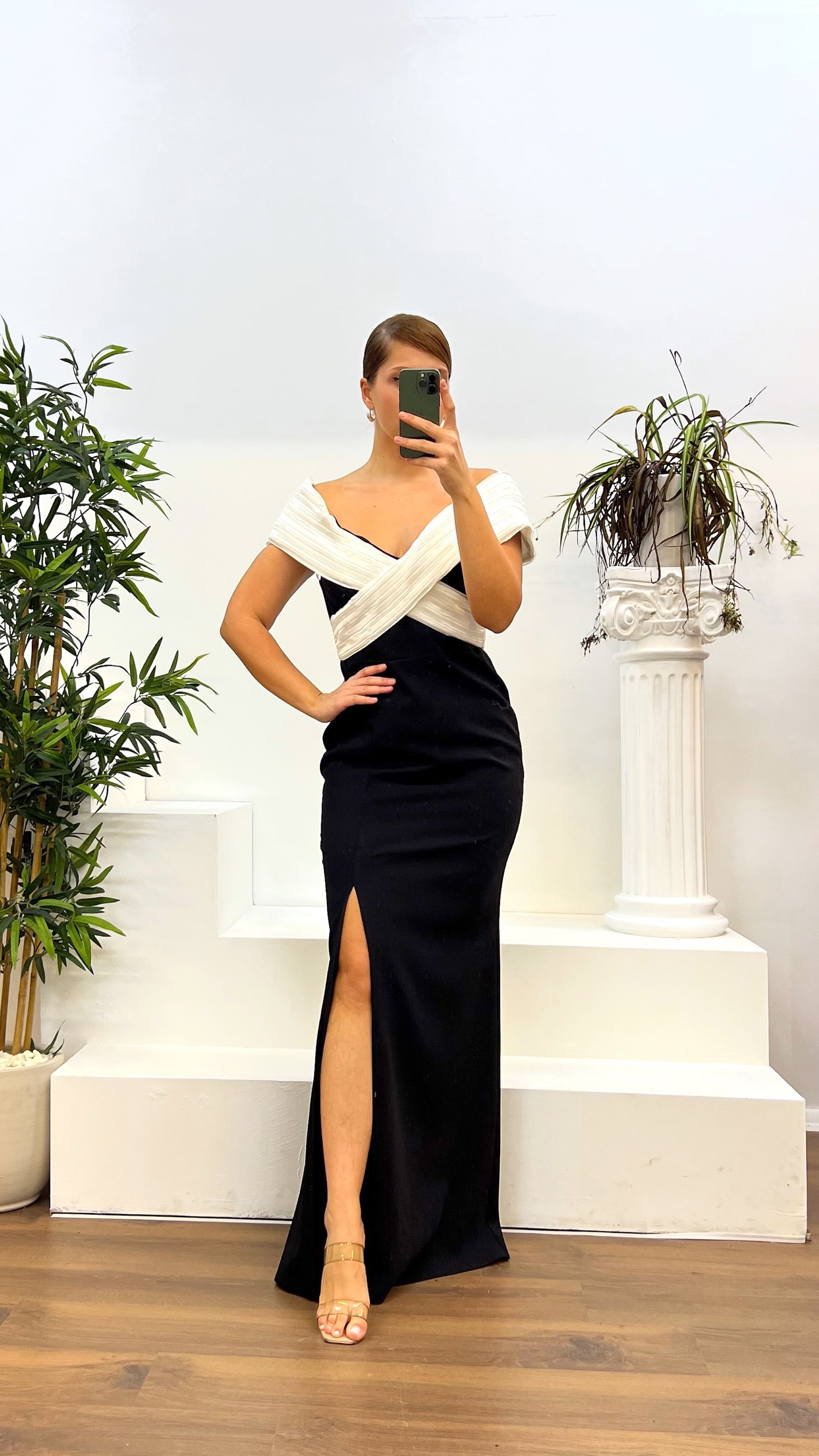 • Beyaz Yaka Detay Büyük Beden Abiye Elbise