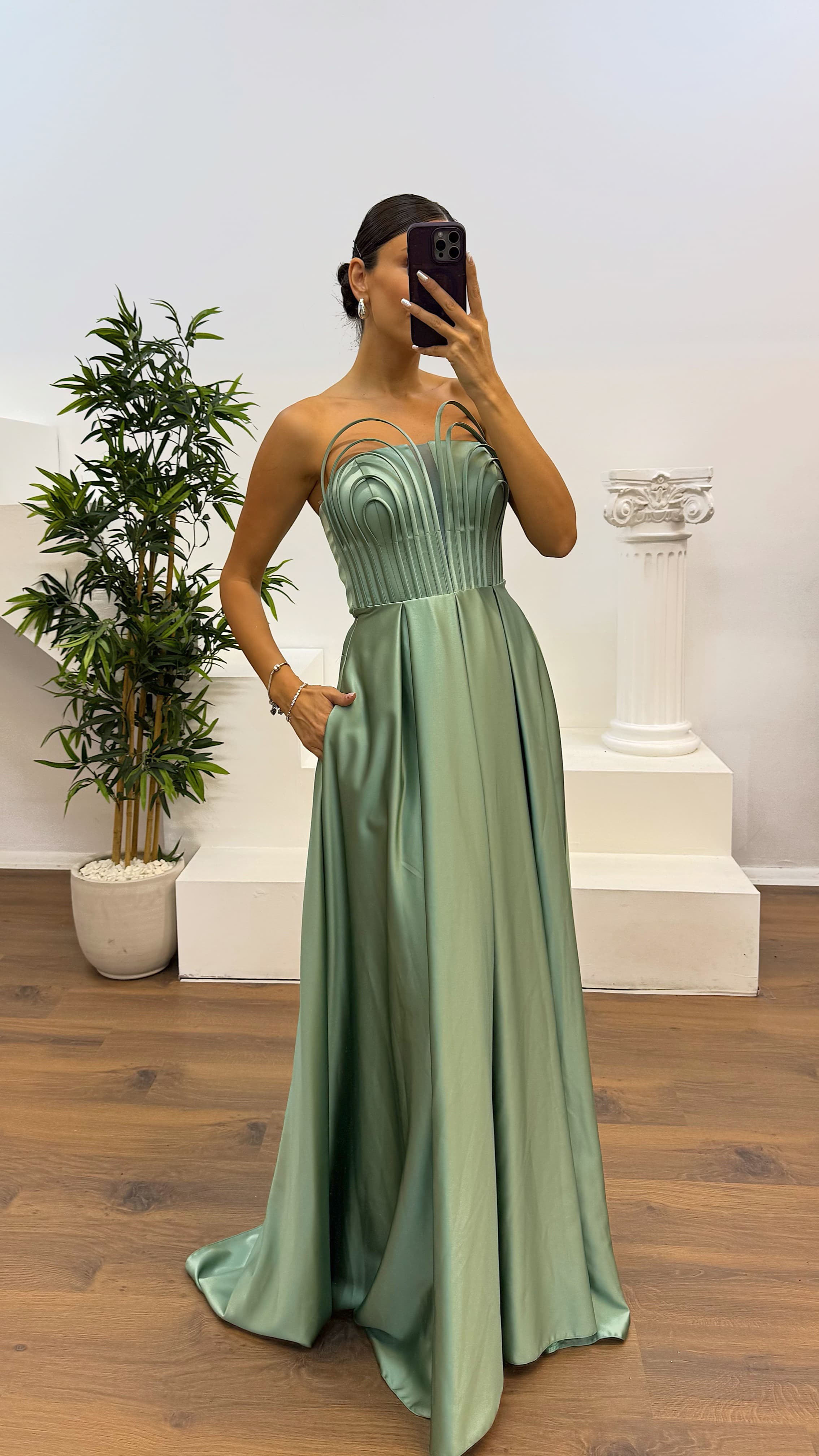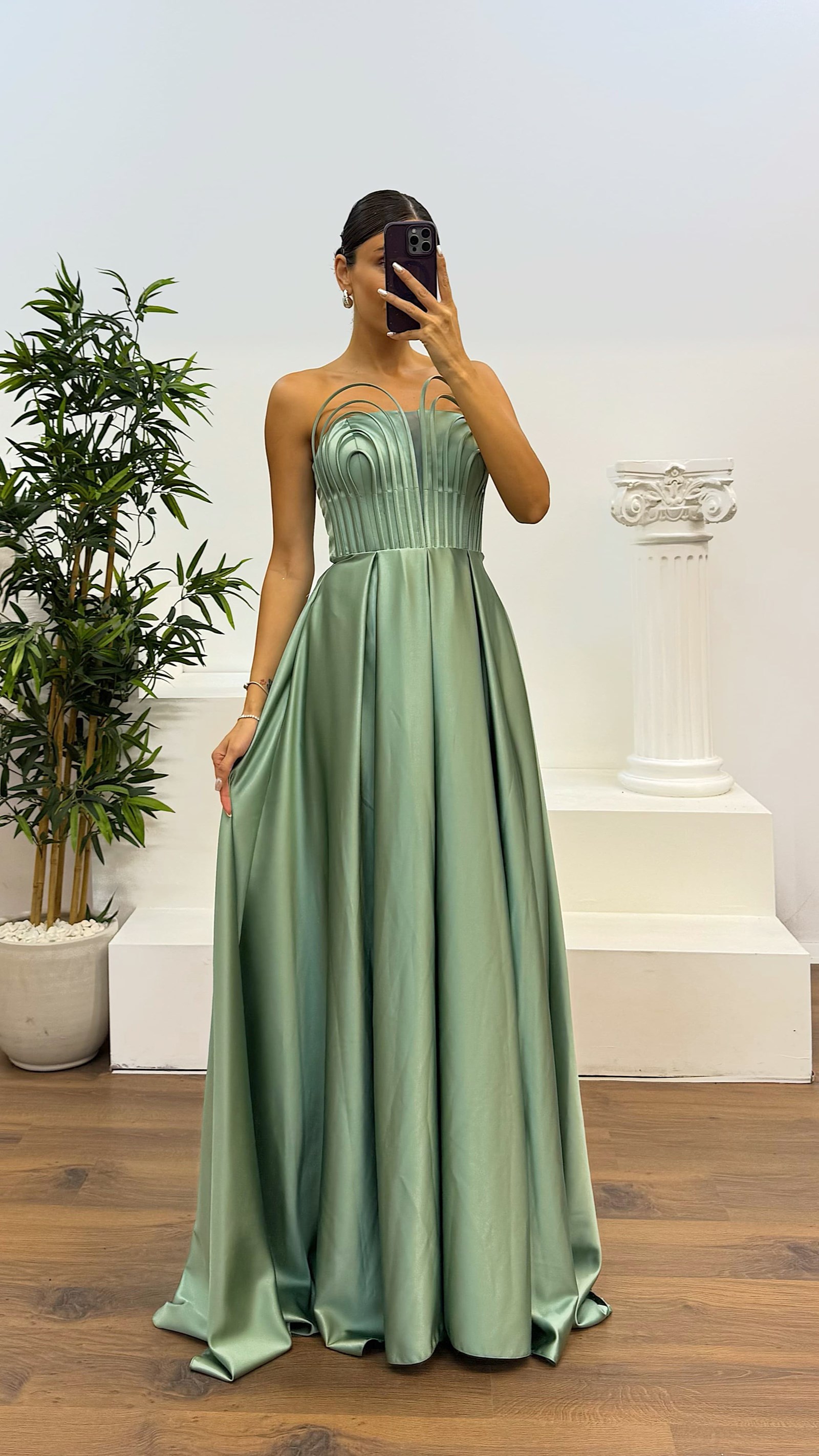 • Çağla Straplez Göğüs Detay Abiye Elbise