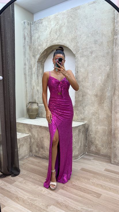 Fuchsıa Fuchsıa Rope Cıntura Campo Desıgn Abito Da Paillettes
