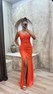 • Kırmızı İp Askılı Göğsü Fiyonk Payet Elbise
