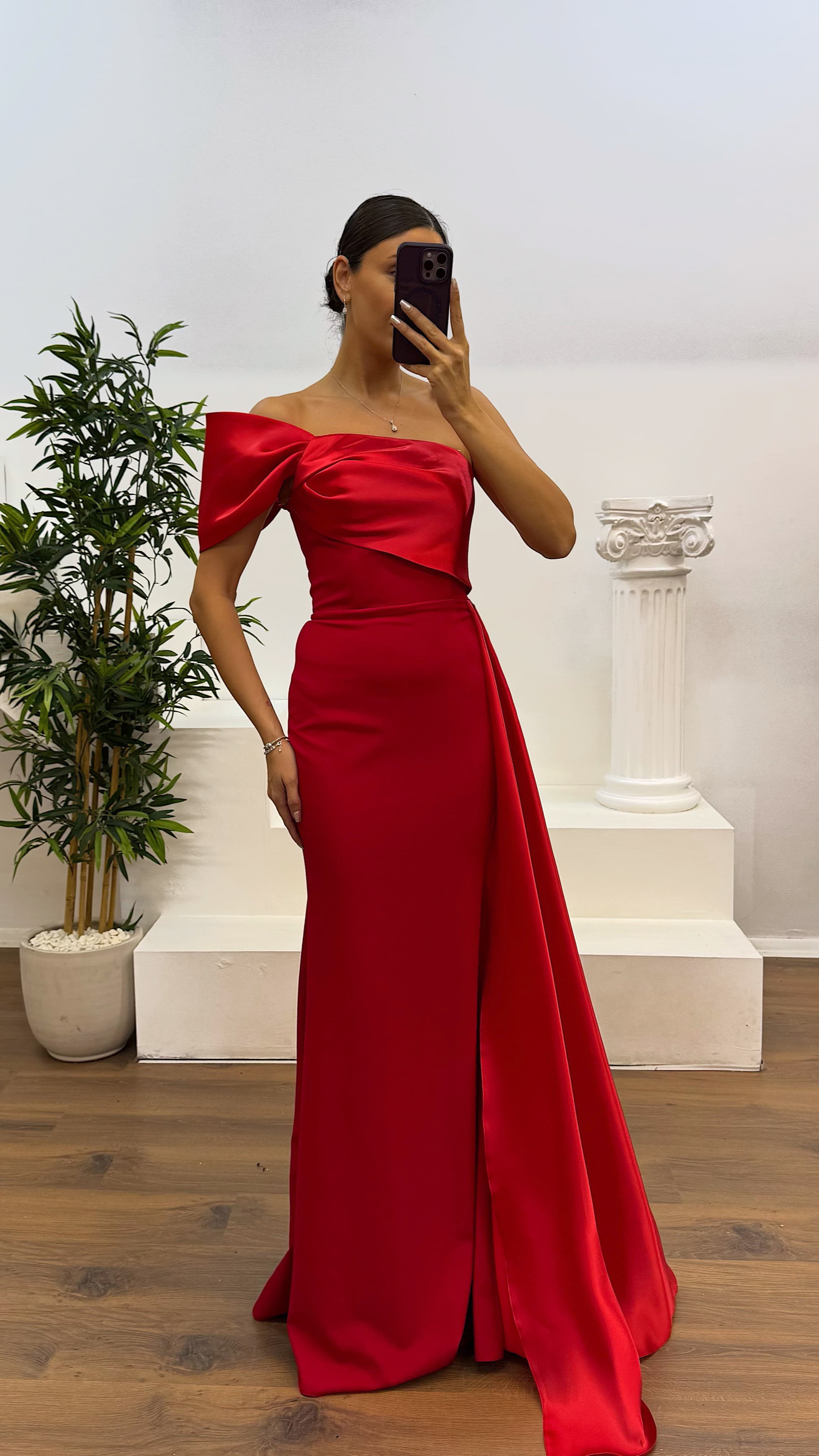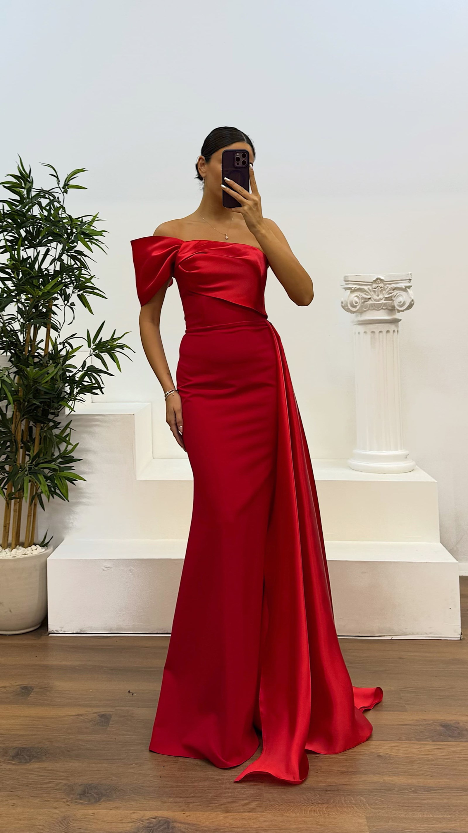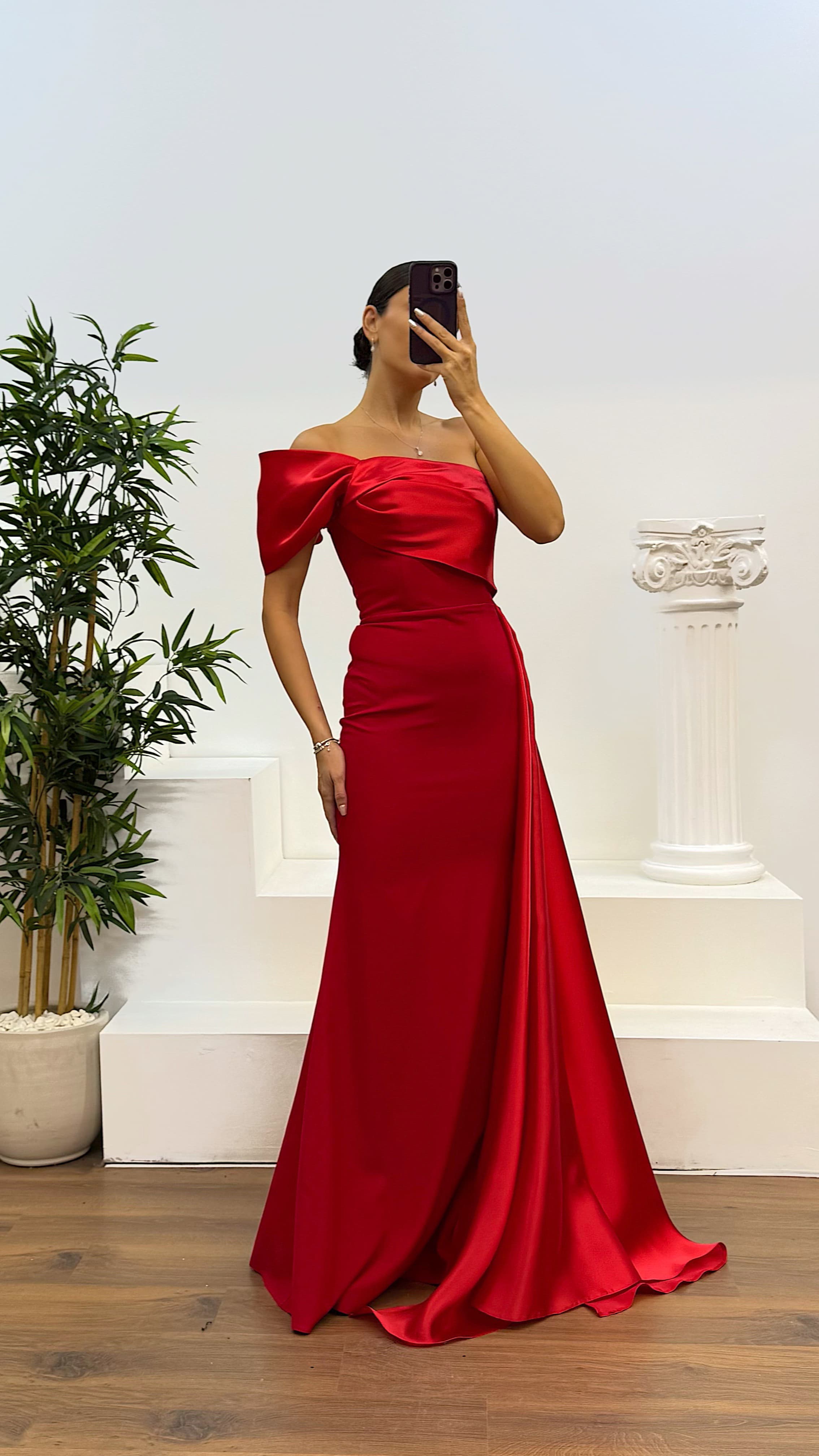 Abito da sera con dettaglio in satin su una spalla Il prodotto è compatibile con le taglie dalla 36 alla 42, con imbottitura nel busto, foderato, con chiusura a zip sul retro, e progettato come un abito da sera a una spalla. Lunghezza del prodotto: può variare tra 170 e 175 cm. Tipo di tessuto: Atlas 100% poliestere - satin poliestere, viscosa.