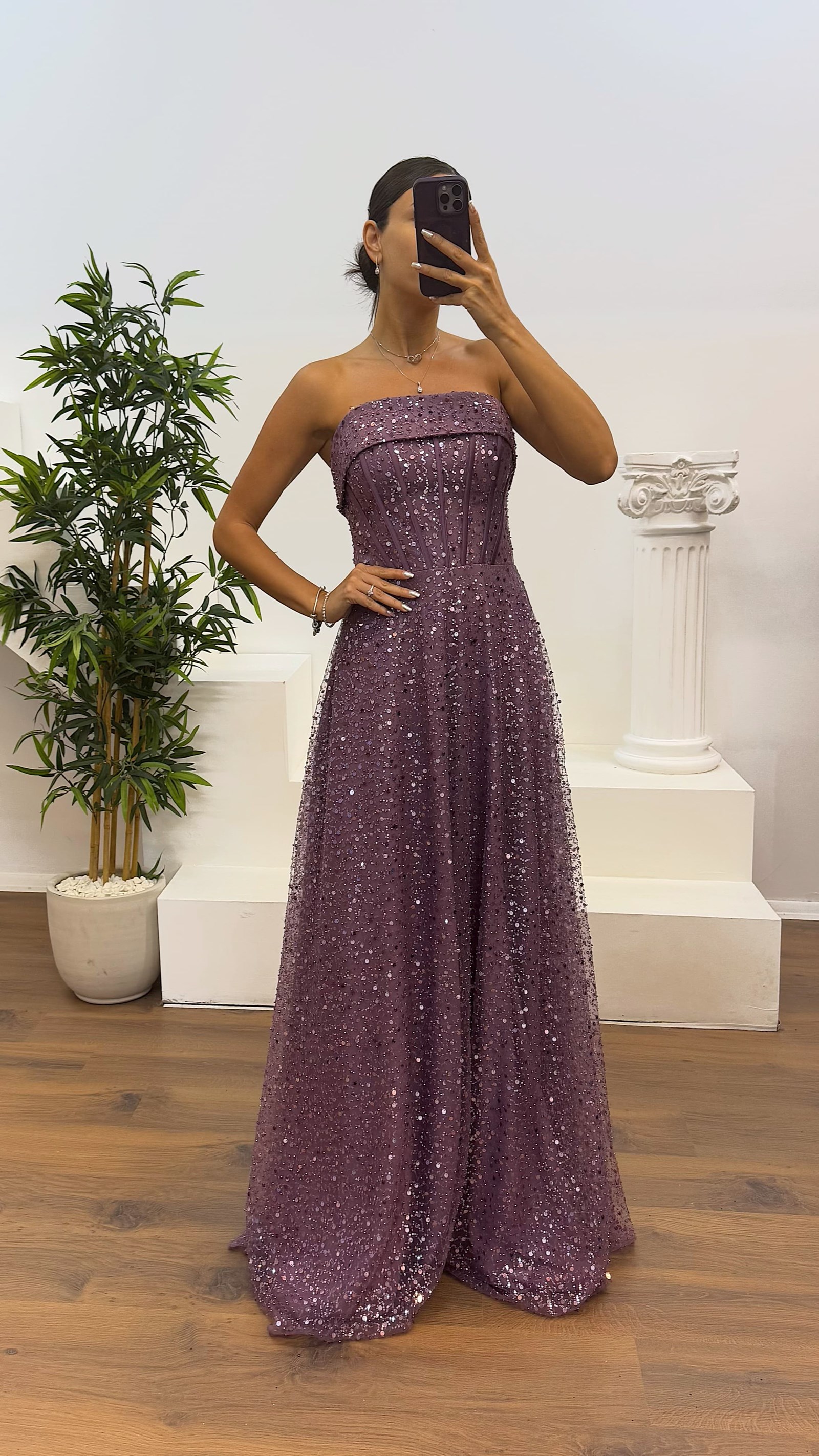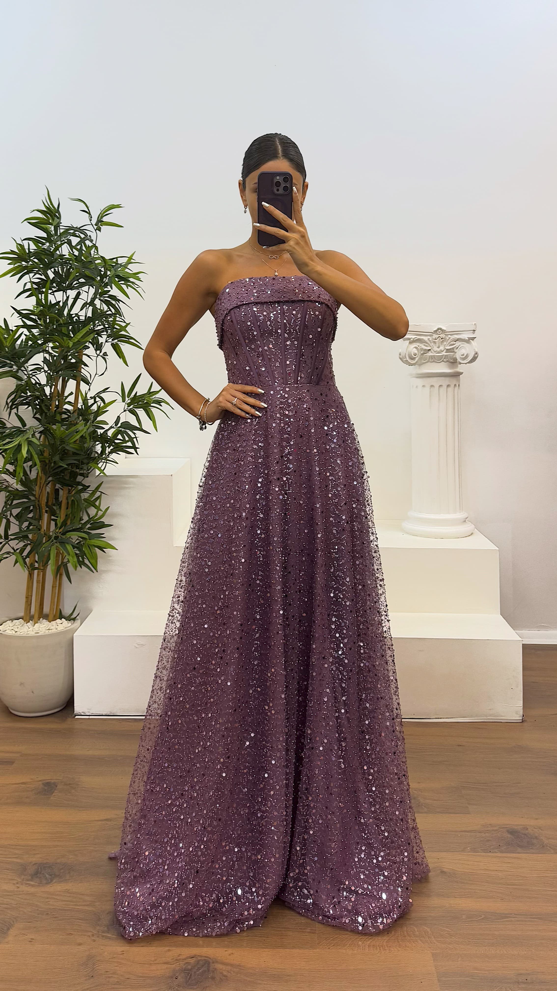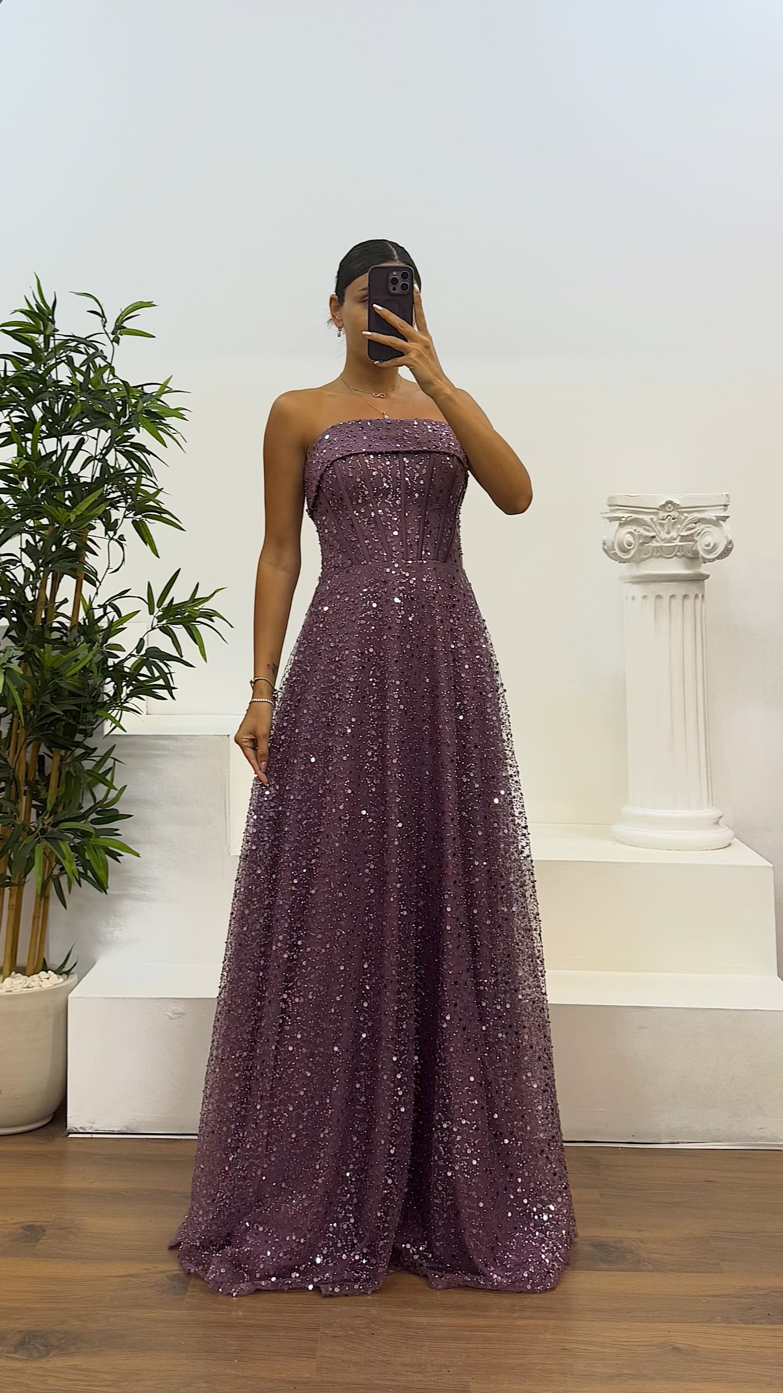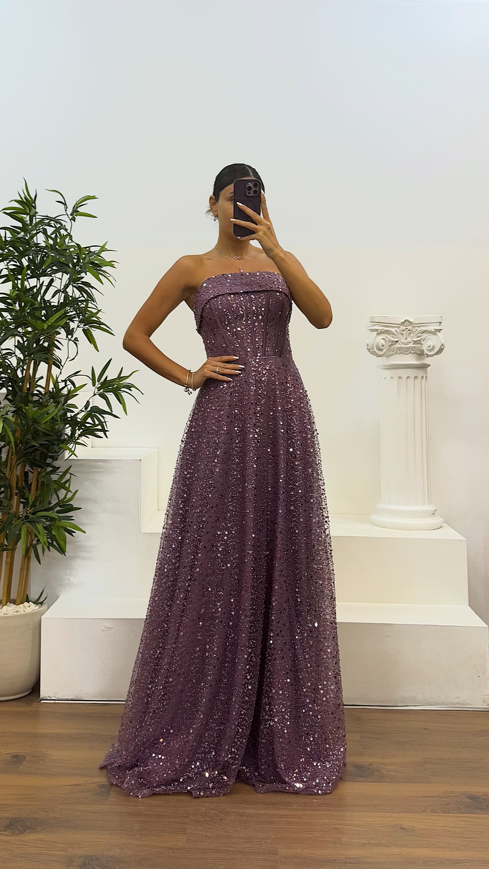 Abito da sera senza spalline con perline Il prodotto è progettato per adattarsi alle taglie dalla 36 alla 42, con imbottitura per il seno, foderato, con spalline incrociate e chiusura con cerniera sul retro, decorato con perline. Lunghezza del prodotto: 160 cm. Tipo di tessuto: tulle 3% lycra, 97% poliestere