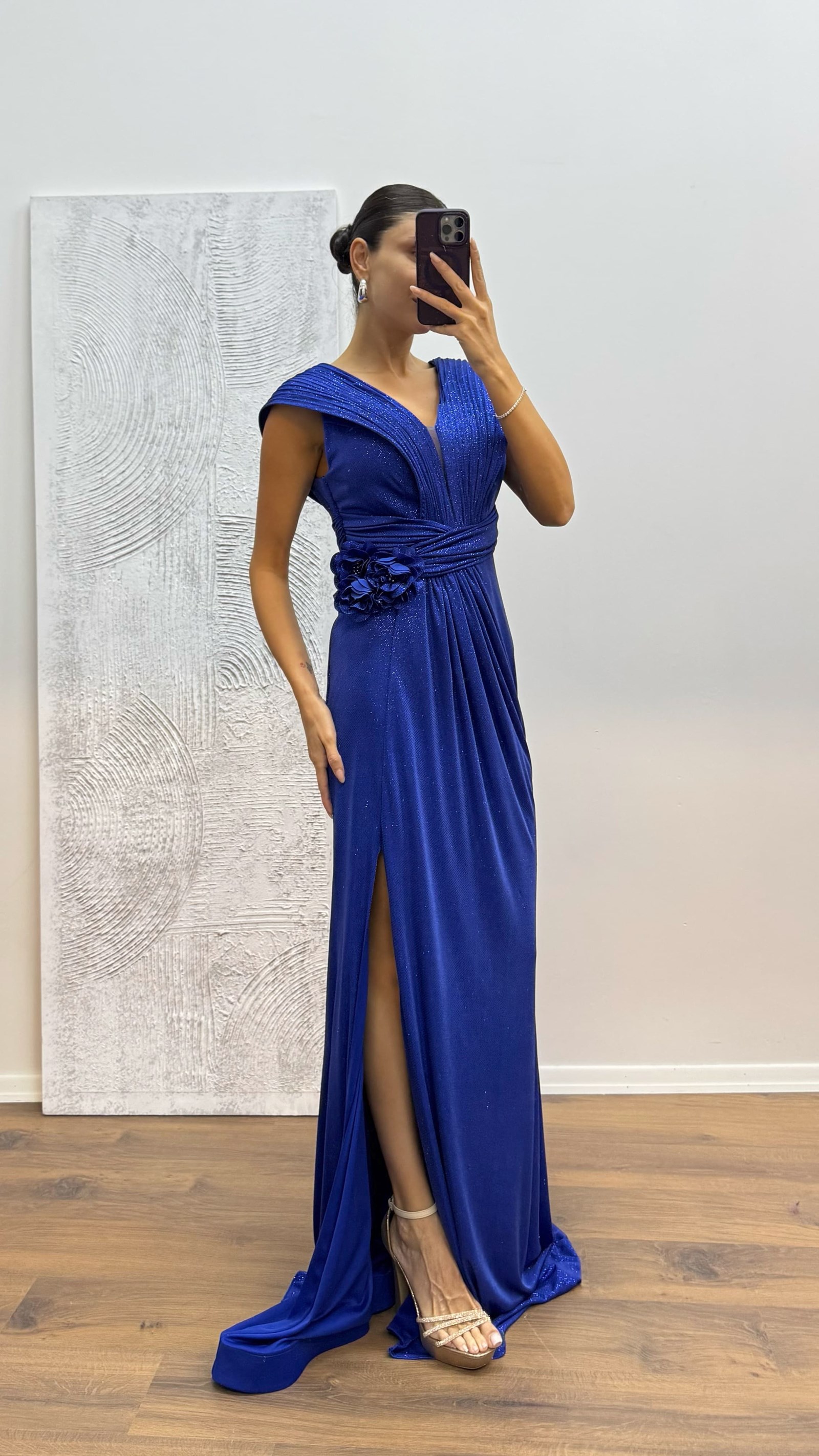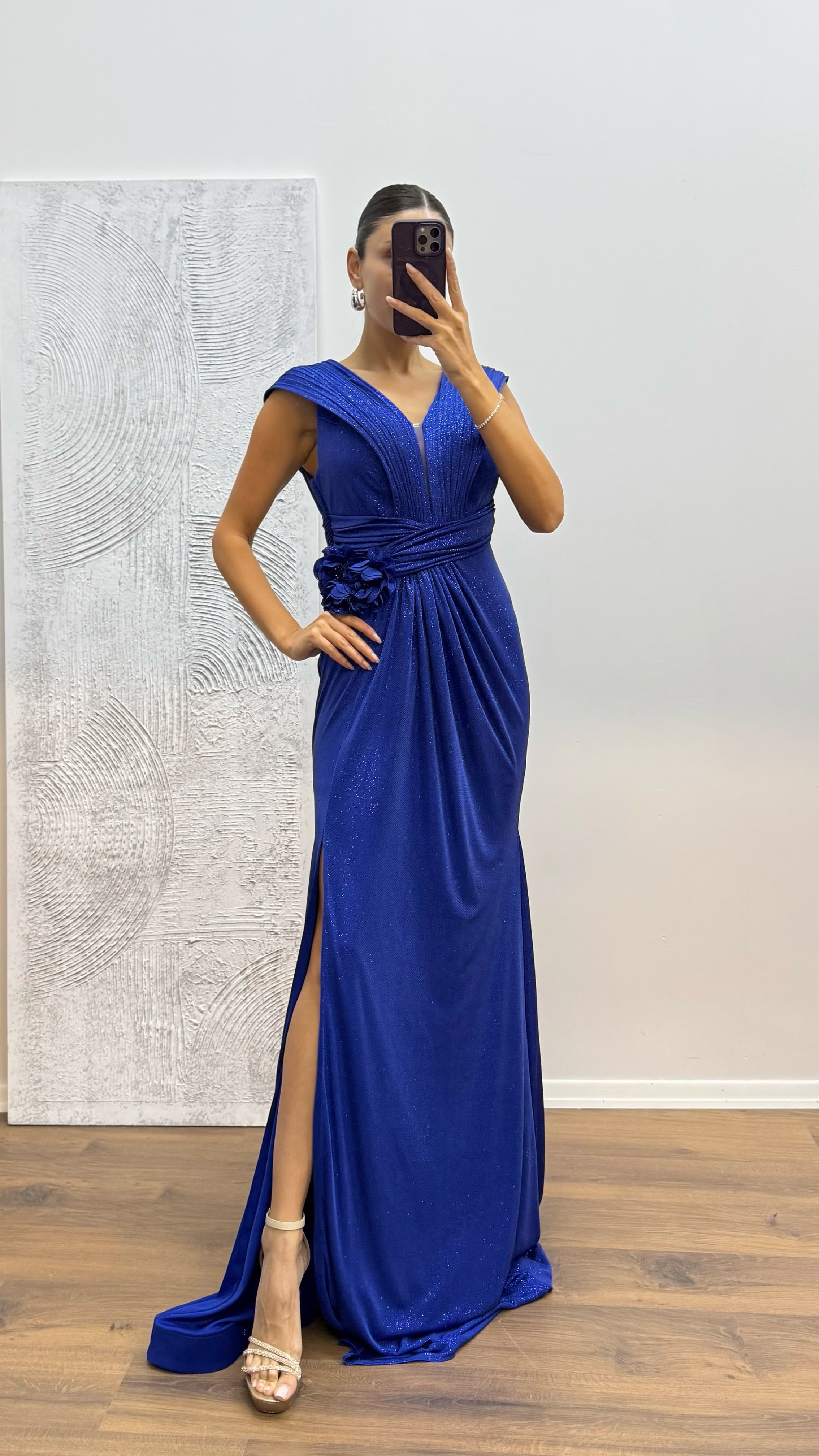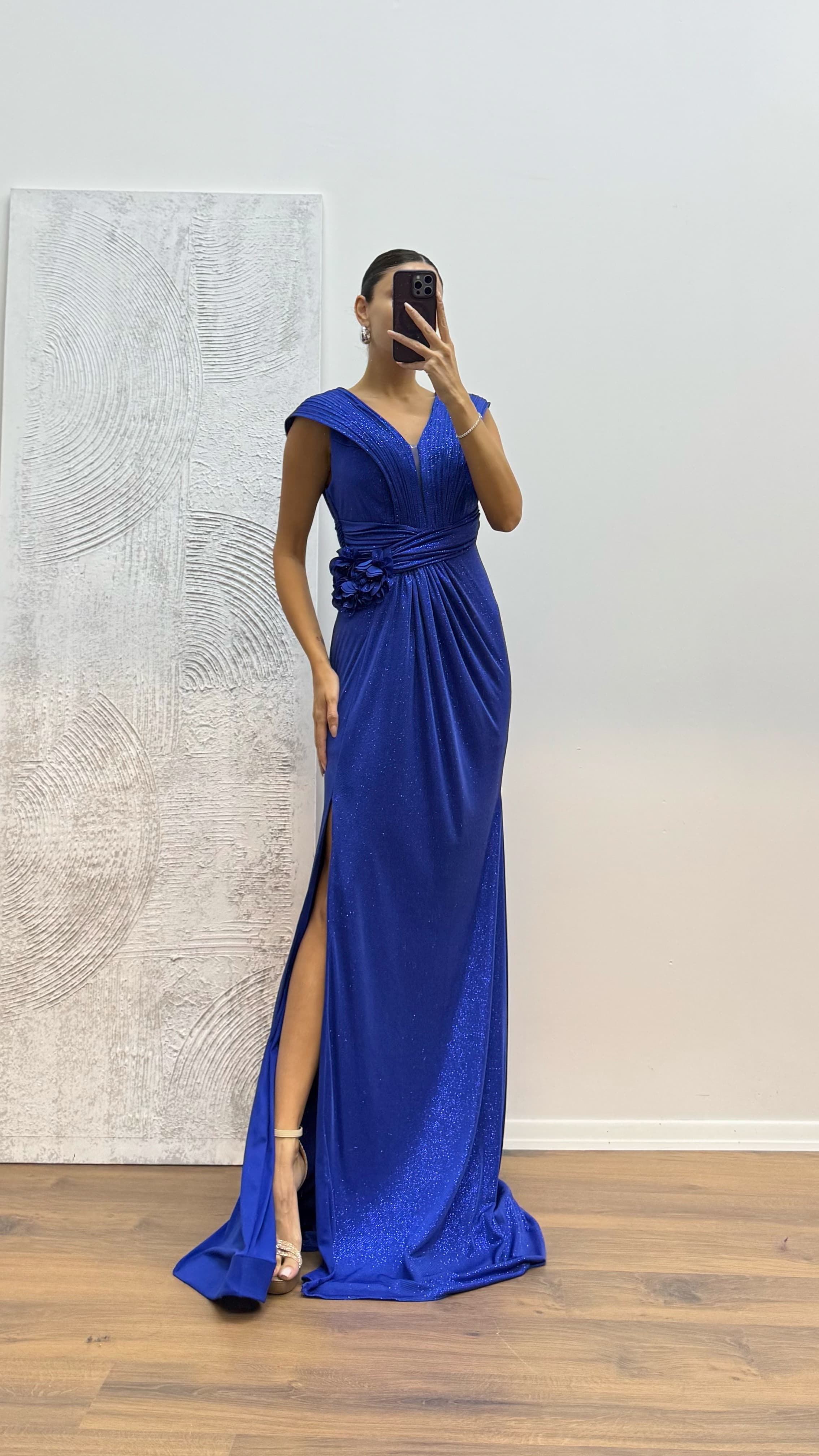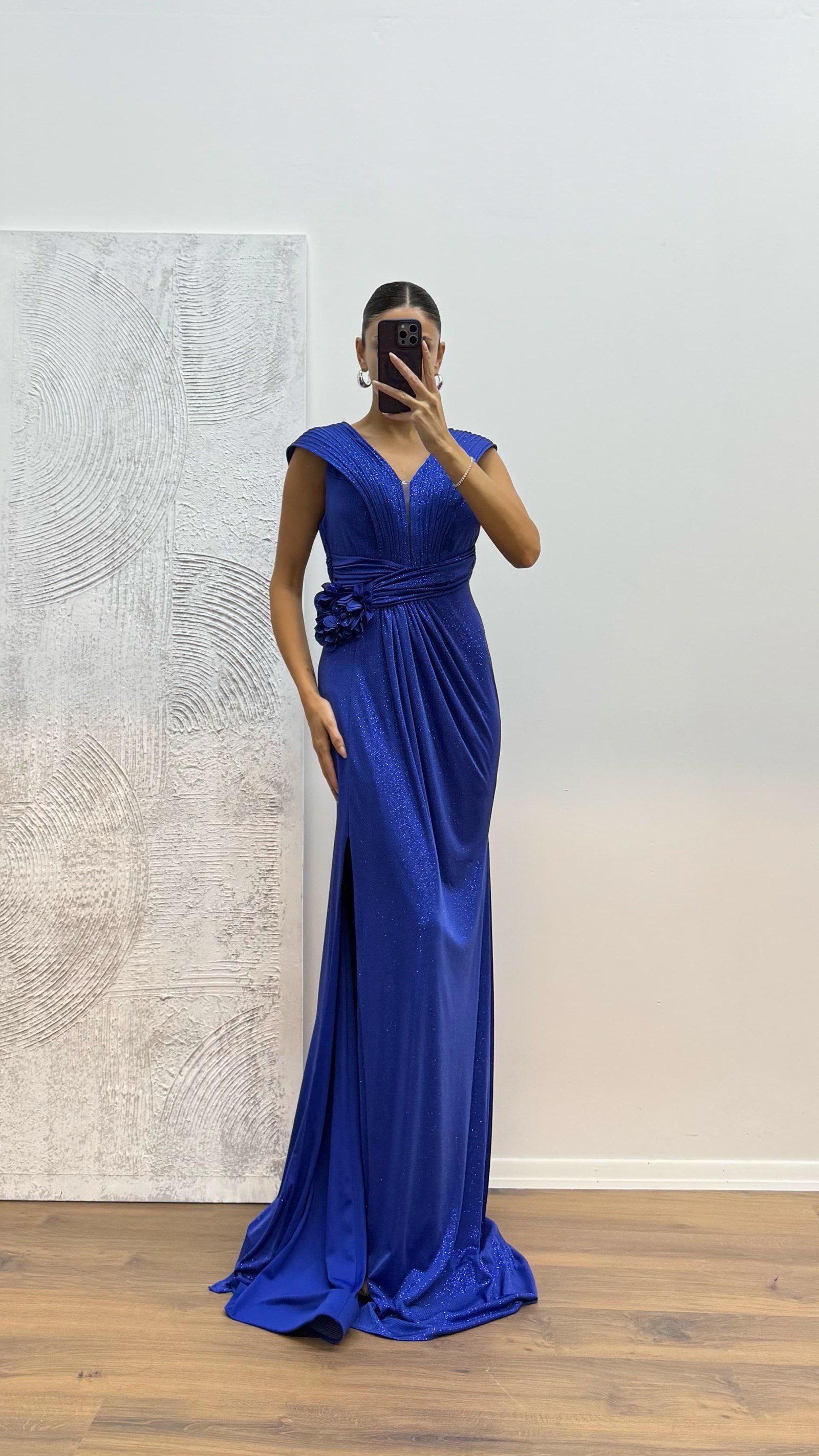 Abito da sera con spalline e glitter Il prodotto è compatibile con le taglie dalla 36 alla 42, con imbottitura per il seno, foderato, chiusura con cerniera sul retro, spacco e dettagli floreali. La lunghezza dell'abito può variare tra i 165 e i 170 cm. Tipo di tessuto: Tessuto glitterato.