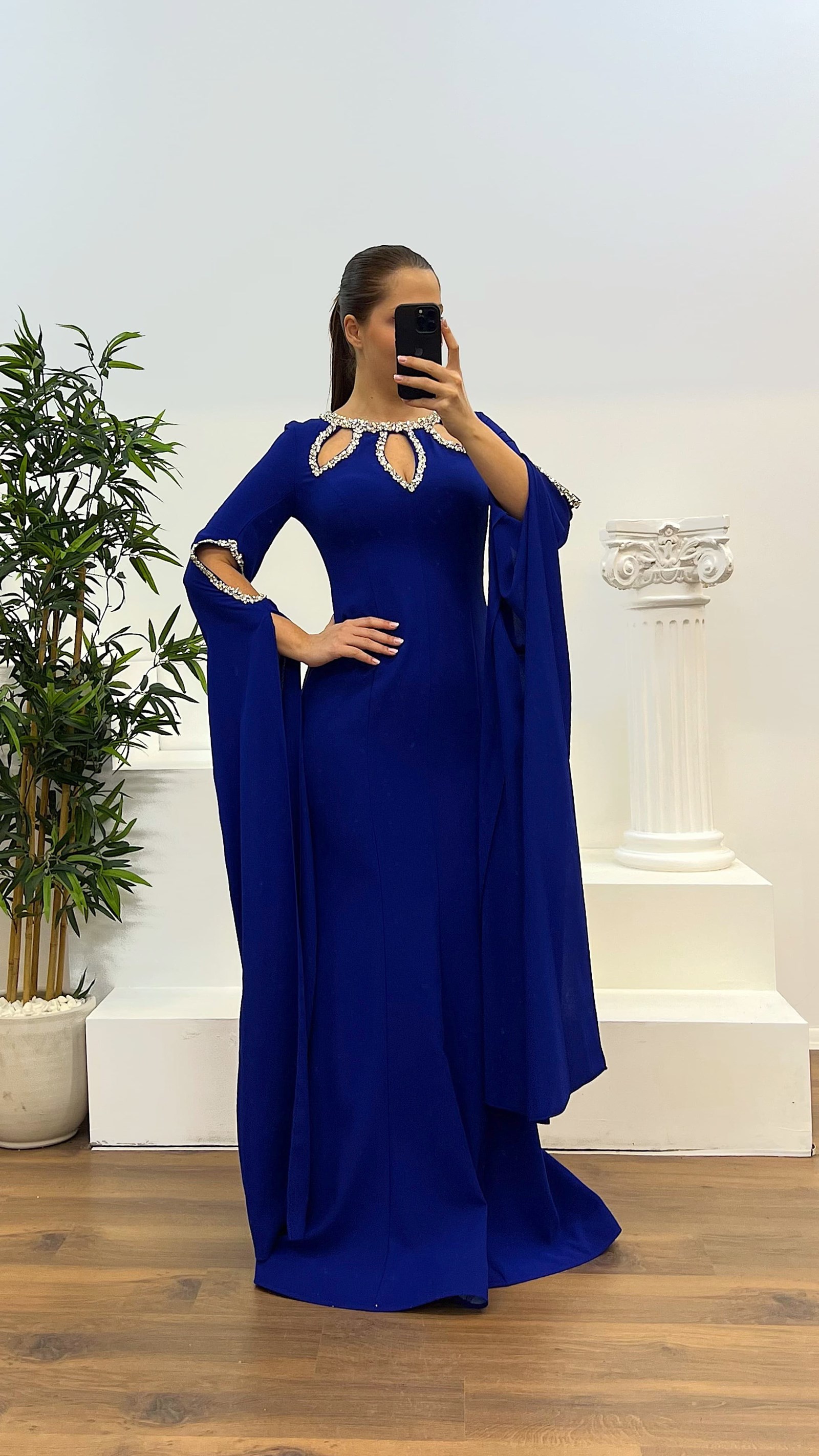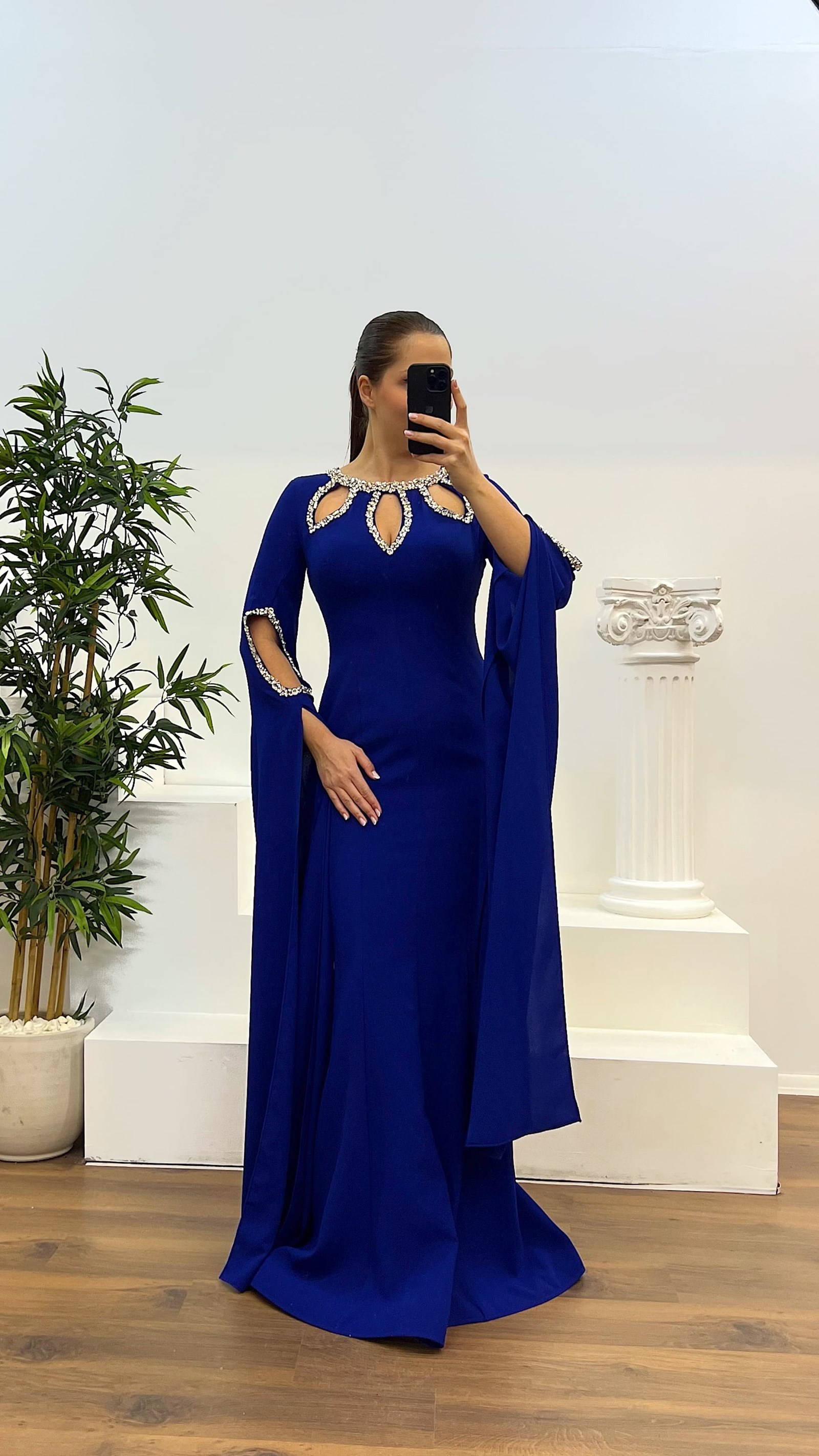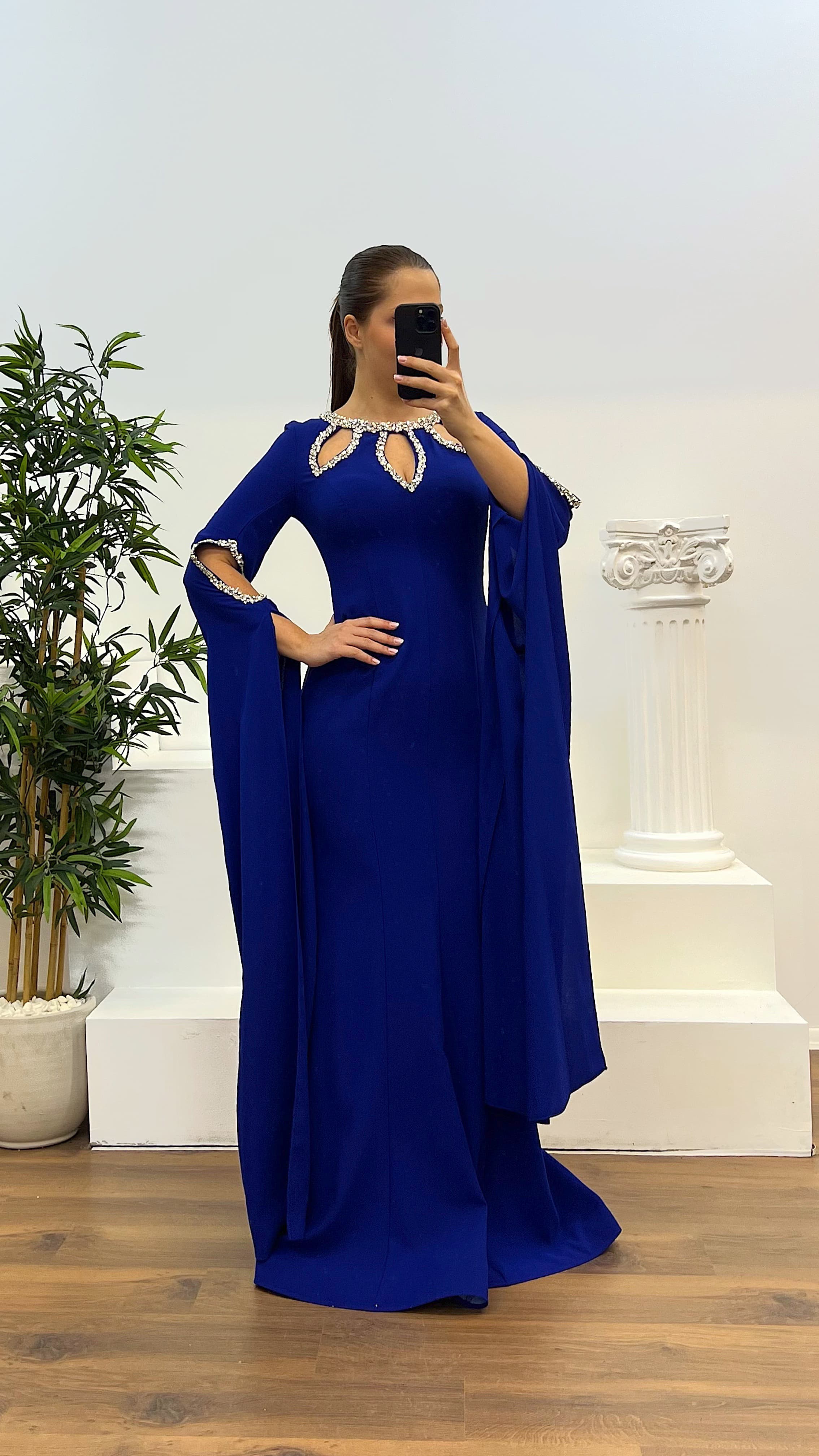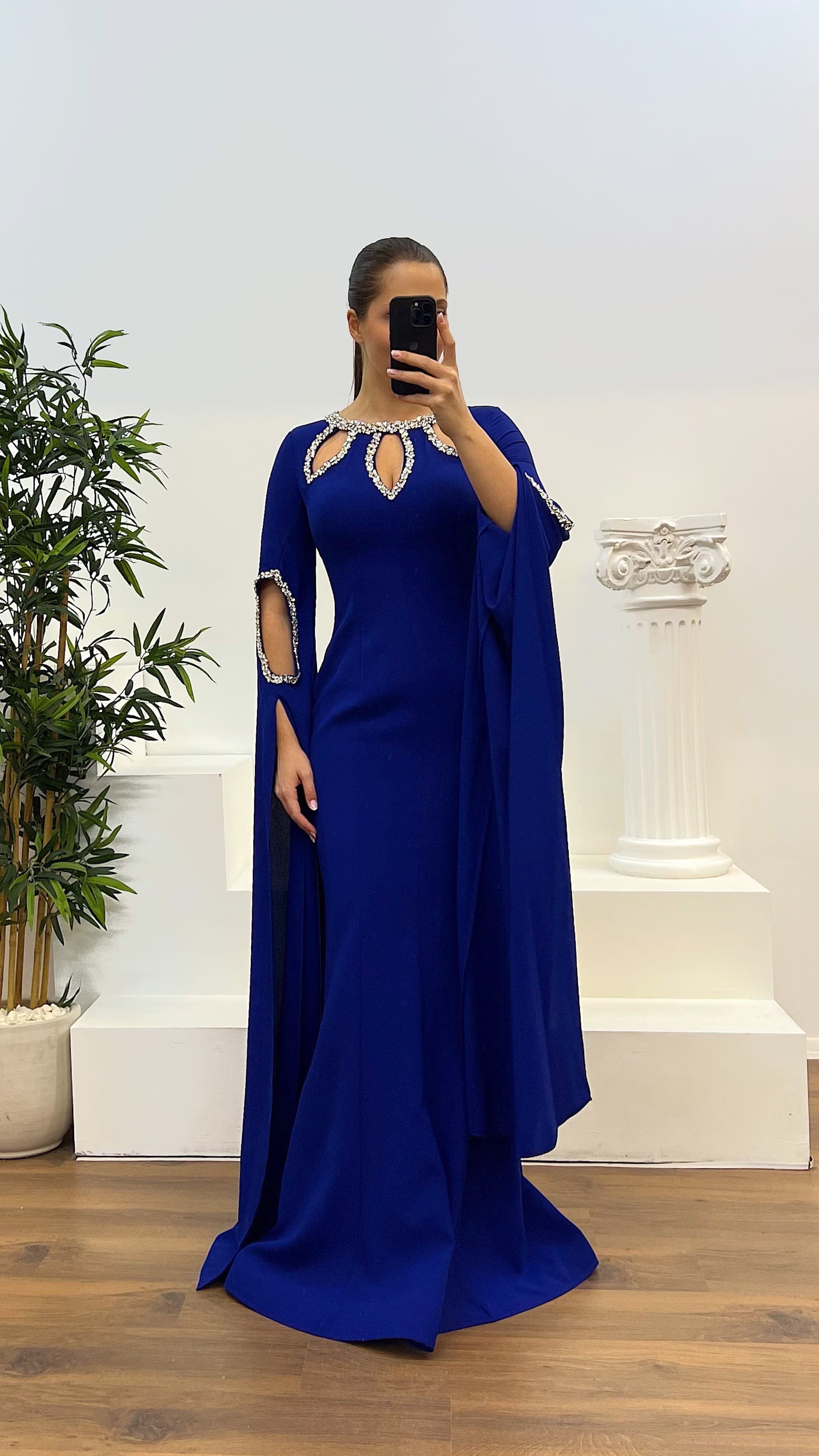 • Saks Taş Detay Büyük Beden Abiye Elbise