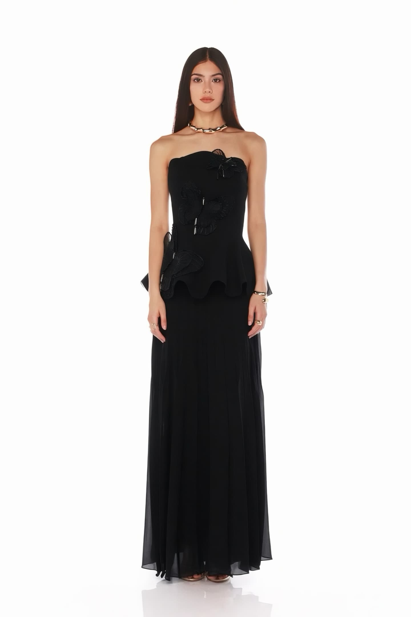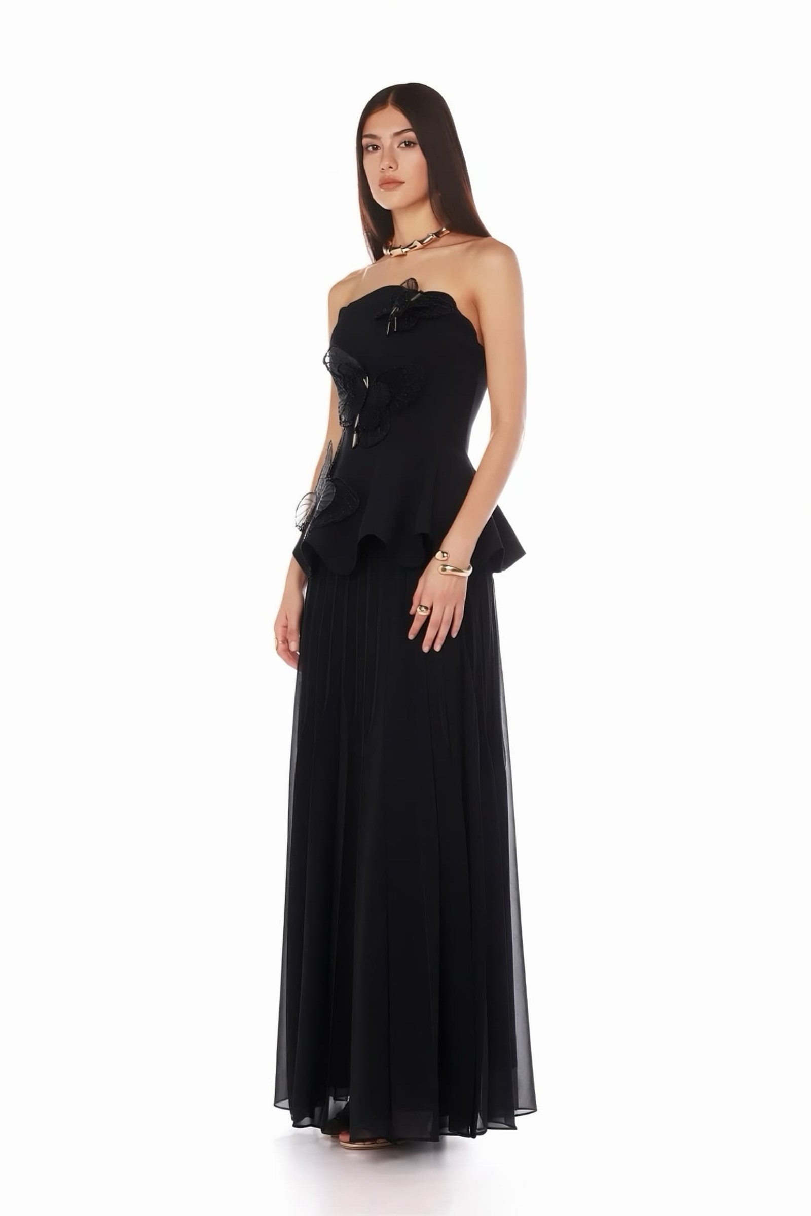 • Siyah Kelebek Detaylı  Abiye Elbise