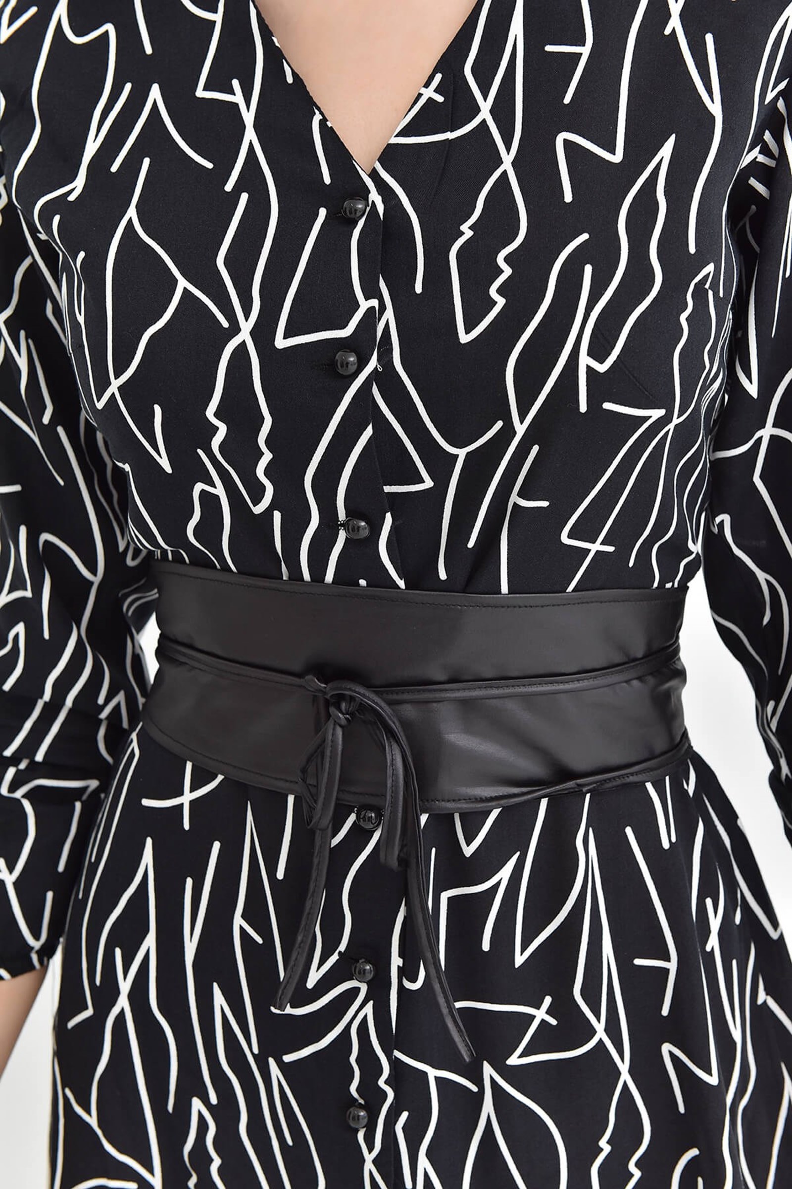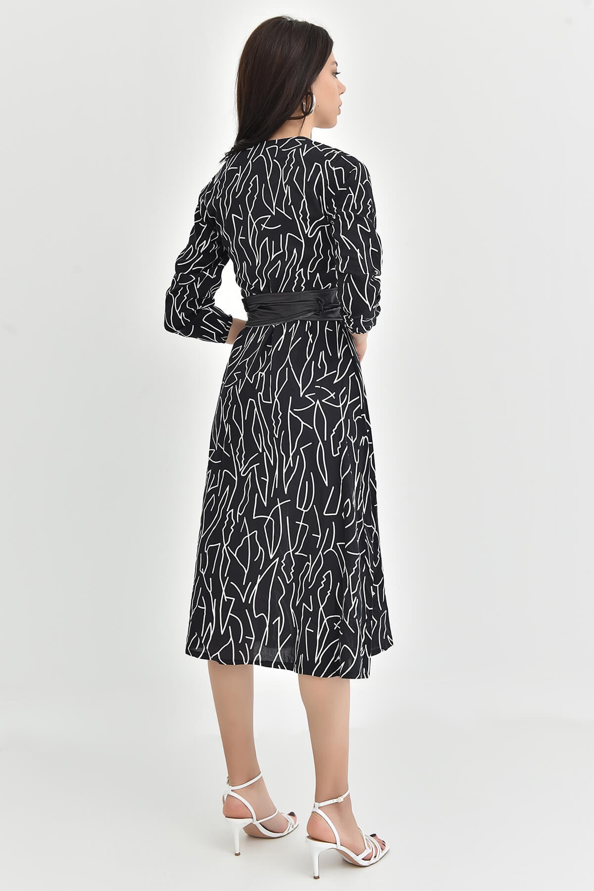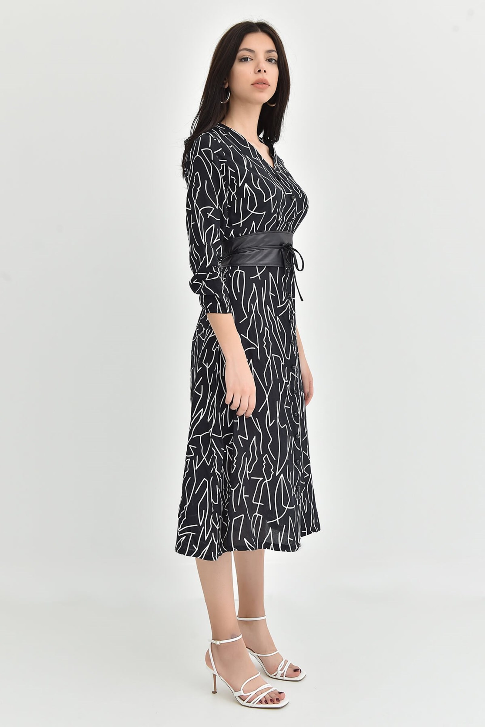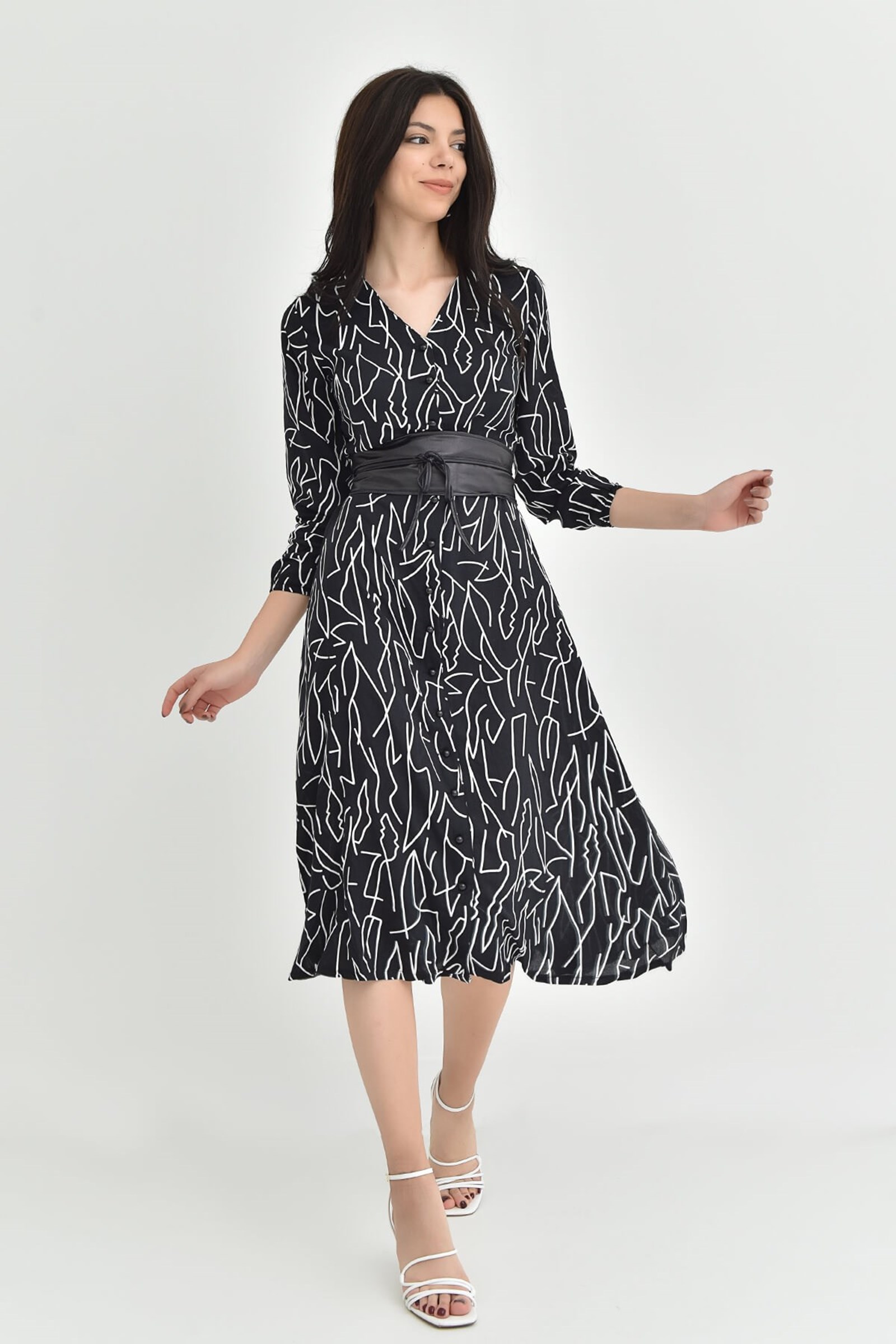 Siyah Kemerli Midi Boy Gömlek Elbise