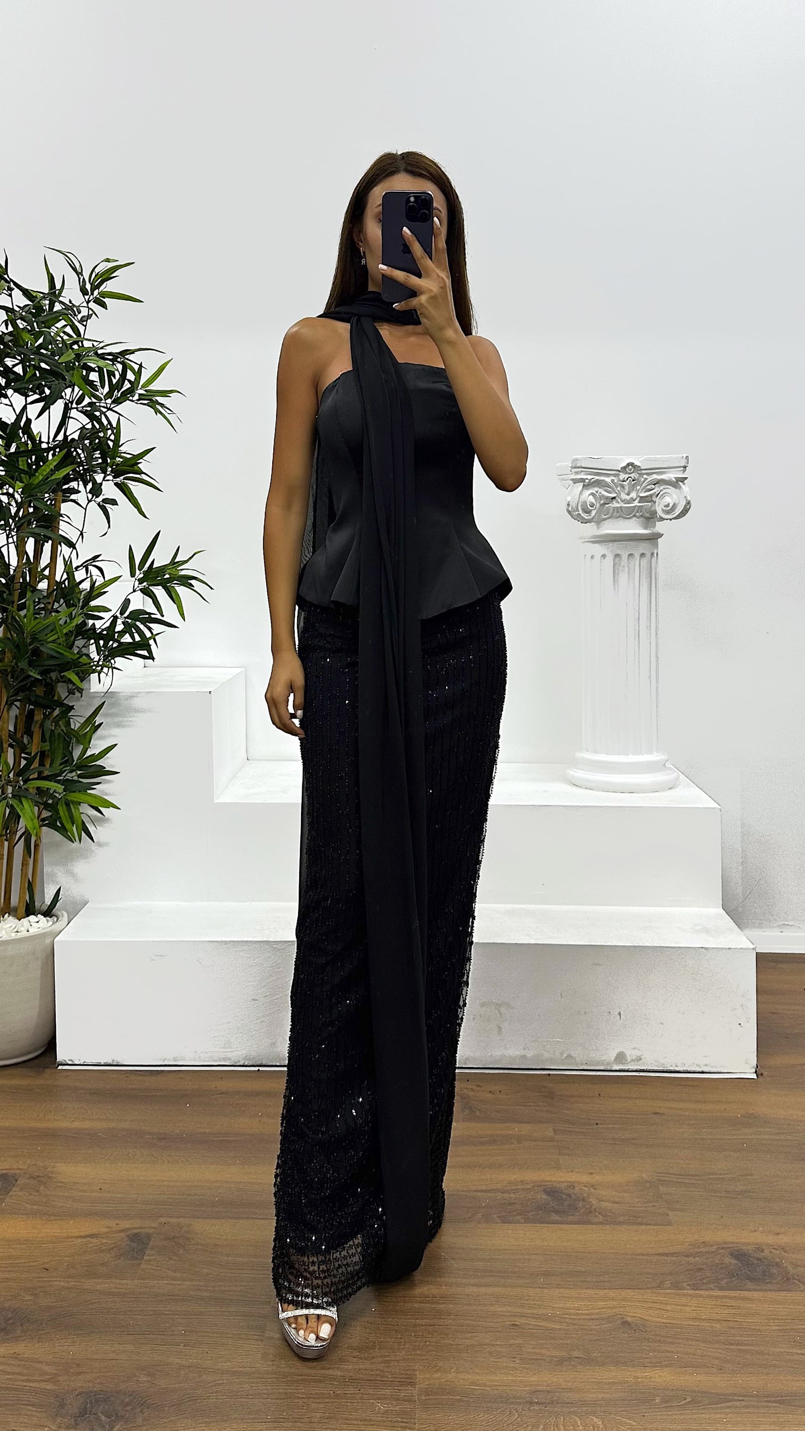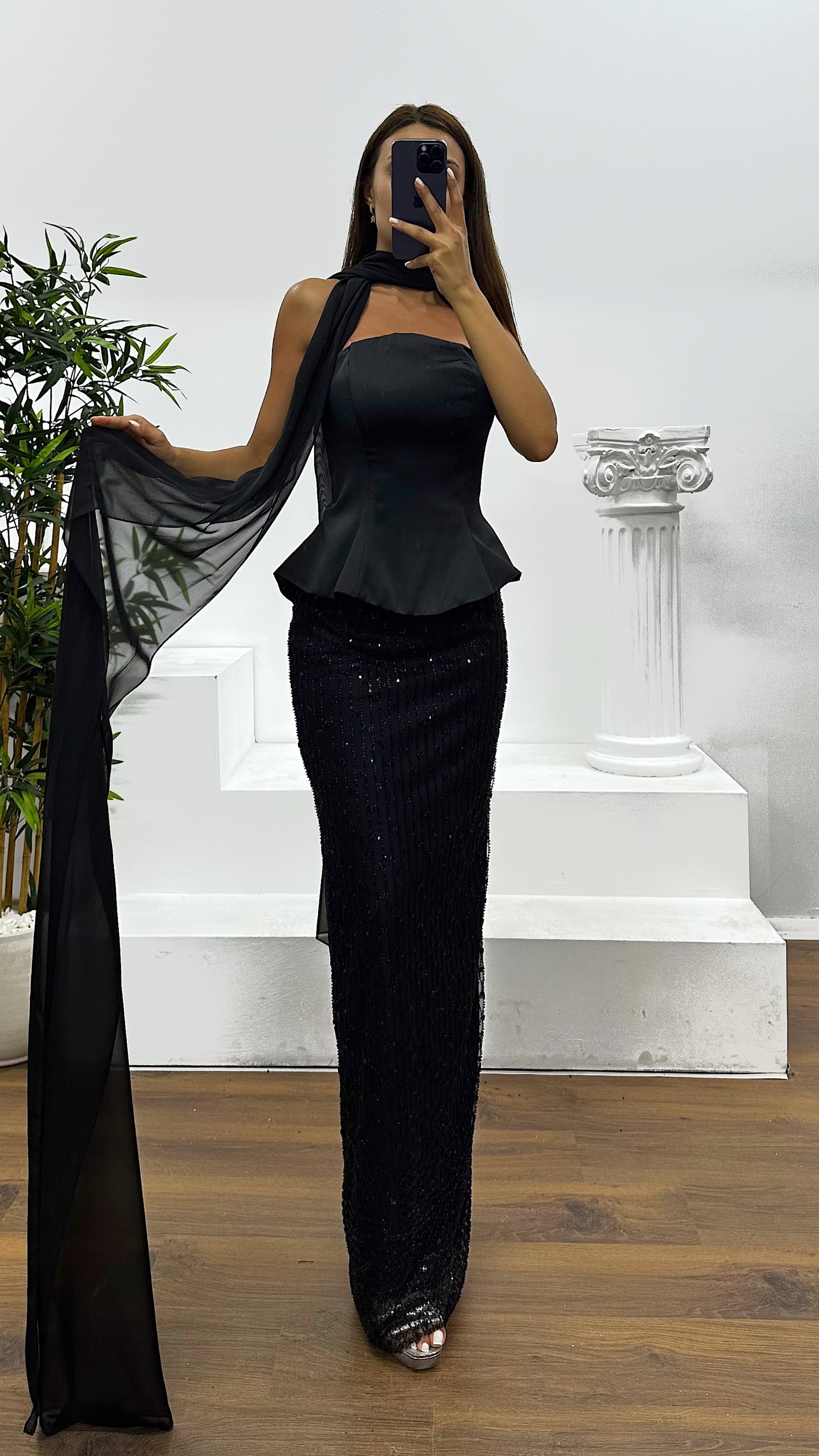 Abito da sera senza spalline Il prodotto è adatto alle taglie dalla 36 alla 44, con coppe imbottite, foderato, chiusura posteriore con zip, progettato come un abito da sera ricamato. Lunghezza del prodotto: Può variare tra 170 e 175 cm. Tipo di tessuto: Raso (100% poliestere) – Tulle ricamato (3% elastan, 97% poliestere)