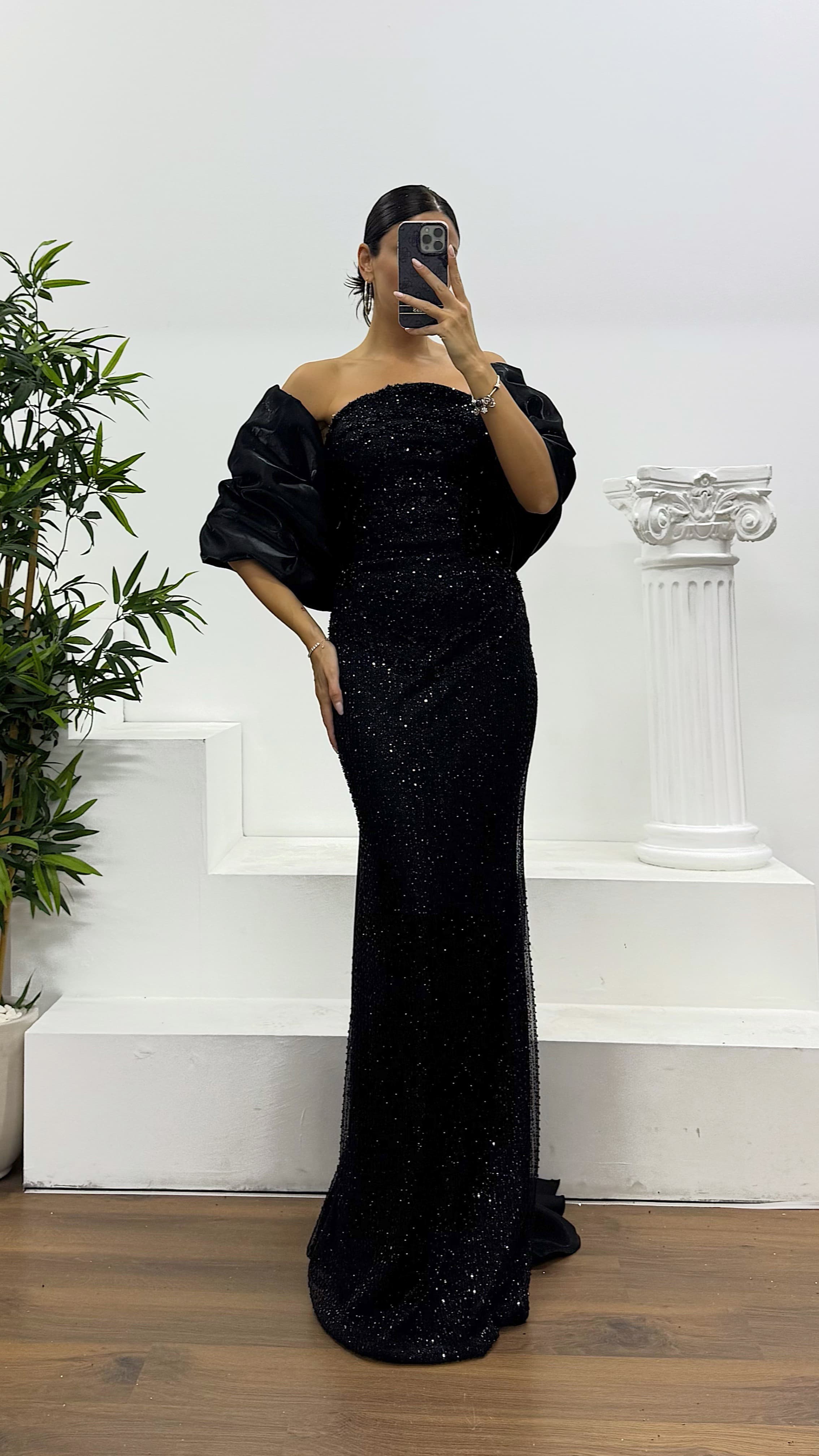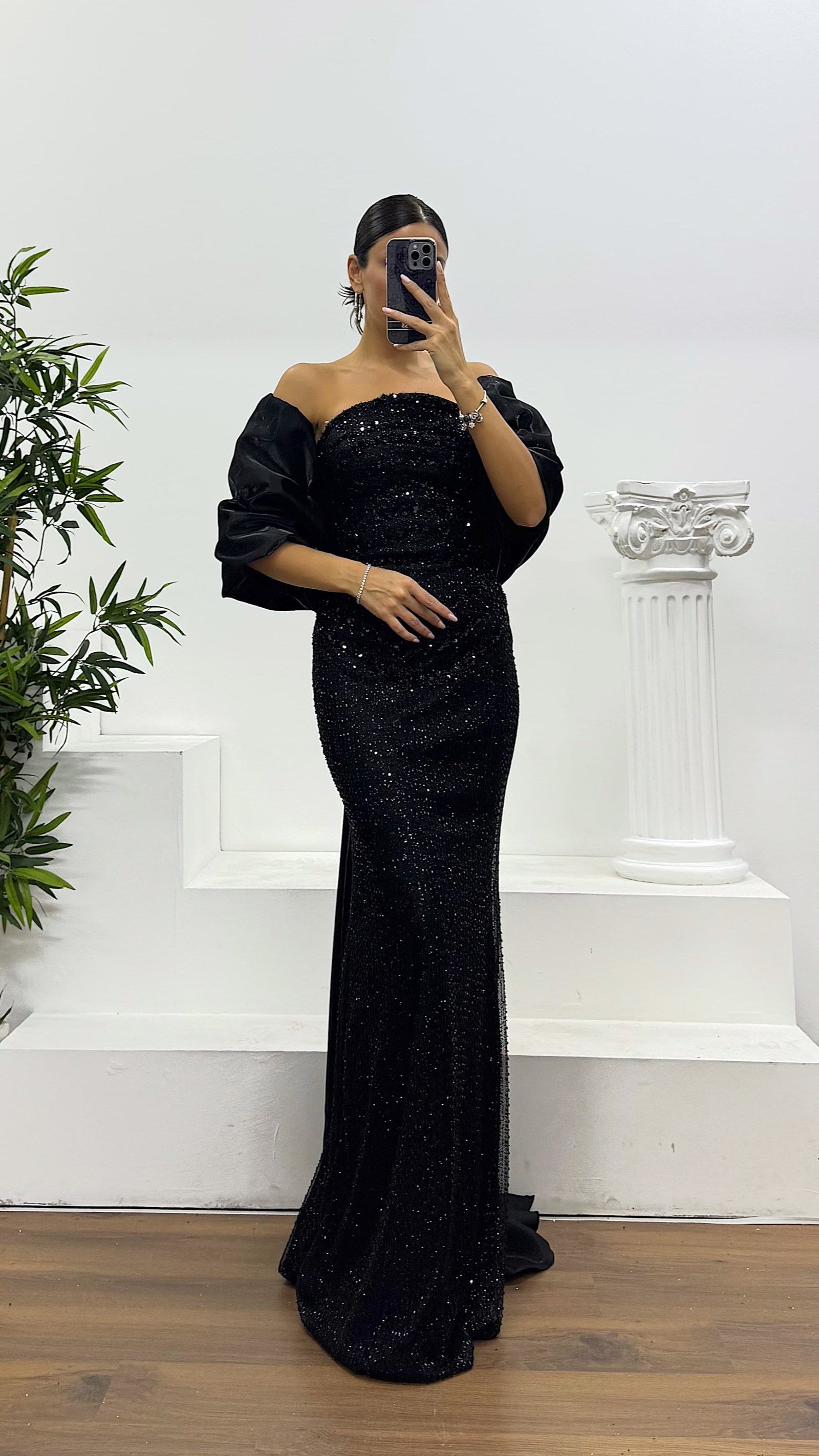Abito da sera ricamato senza spalline Adatto per taglie dalla 36 alla 42, con coppe imbottite, foderato, chiusura con zip sul retro, dettaglio sulle maniche, progettato come abito da sera ricamato. Lunghezza dell’abito: Può variare tra 170–175 cm. Tipo di tessuto: Tulle (3% Lycra, 97% Poliestere) – Raso organza.