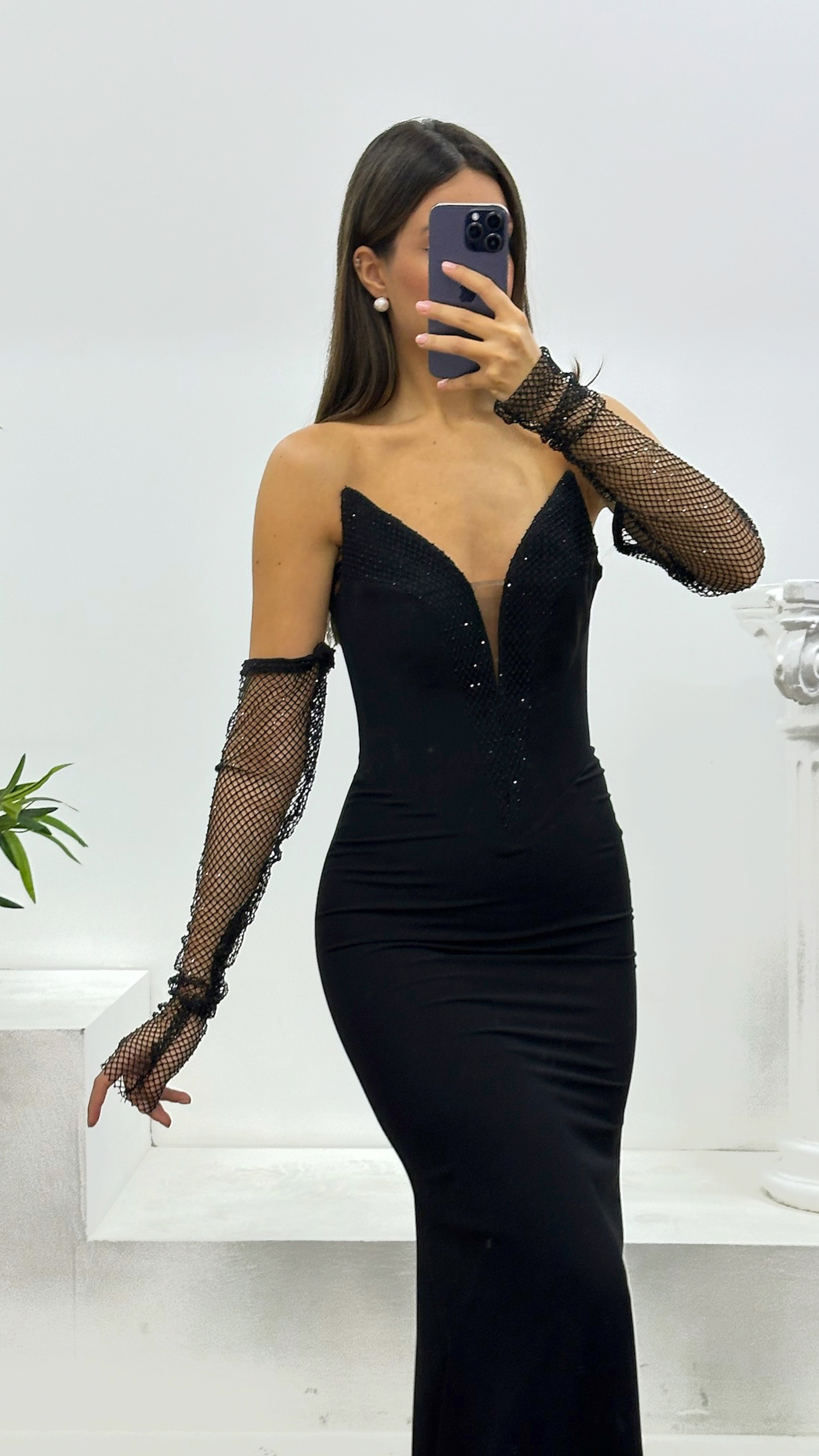 Abito da sera senza spalline con dettagli in pietra Adatto per taglie dalla 36 alla 42, con coppe imbottite, foderato, chiusura con zip sul retro. Progettato come abito da sera con dettagli in pietra. Lunghezza: Può variare tra 170 e 175 cm. Tipo di tessuto: Atlas, 100% poliestere.