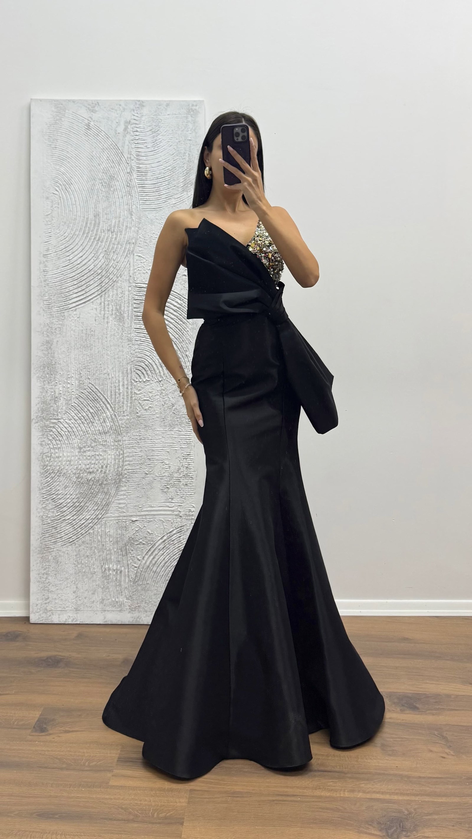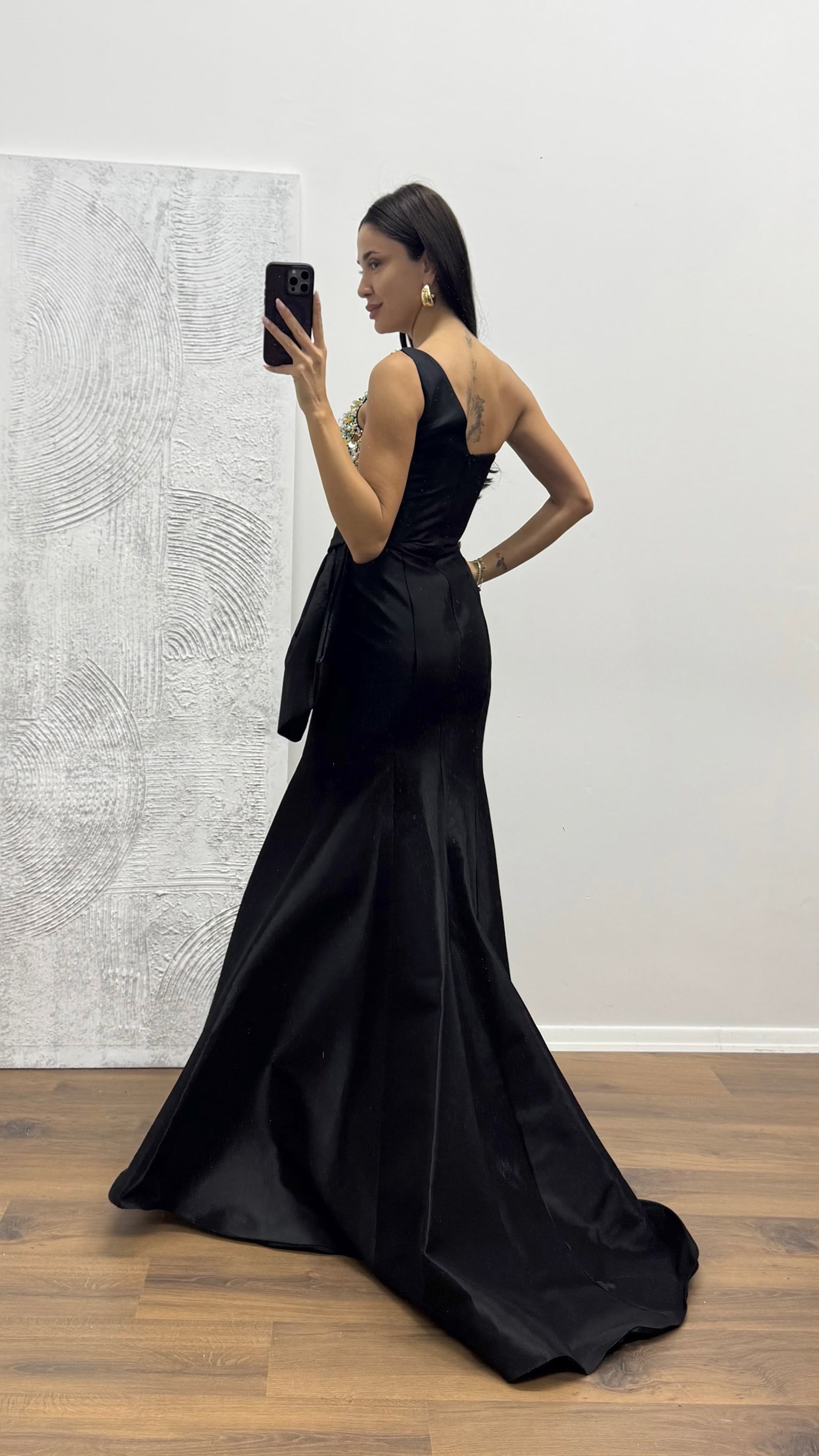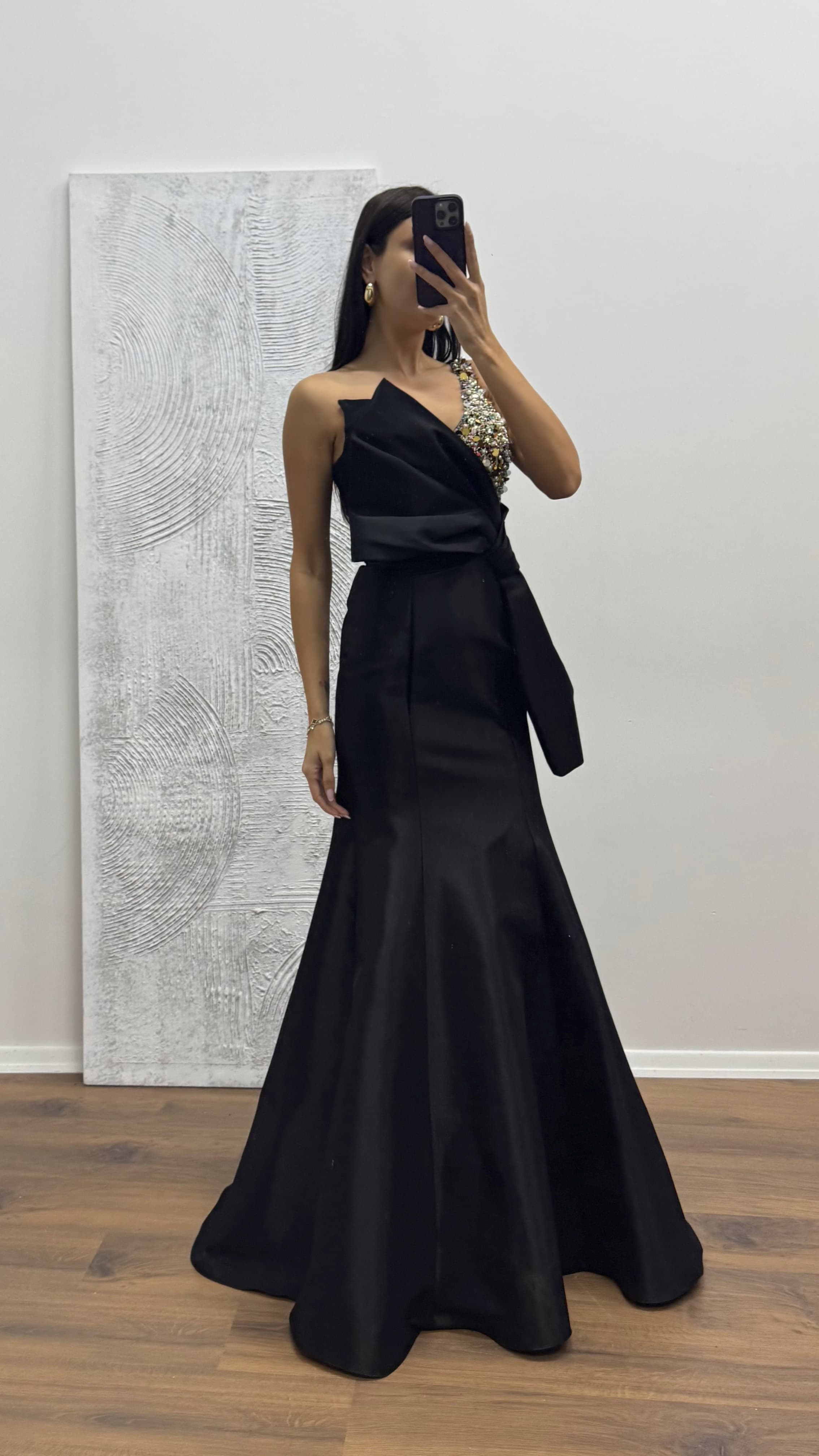 Abito da Sera Monospalla con Dettaglio Fiocco Adatto per taglie dalla 36 alla 40, con coppe imbottite, foderato, chiusura con zip posteriore, design monospalla con ricami e dettaglio fiocco. Lunghezza dell’abito: Può variare tra 165 e 170 cm. Tipo di tessuto: Raso poliestere-viscosa