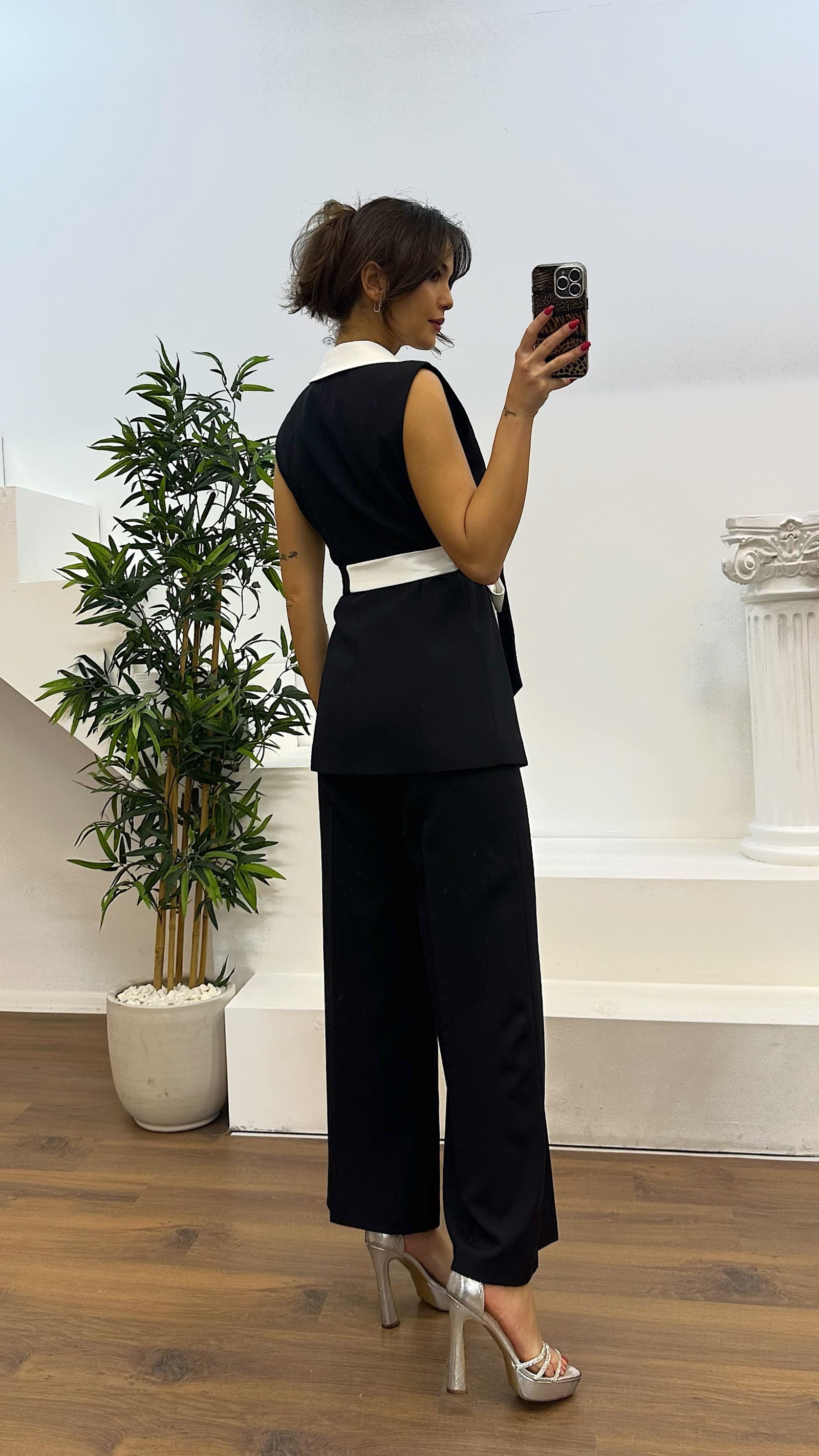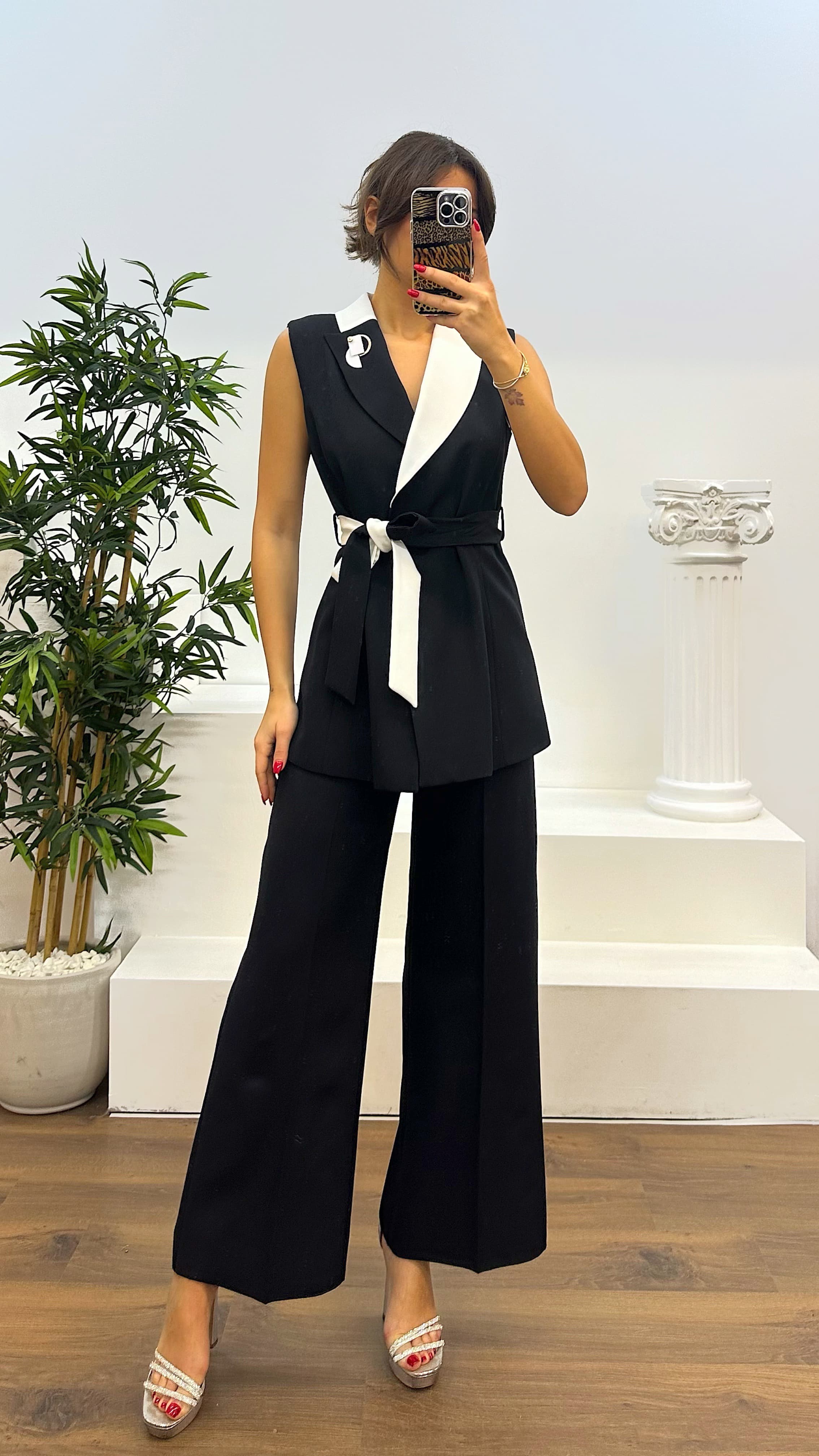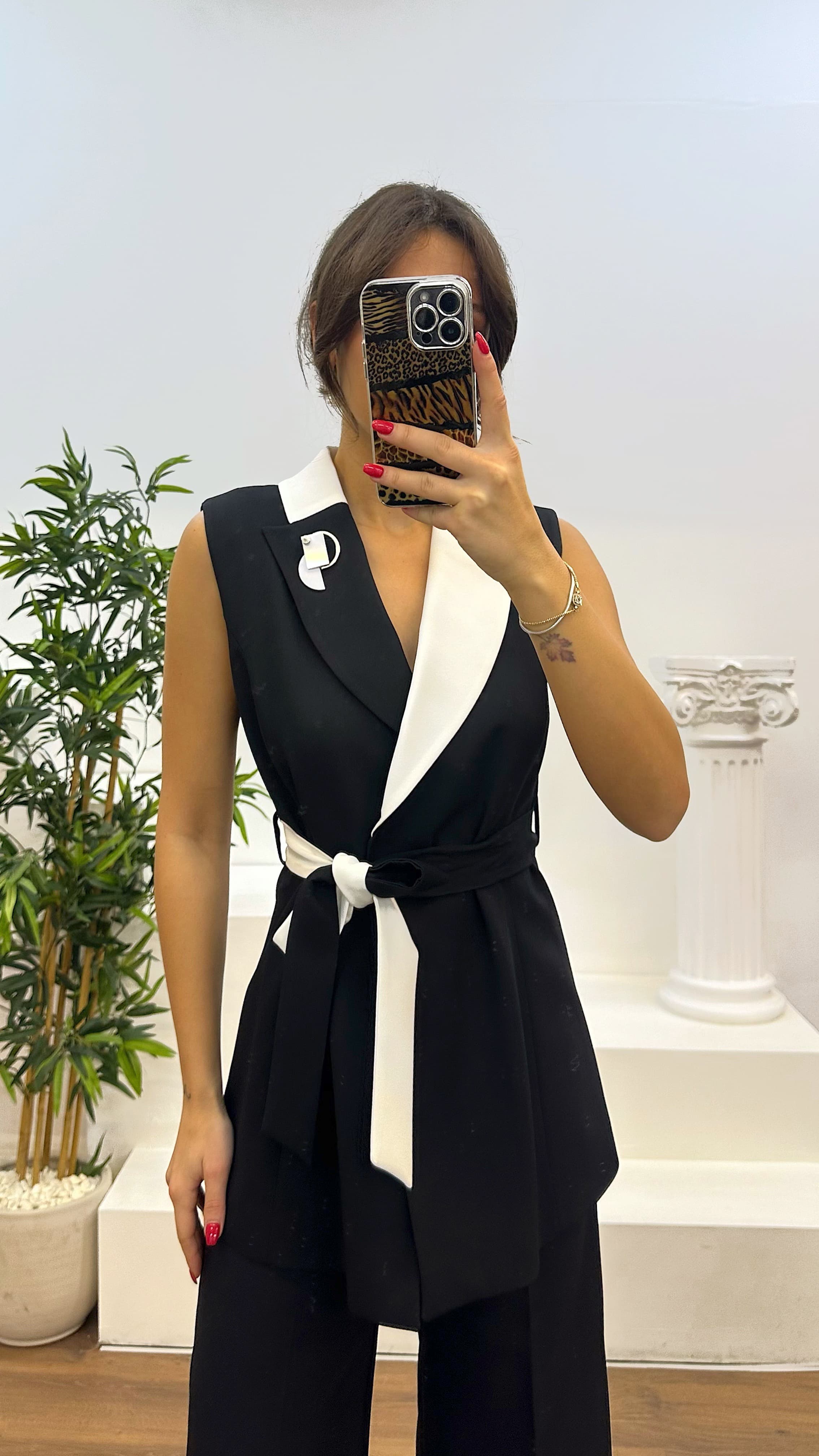 Gilet completo da sera Il prodotto è compatibile con le taglie dalla 36 alla 44, foderato, con cerniera e gilet da legare, progettato come un completo da sera. La lunghezza del prodotto è di 100 cm. Tipo di tessuto: Atlas 100% poliestere.