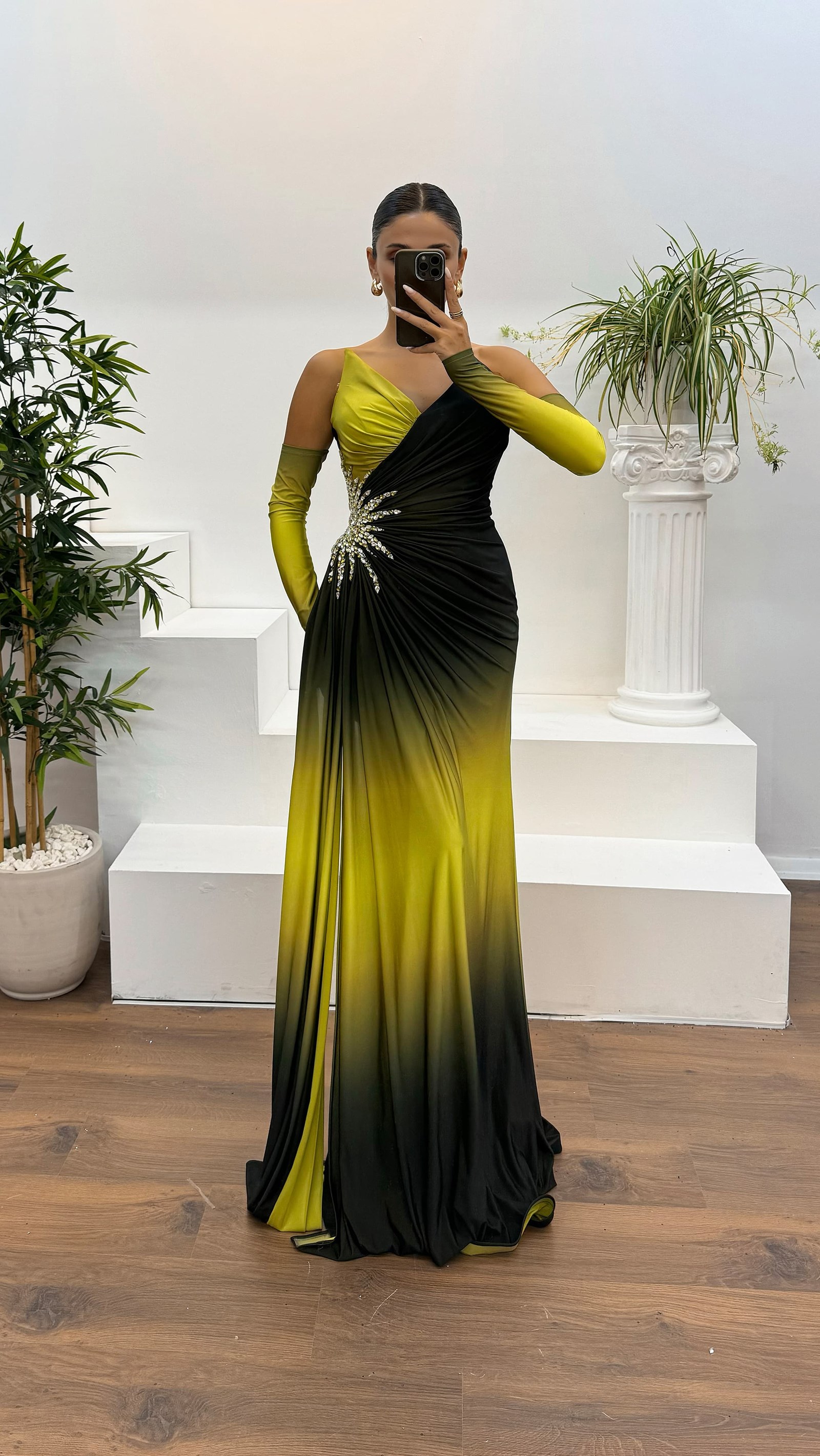 • Vizon Straplez Bel İşleme Detay Abiye Elbise