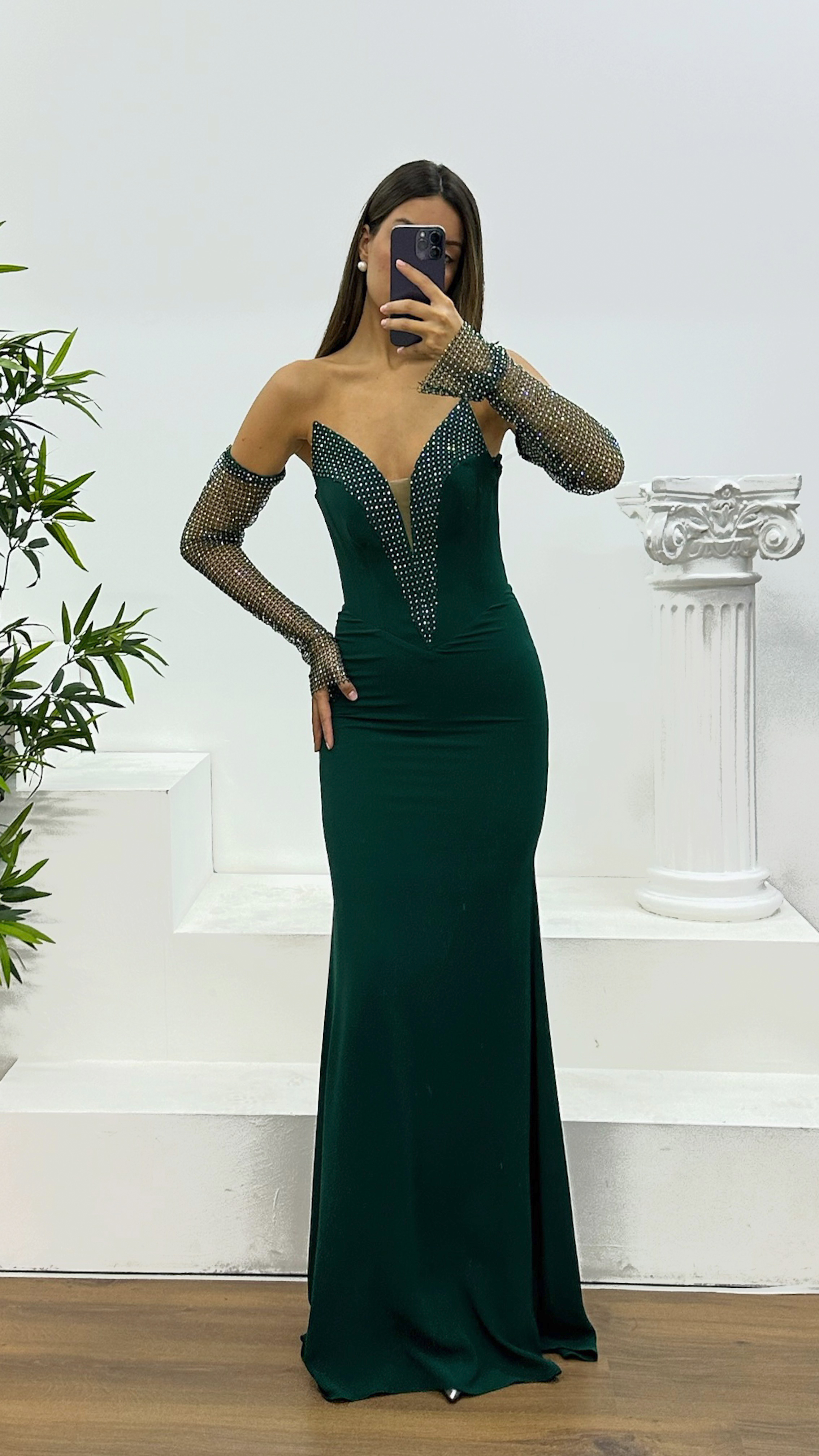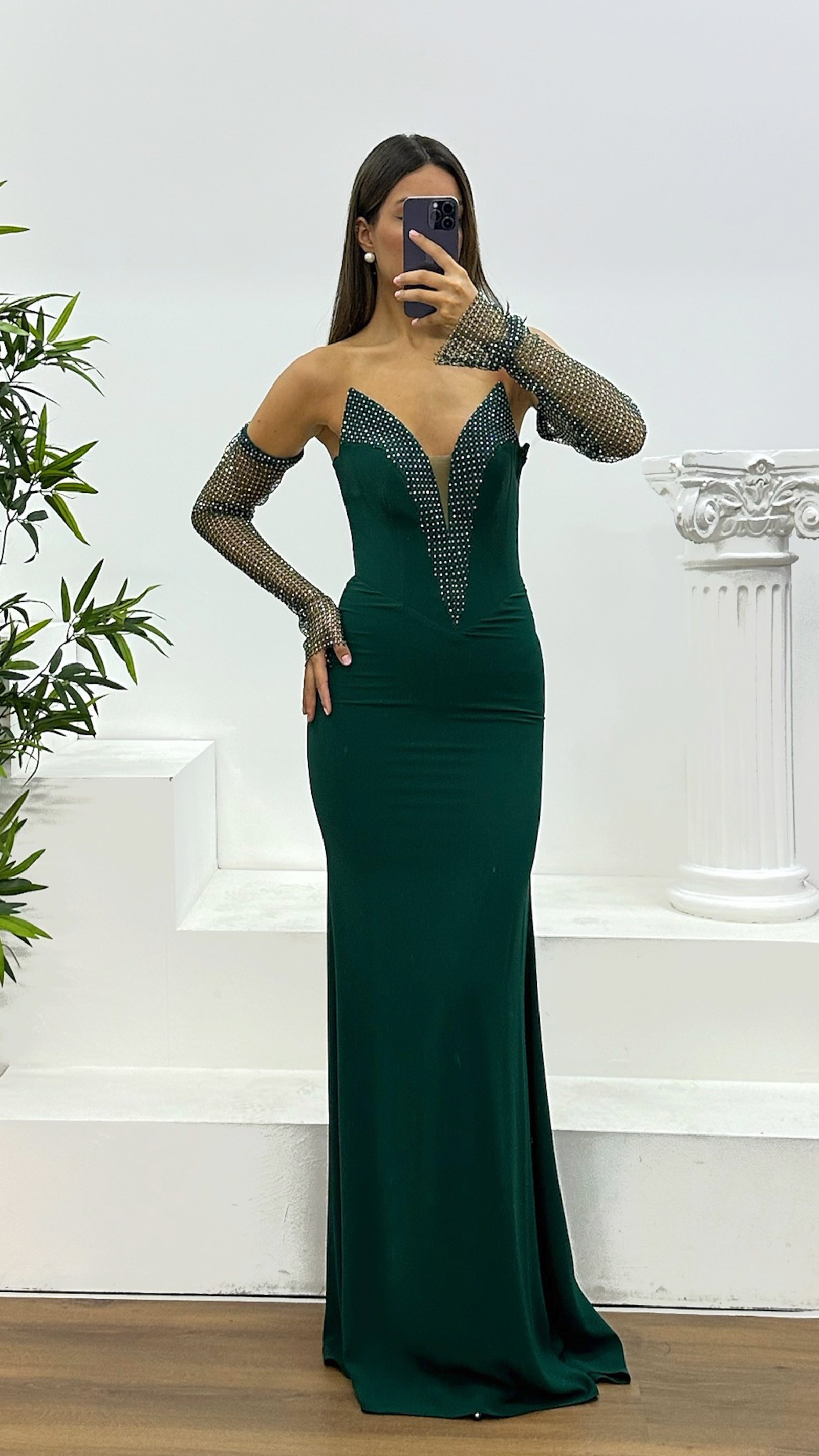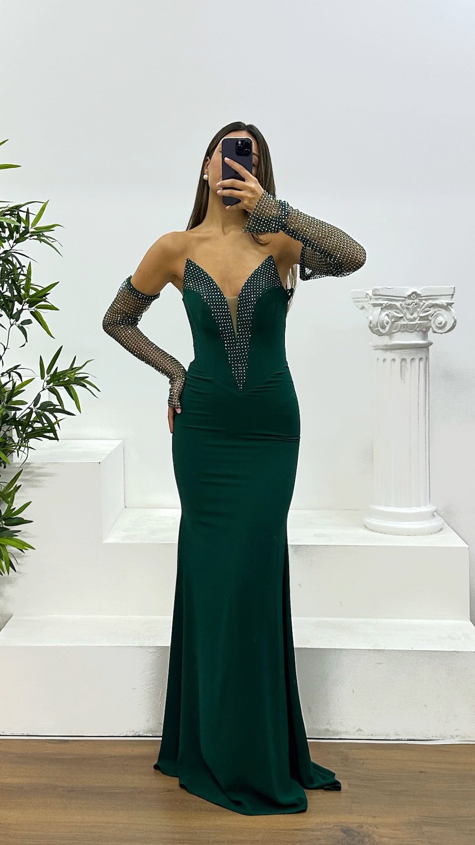 Abito da sera senza spalline con dettagli in pietra Adatto per taglie dalla 36 alla 42, con coppe imbottite, foderato, chiusura con zip sul retro. Progettato come abito da sera con dettagli in pietra. Lunghezza: Può variare tra 170 e 175 cm. Tipo di tessuto: Atlas, 100% poliestere.