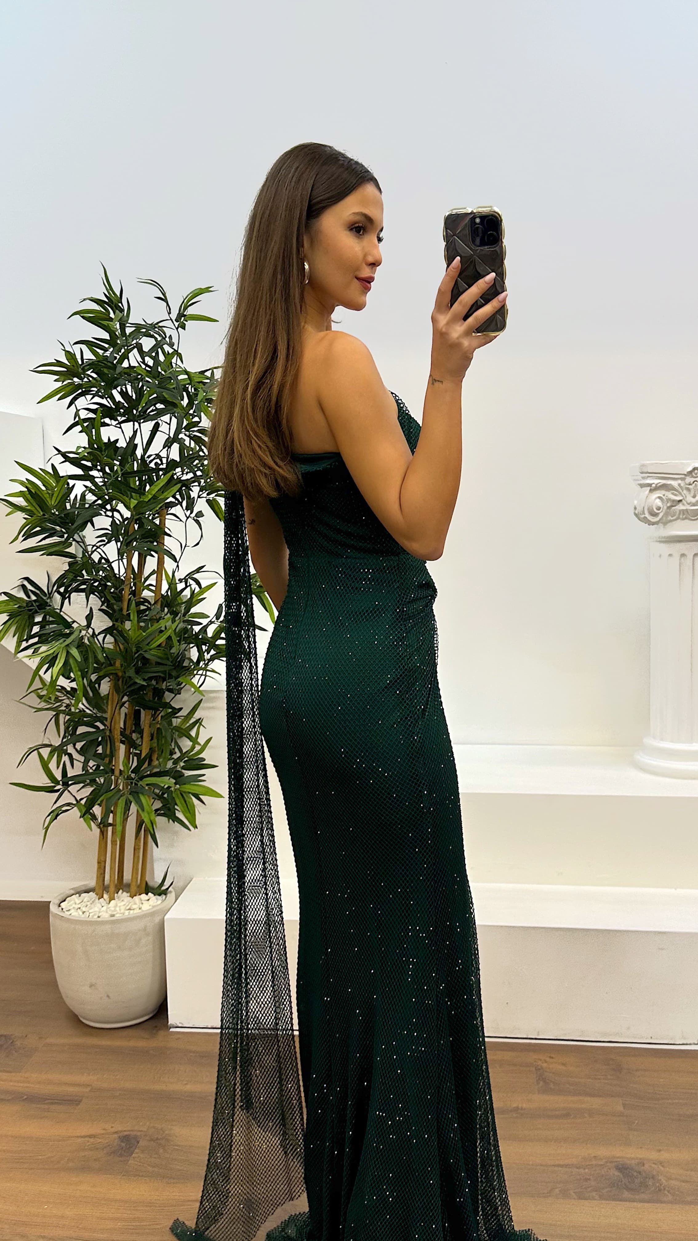 Abito da sera con dettaglio ricamo a manica singolaIl prodotto è concepito come un abito da sera con imbottiture sul petto, foderato, spacco, chiusura posteriore con zip, ricamato, adatto alle taglie 36-44.Lunghezza del prodotto: 165-170 cm può variare tra.Tipo di tessuto: tessuto a rete ricamato in pietra