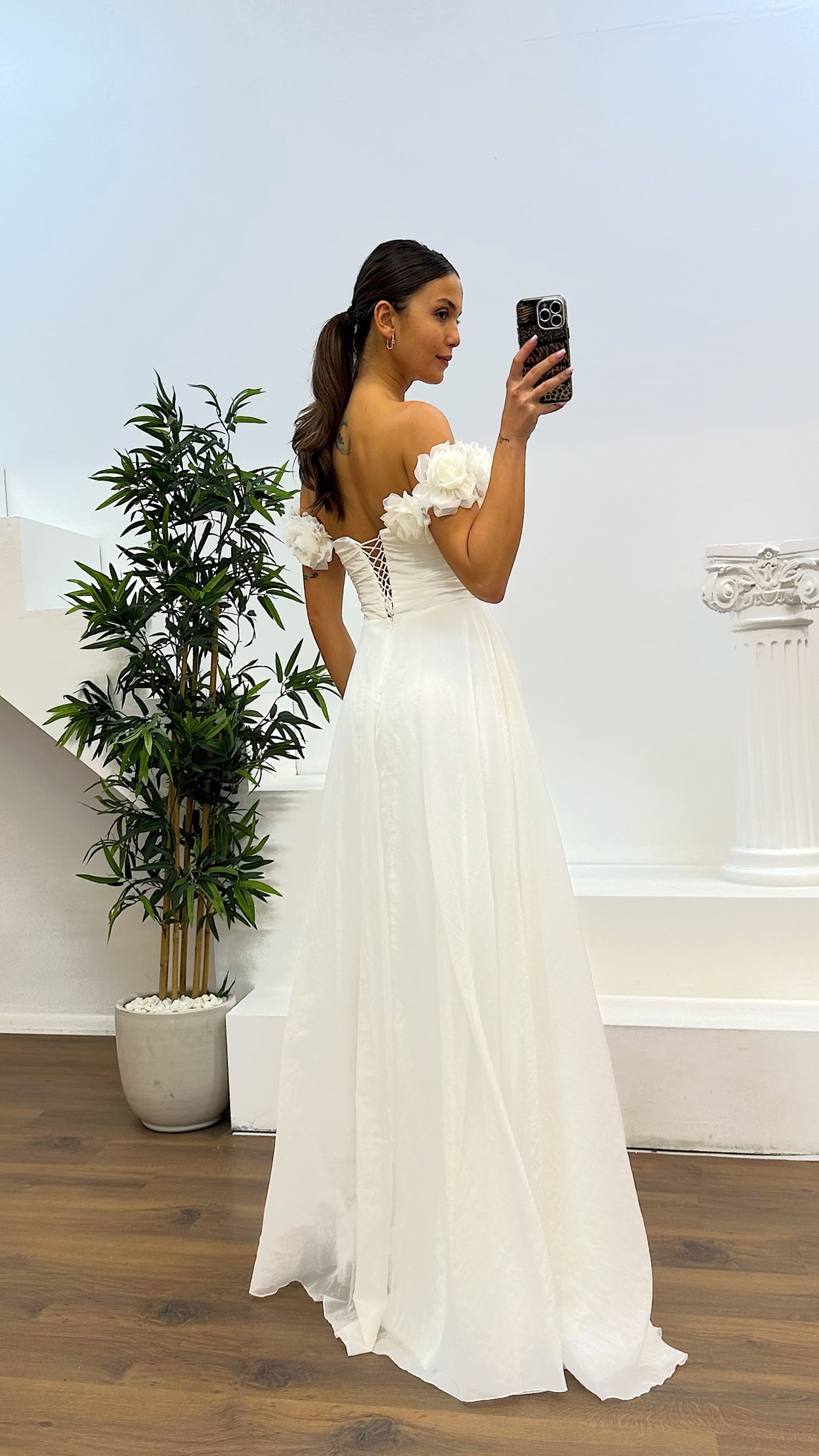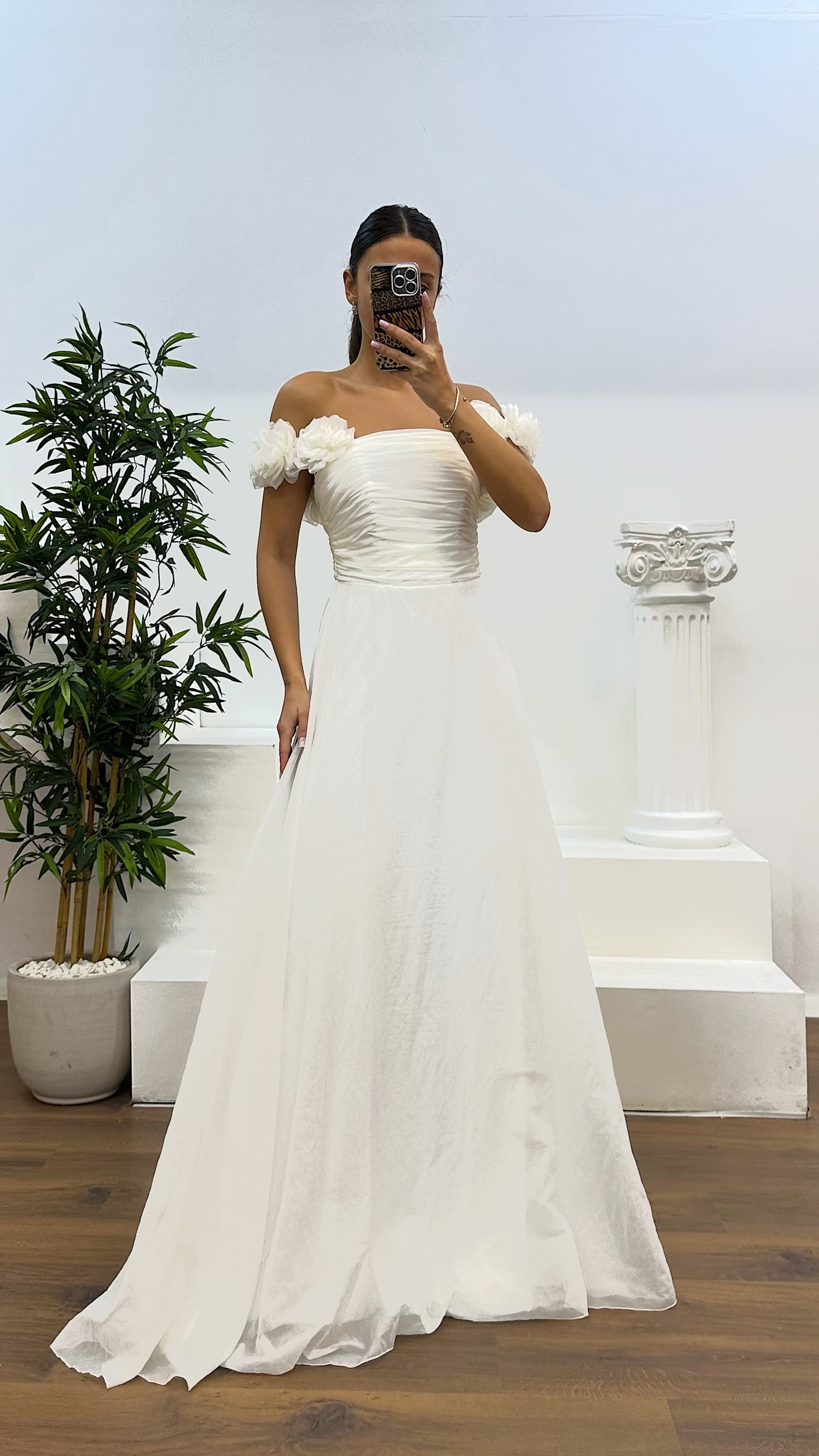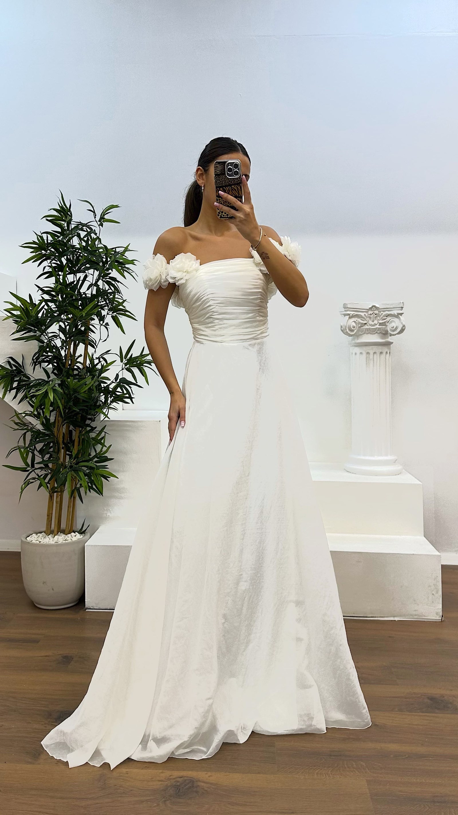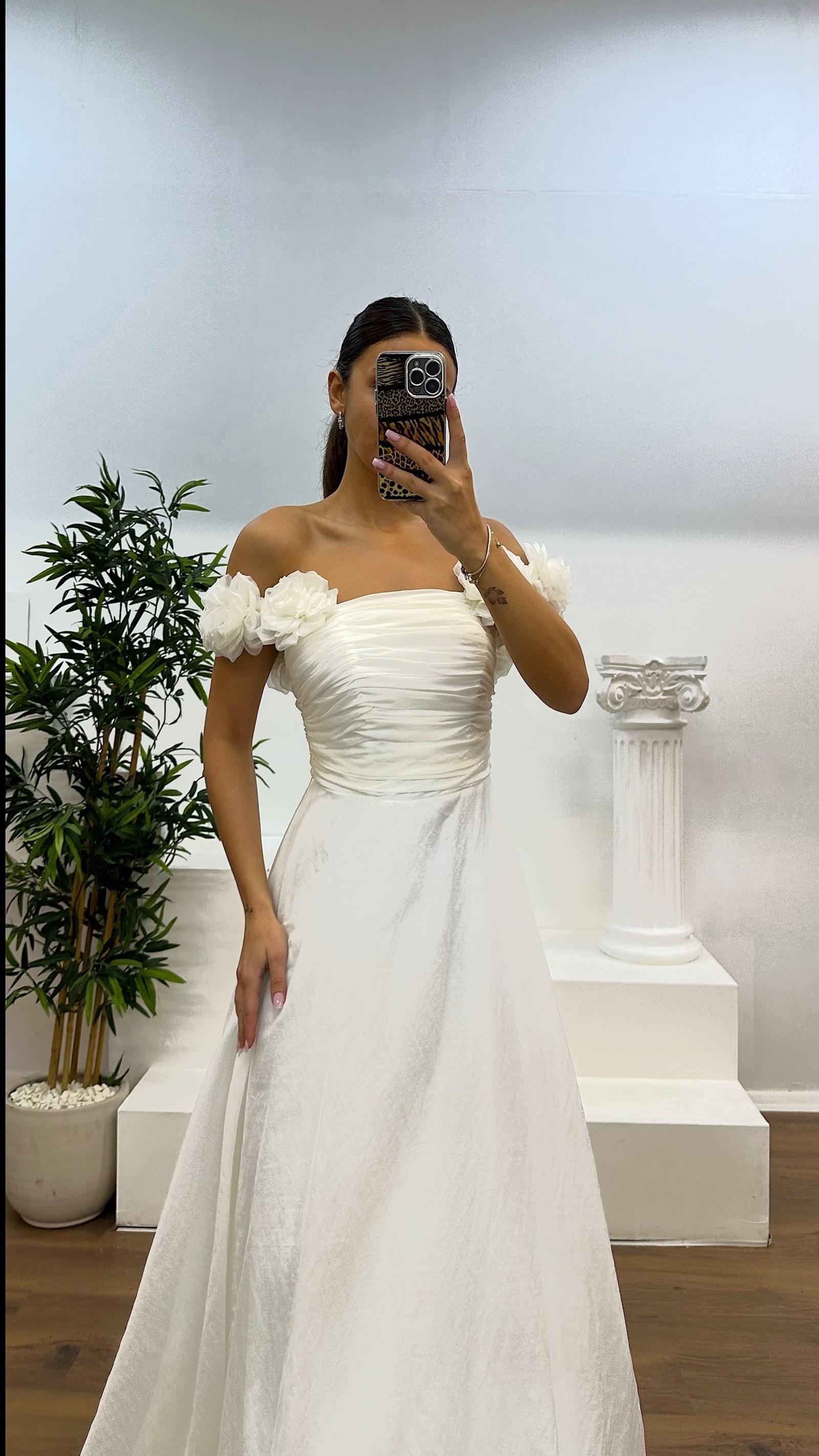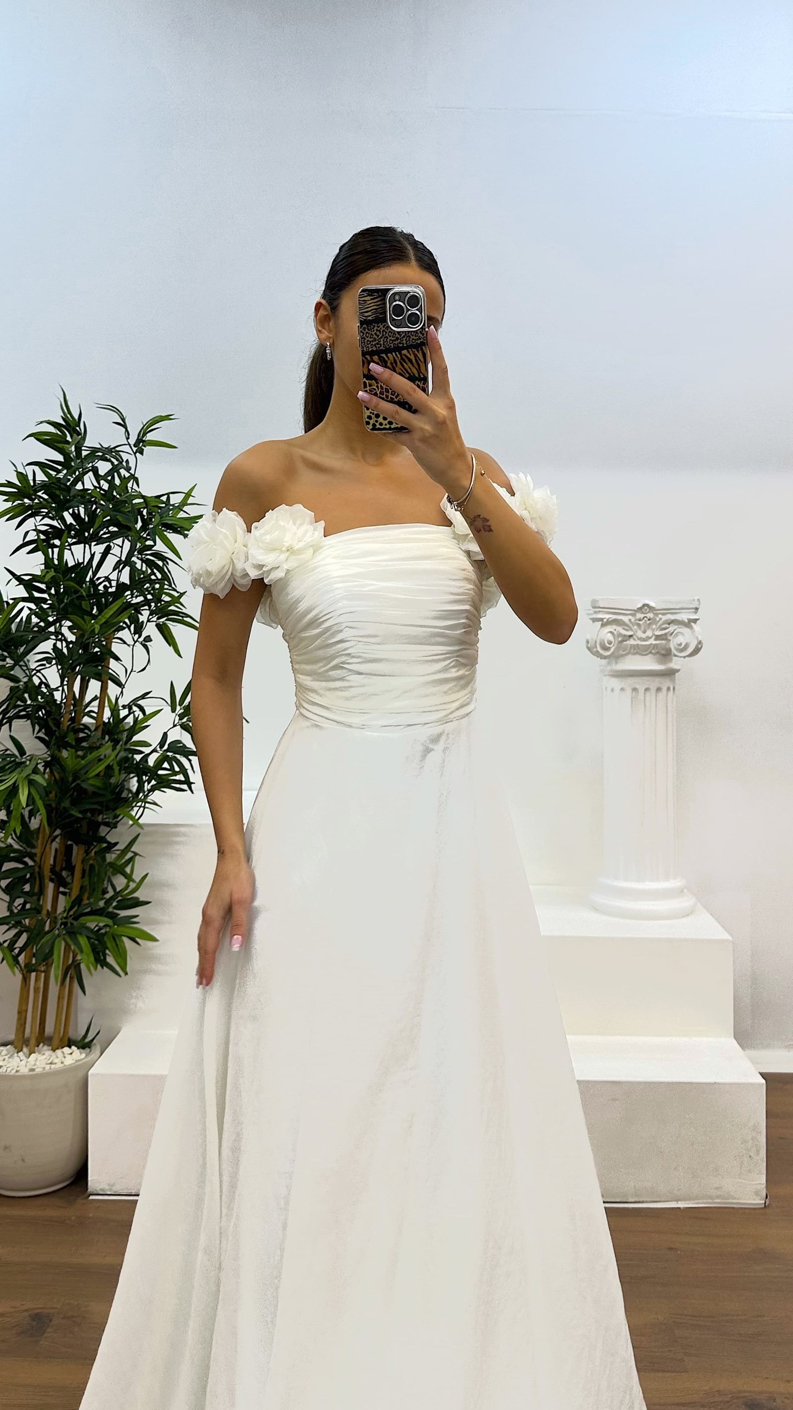 • Kemik Askılı Çiçek Detay Abiye Elbise