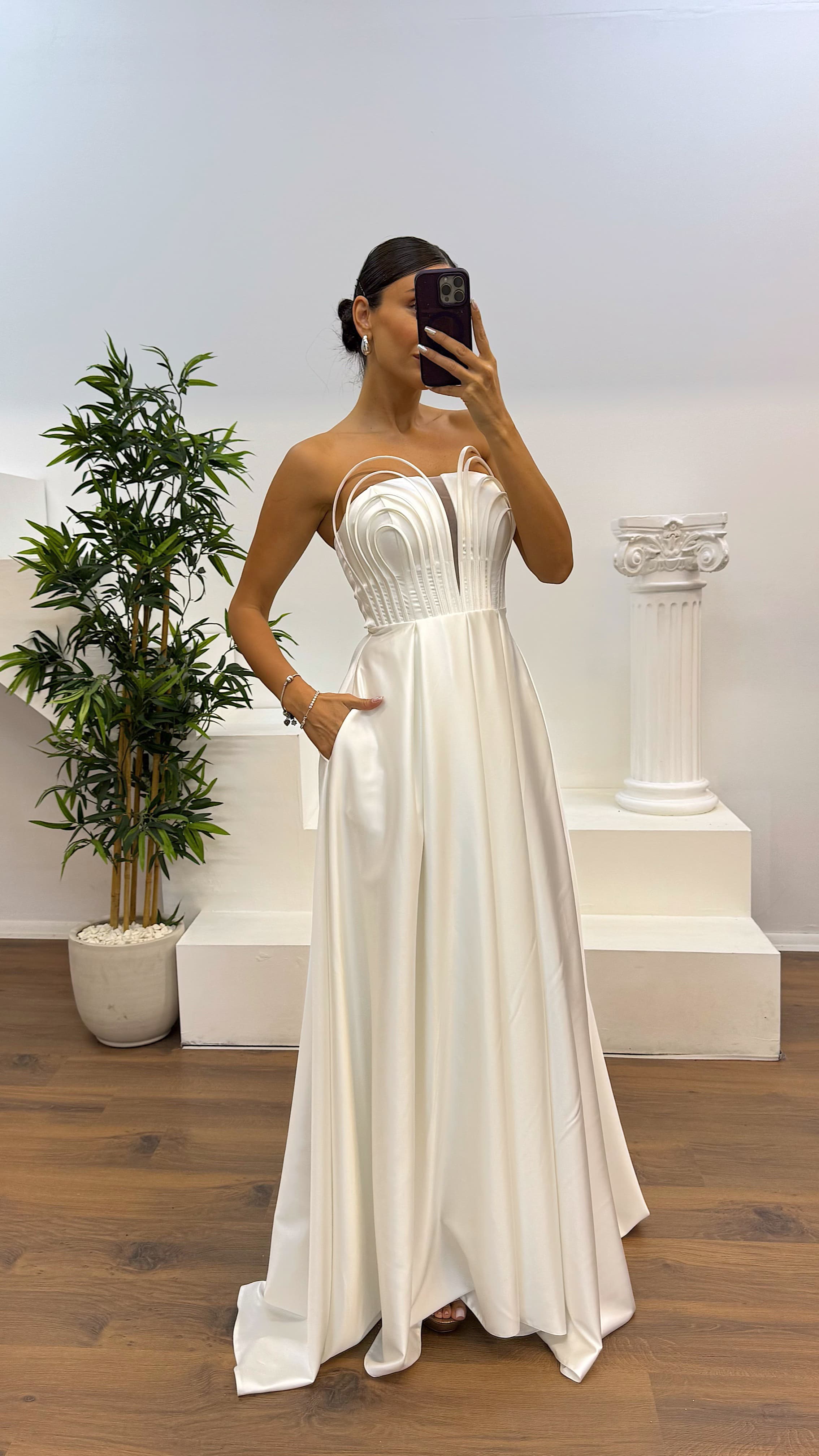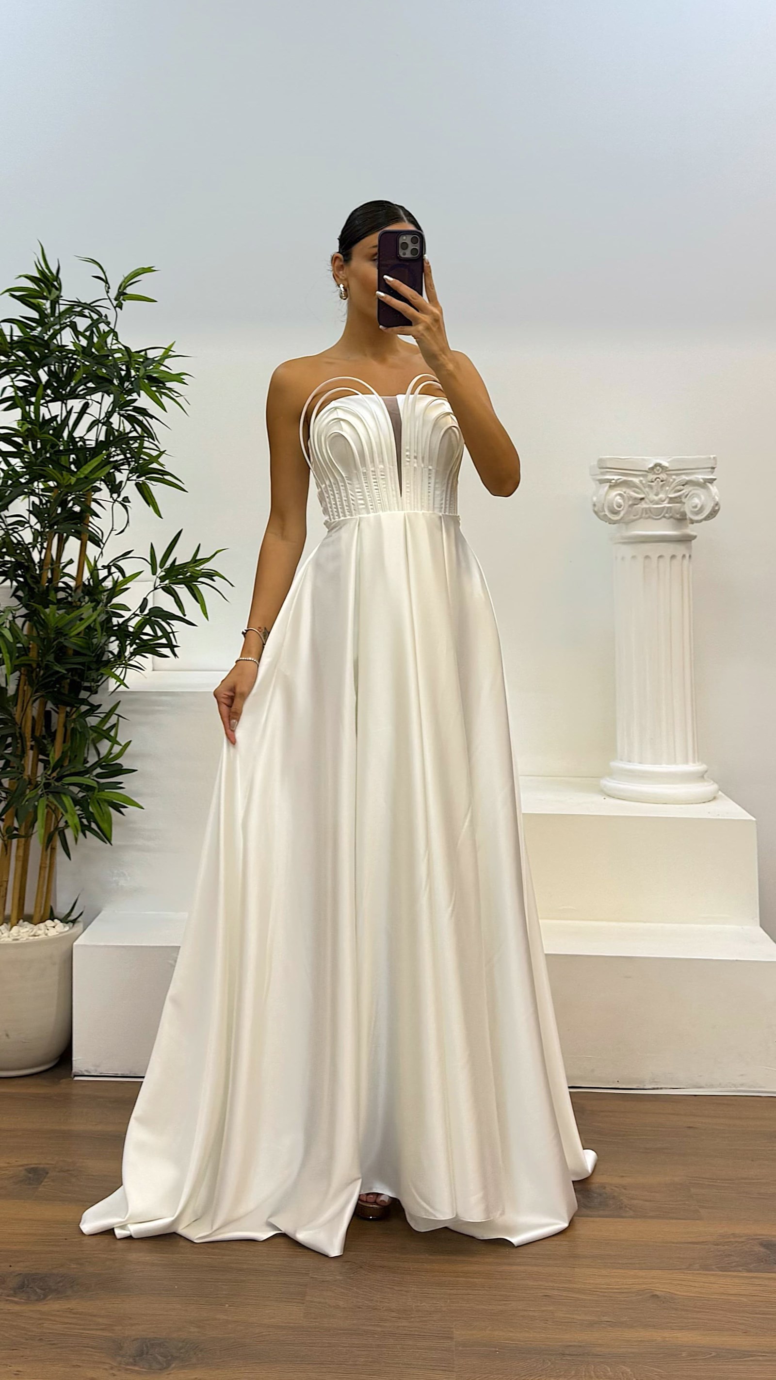 • Çağla Straplez Göğüs Detay Abiye Elbise
