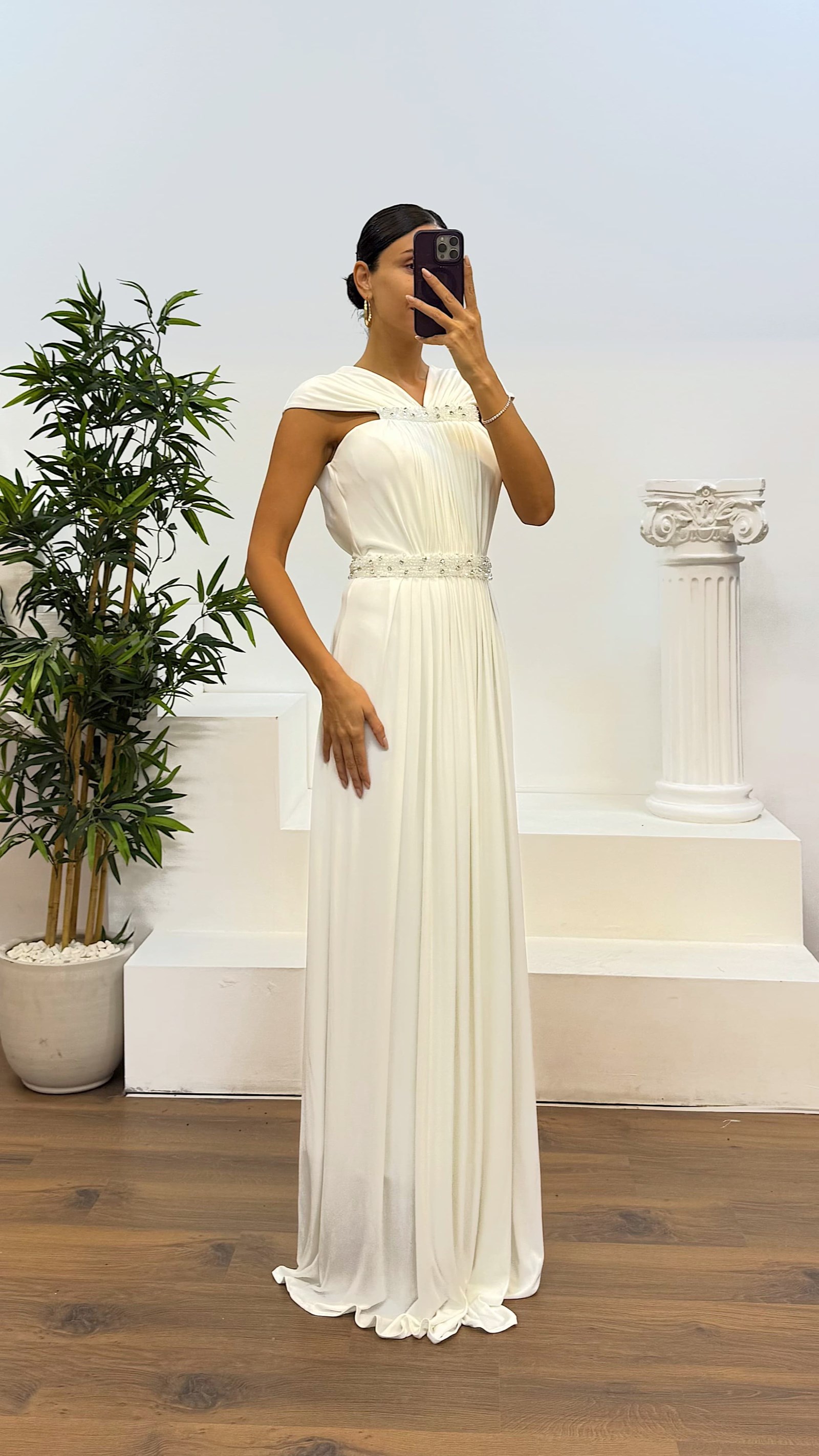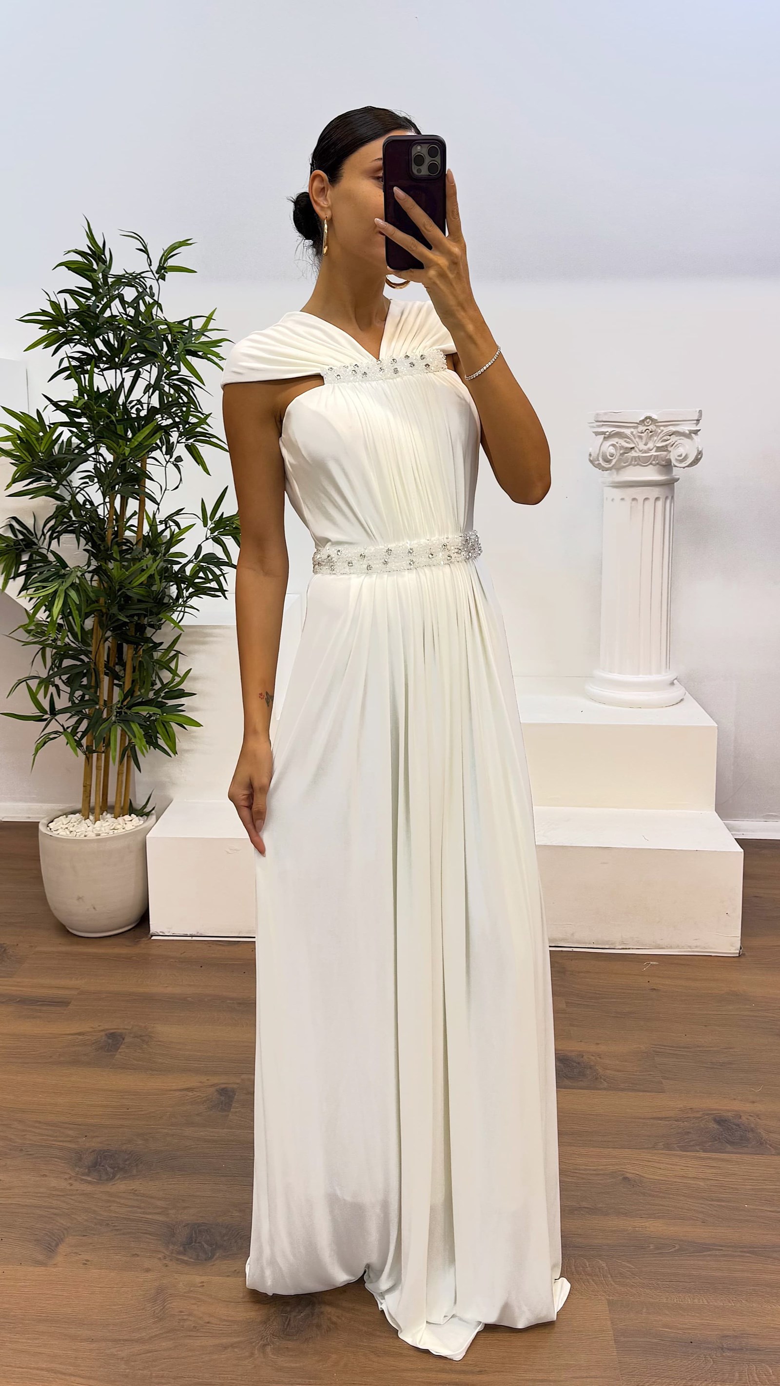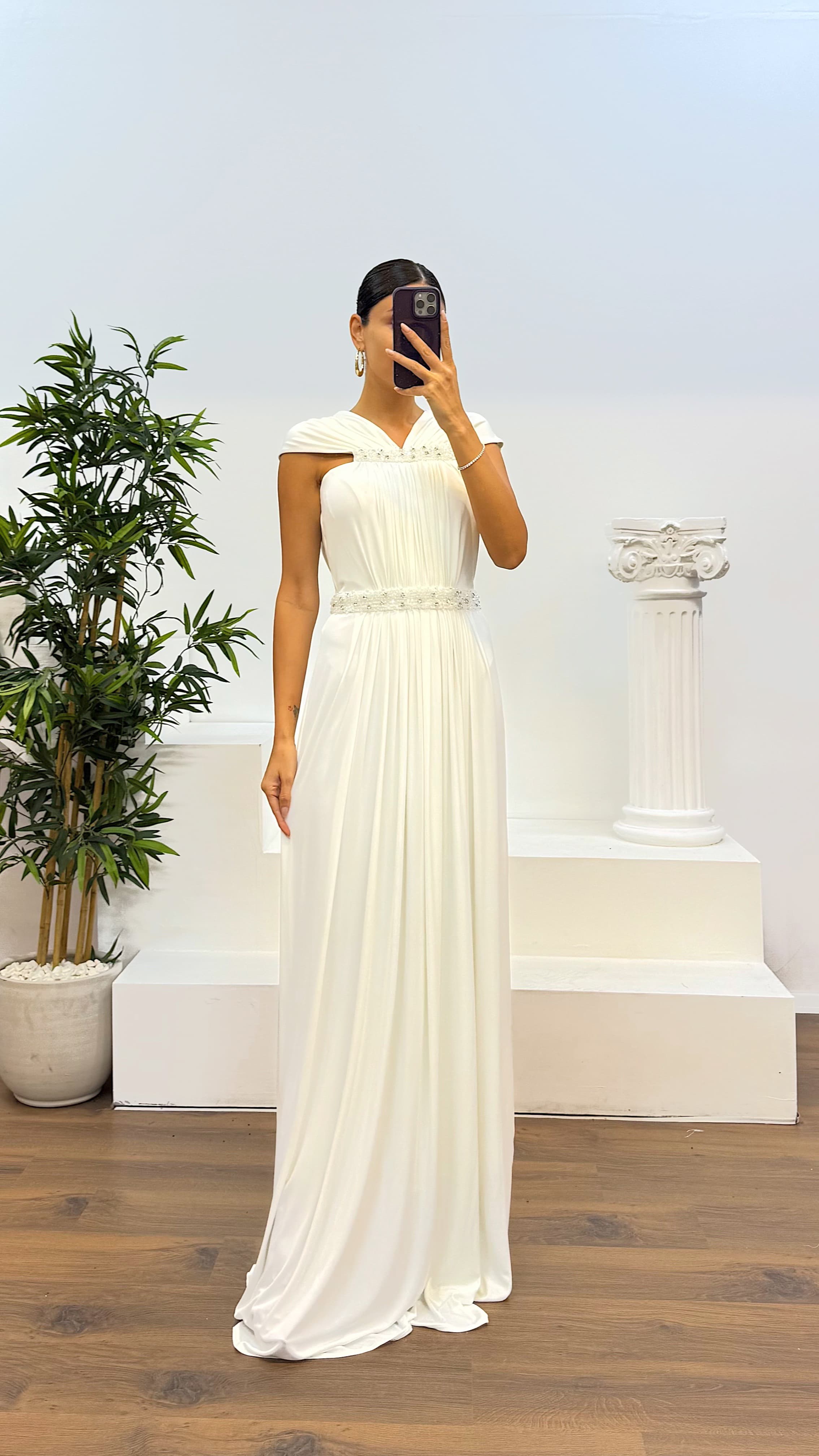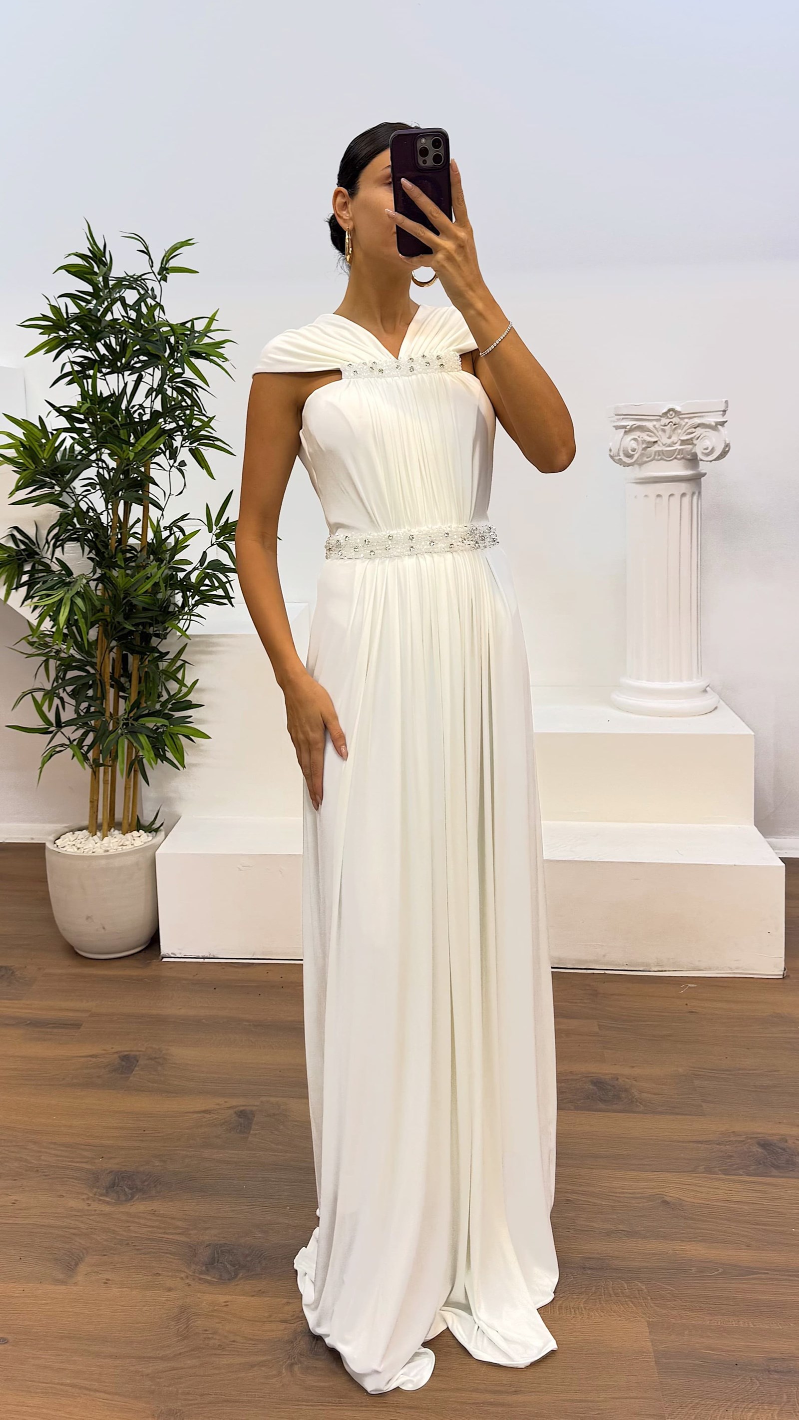 Abito da sera con dettagli ricamati in vita e sul collo Il prodotto è adatto alle taglie dalla 36 alla 44, con coppe imbottite, foderato e con chiusura a zip sul retro. È stato progettato come un abito da sera con dettagli ricamati. Lunghezza dell’abito: può variare tra 165 e 170 cm. Tipo di tessuto: chiffon – 66% viscosa, 34% poliestere.