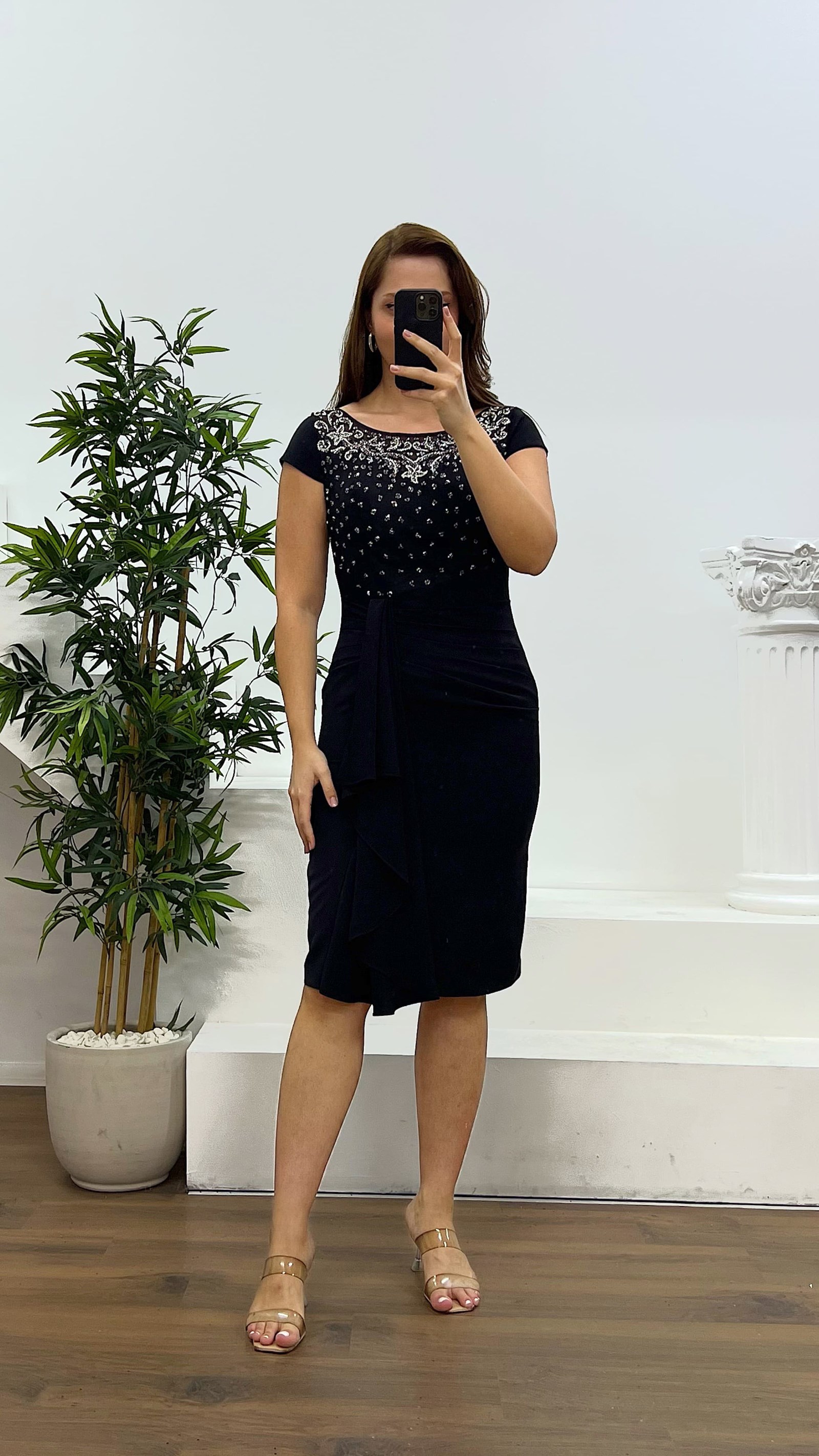 Abito da sera midi con volant Il prodotto è progettato come un abito da sera ricamato, adatto alle taglie 44-48, con coppe al seno, foderato, chiusura con zip posteriore e volant. Lunghezza del prodotto: 100 cm Tipo di tessuto: raso, 100% poliestere