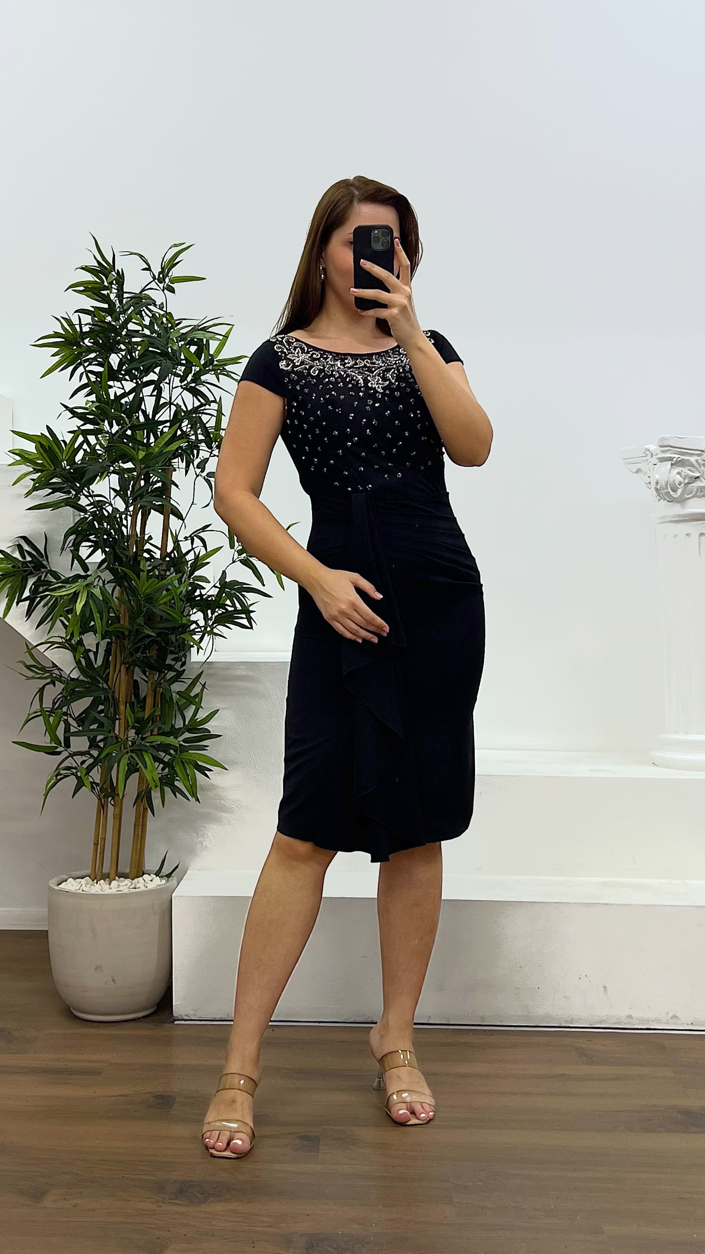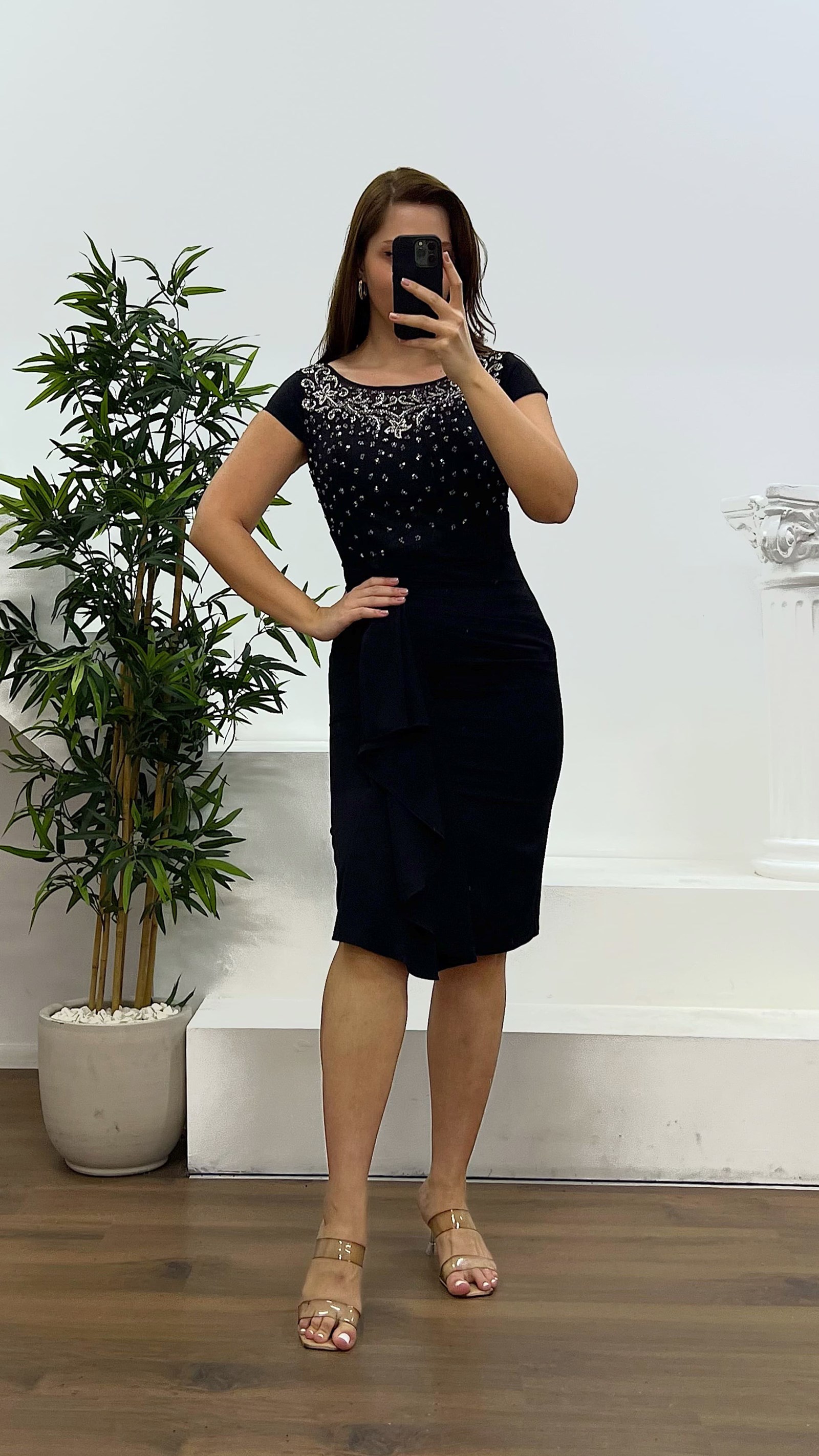 • Siyah Volanlı Midi Büyük Beden Abiye Elbise
