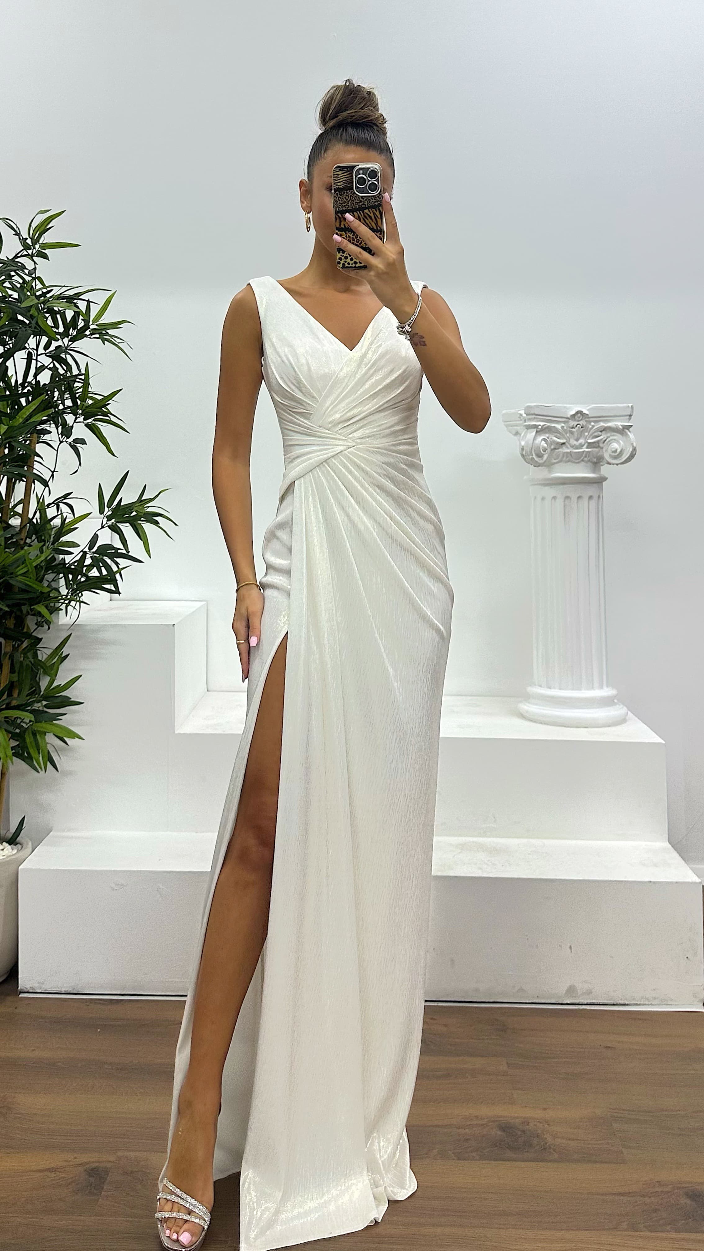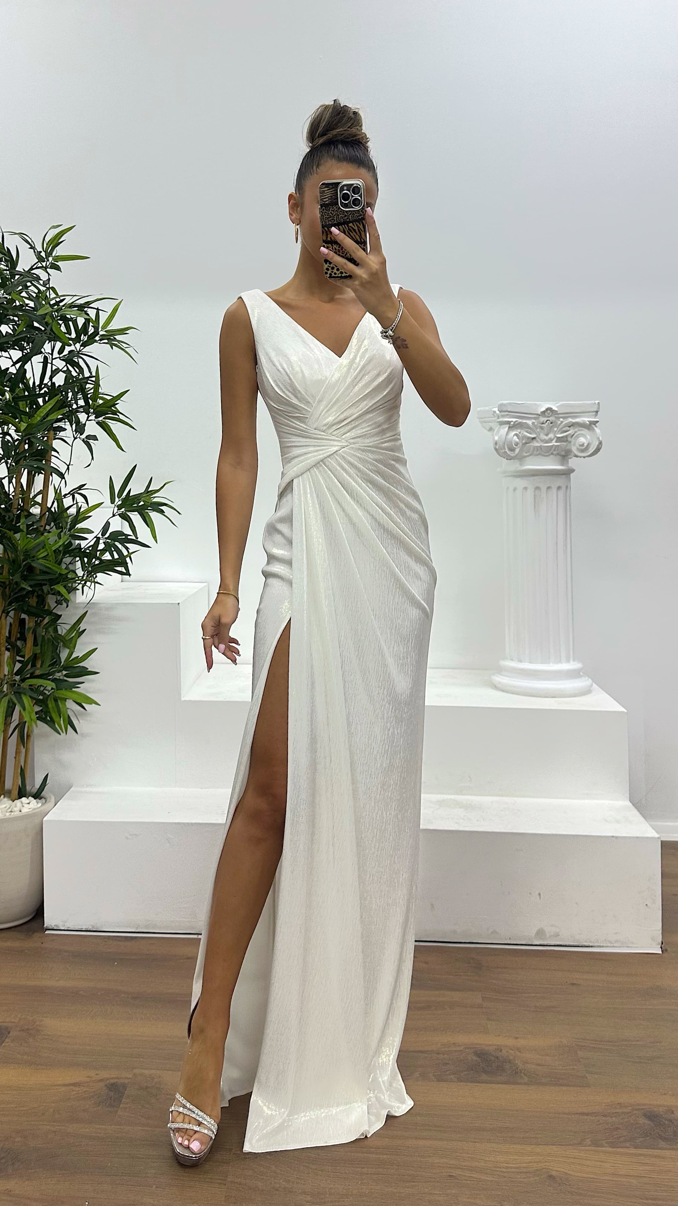 • Kemik  Gold Askılı Drapeli Abiye Elbise