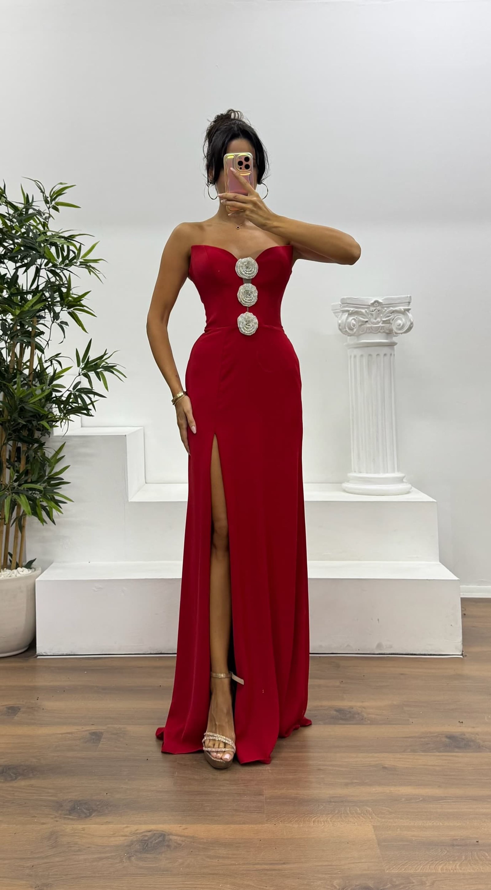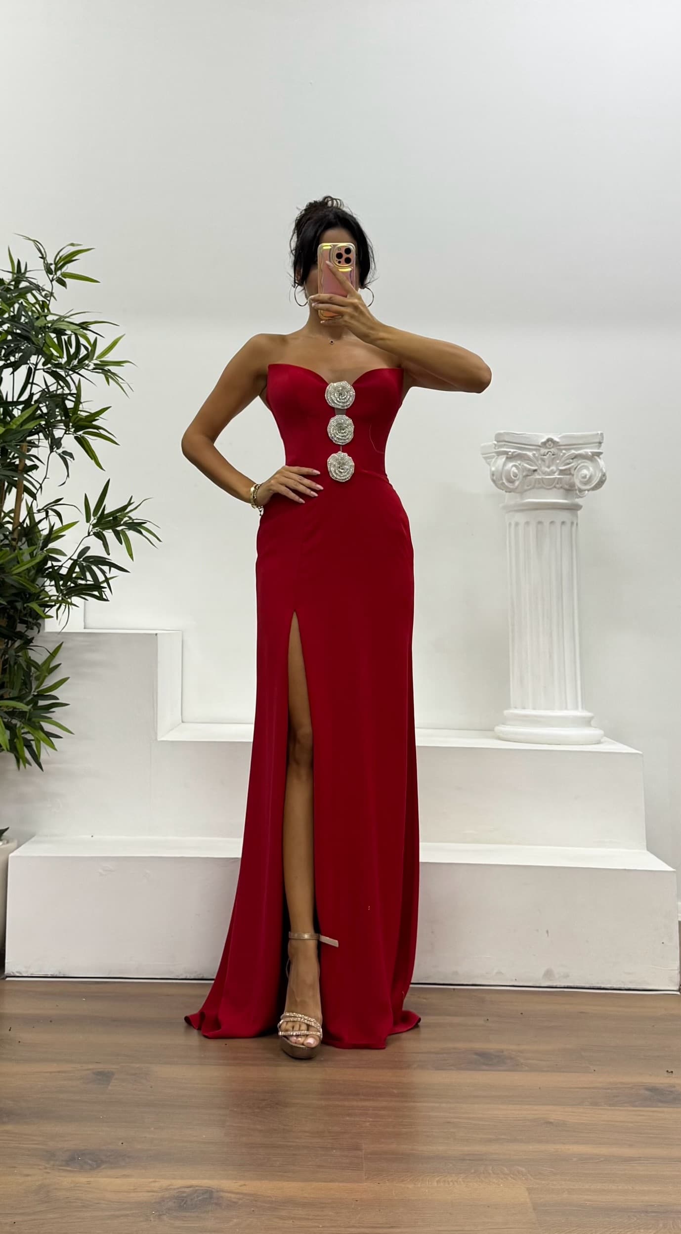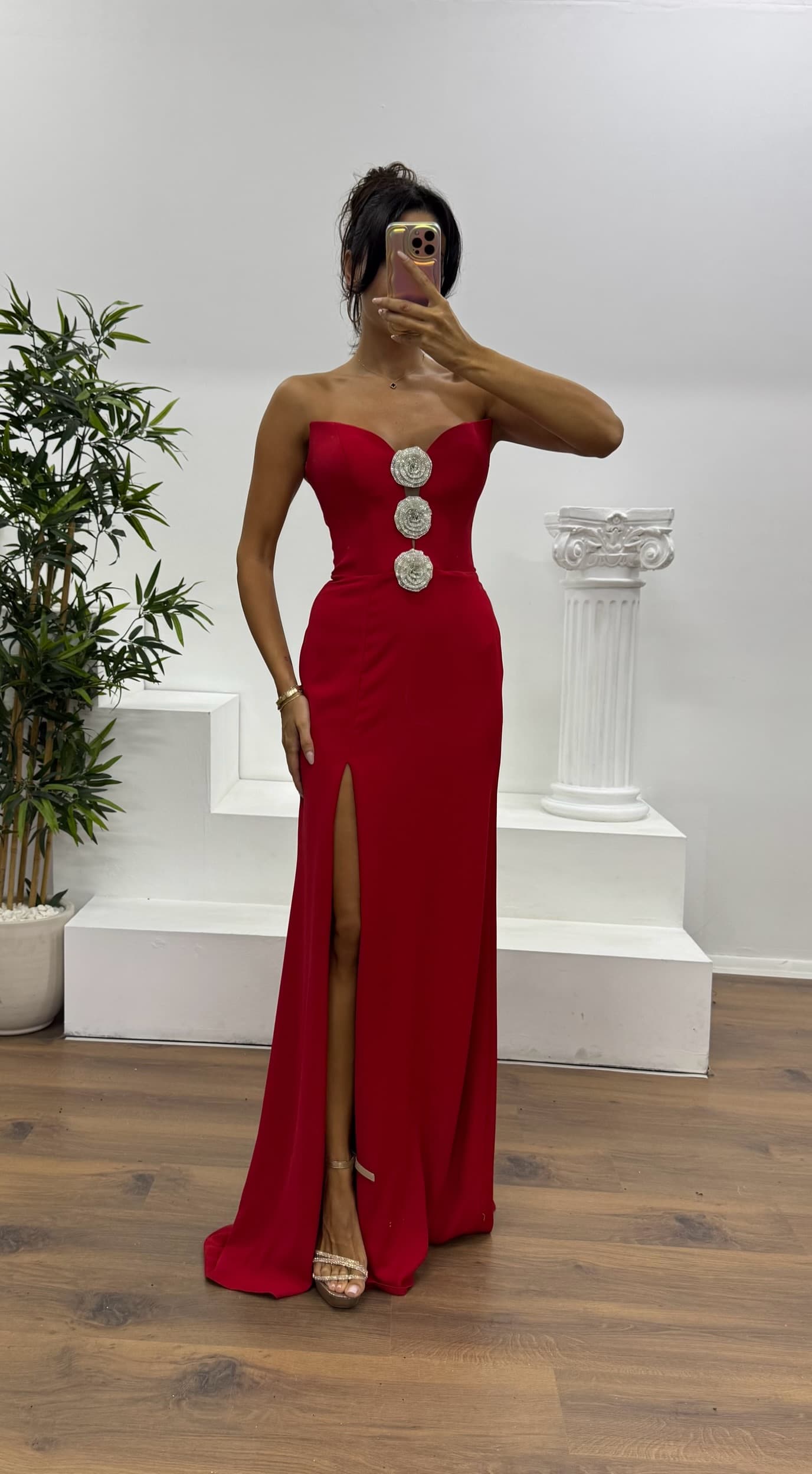 Abito da sera con dettagli floreali Il prodotto è progettato come abito da sera con dettagli floreali, adatto alle taglie dalla 36 alla 44, con coppe al seno, foderato, chiusura con cerniera posteriore e spacco. Lunghezza del prodotto: Può variare tra 170 e 175 cm. Tipo di tessuto: e 100% poliestere.