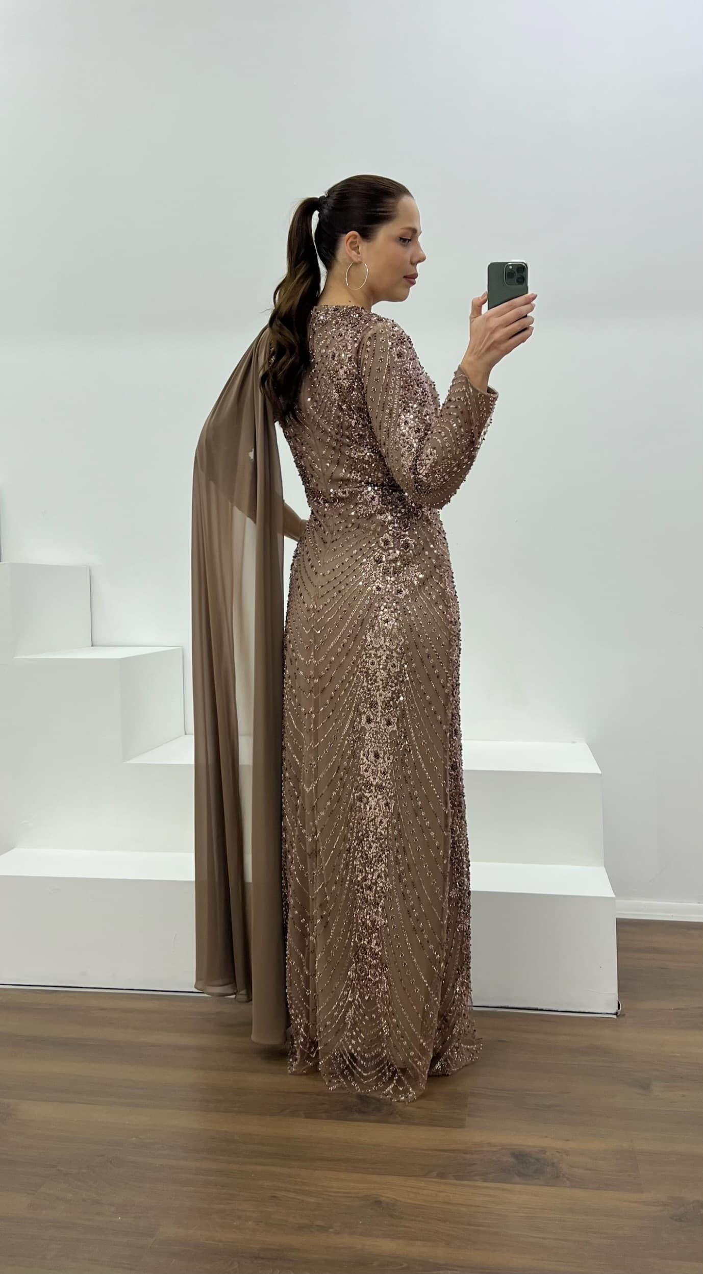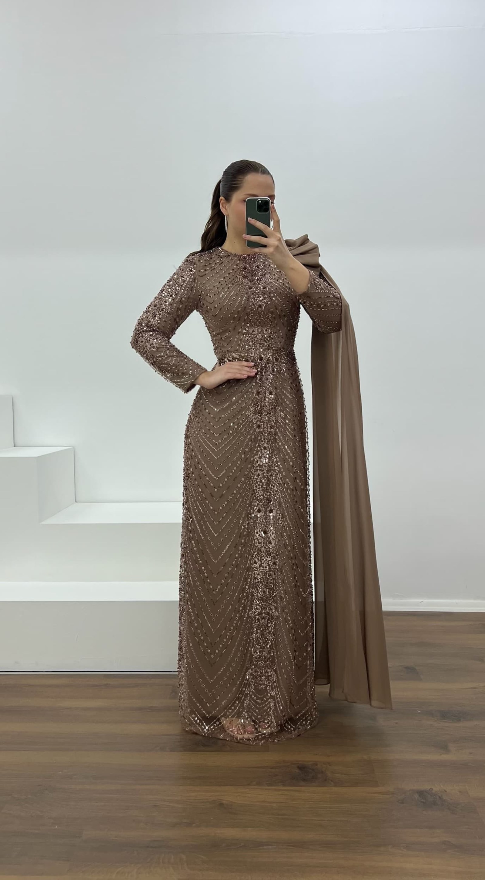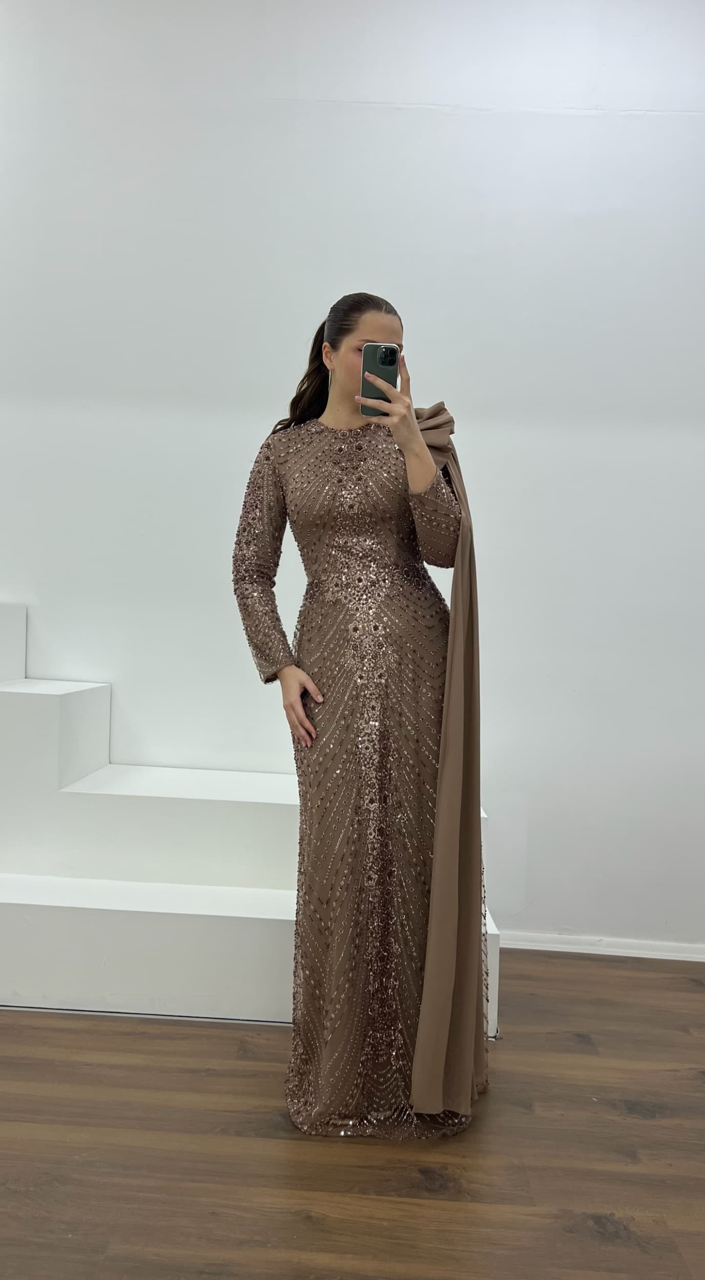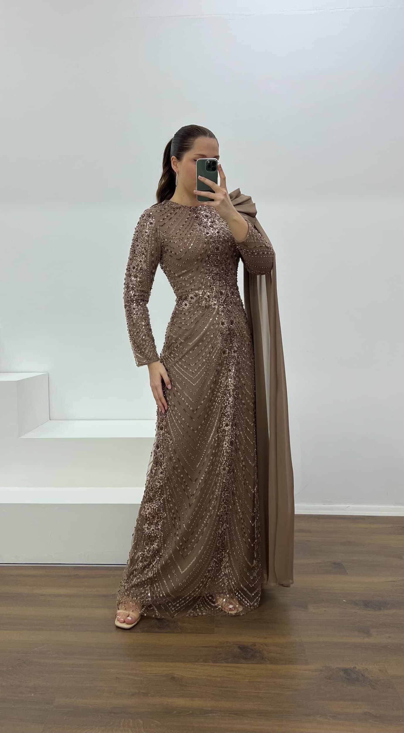 • Vizon İşlemeli Büyük Beden Tesettür Abiye Elbise